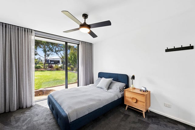 Exceptional features include a gas log fire with a striking brick surround along with double glazed windows creates a cosy peaceful ambience, celestial windows for an abundance of natural light, polished concrete floors that add a sleek, modern touch and elegant drapery that enhances warmth and sophistication. Split system heating and cooling and ceiling fans for year-round comfort are appointed to both living zones. The property also features two hot water systems, and a BBQ gas connection.
