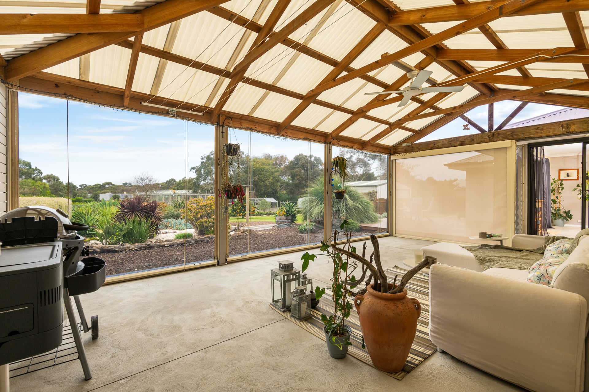 - Solar Panels with 5-kilowatt capacity - Alfresco with clear blinds and power ready for spa. - Greenhouse with vegetable gardens