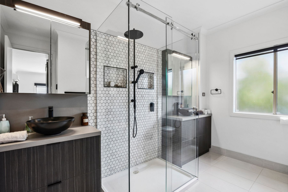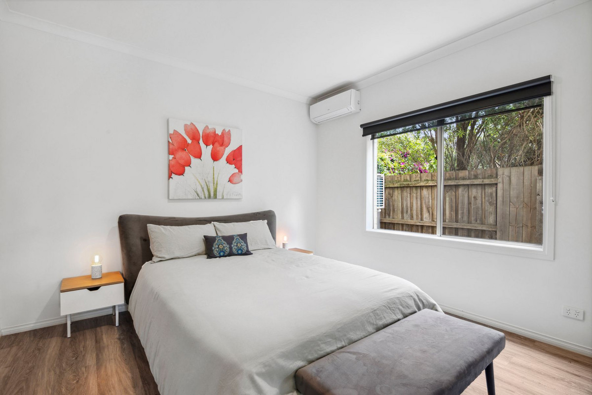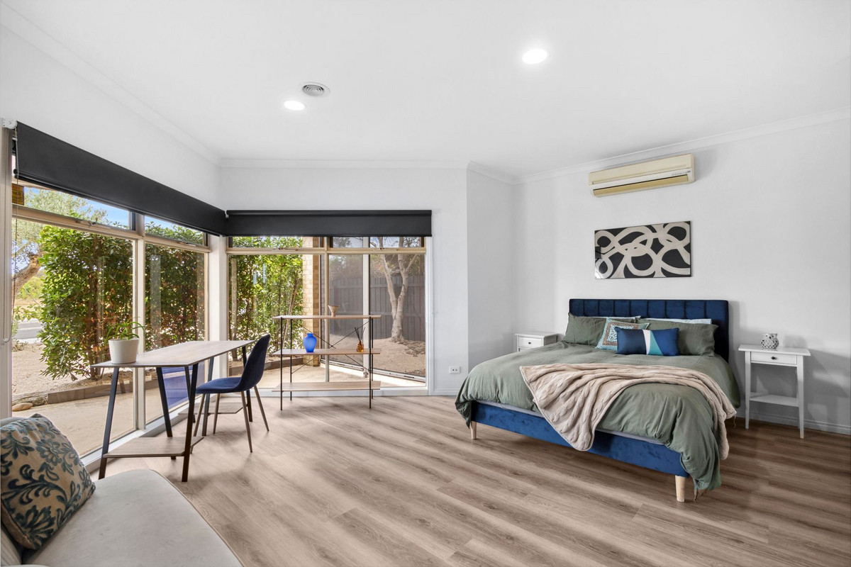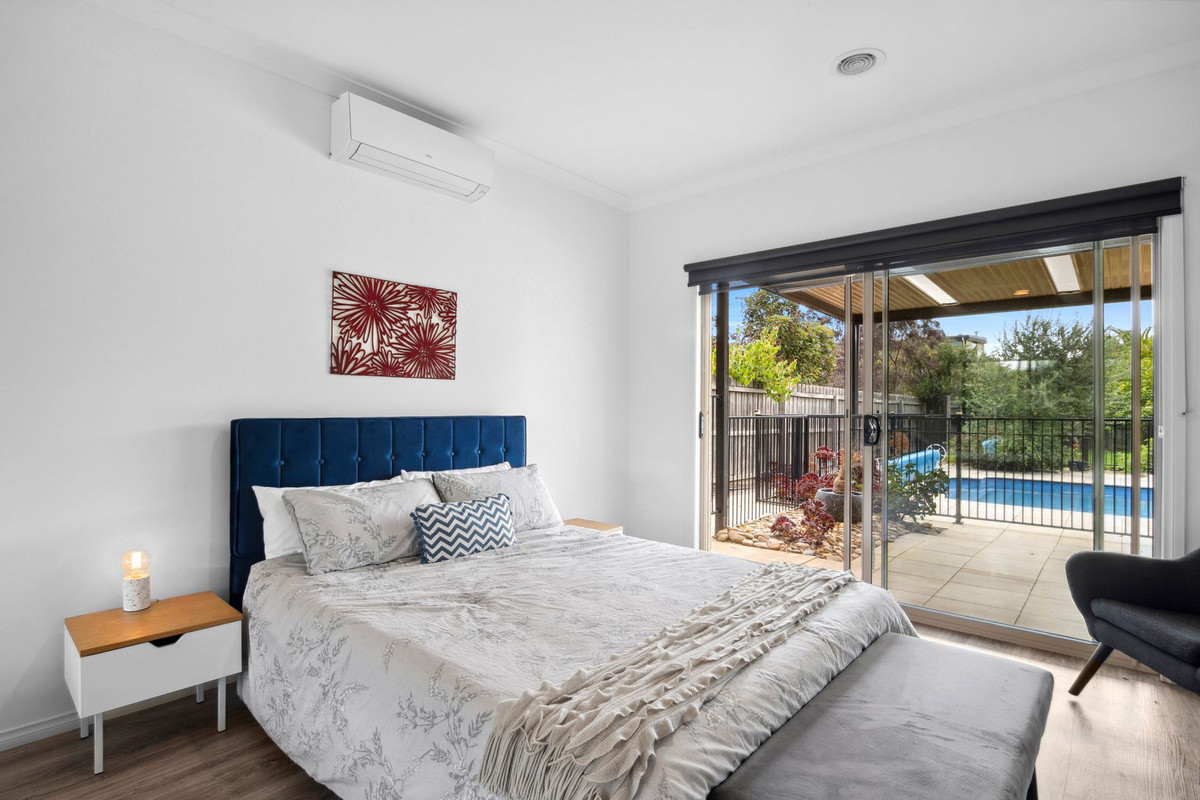 Venture downstairs into the grand entrance hall leading to a well-appointed bedroom with a built-in robe and split system. Adding versatility, the lower level boasts a separate retreat that comprises an open-plan kitchen, dining, and living room with an outlook over the inviting inground swimming pool. Two further bedrooms with built-in robes, one having direct access to the pool area.