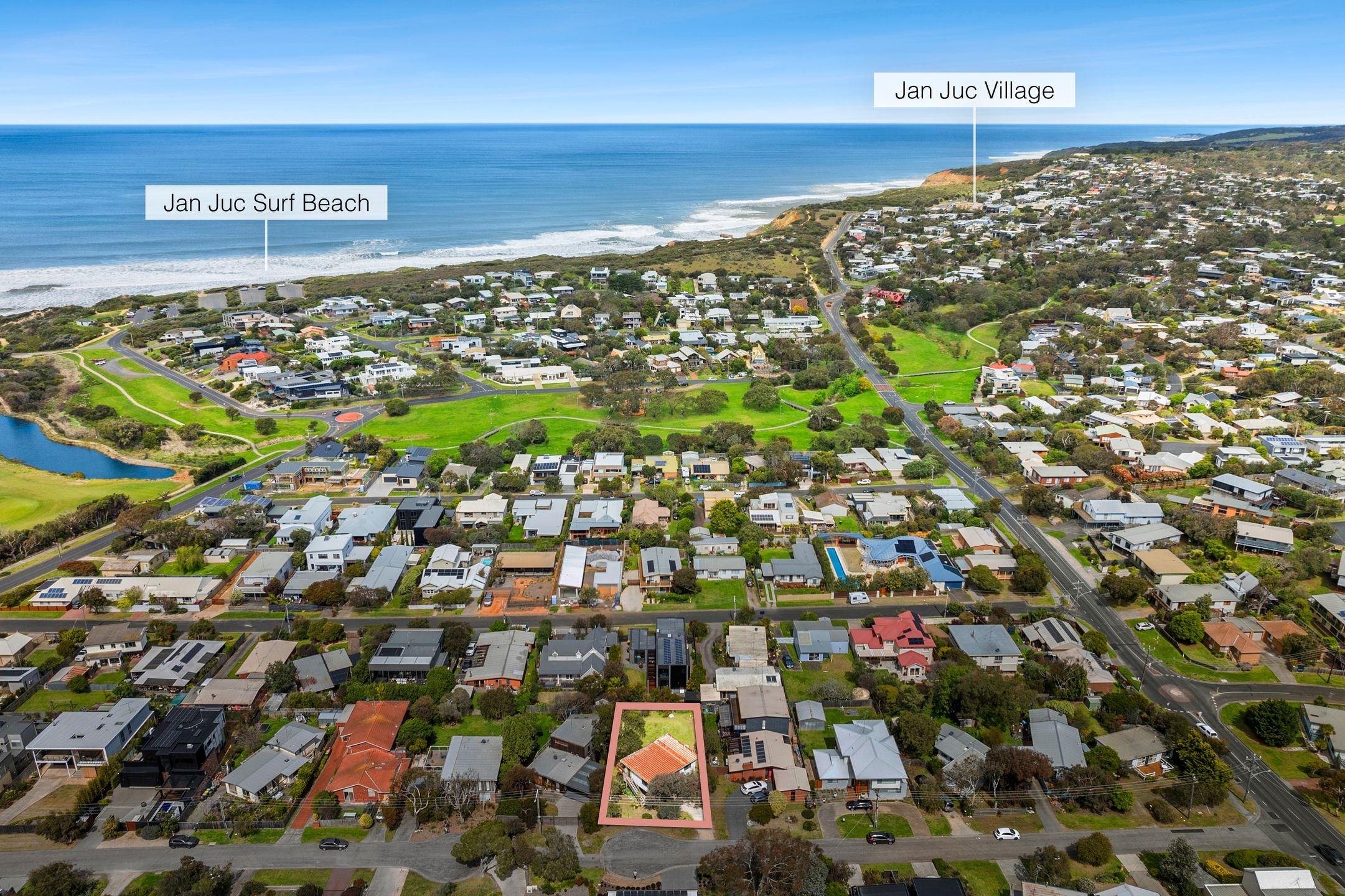 • The elevated 2-bedroom home, offering panoramic views of picturesque Jan Juc from a large deck that’s perfect for soaking up those ocean vistas.