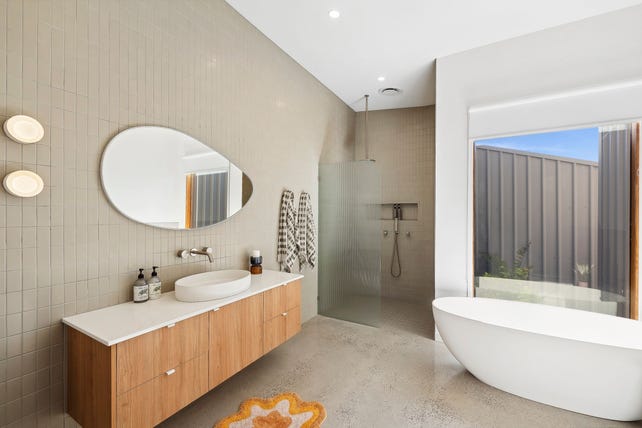 • Premium features at every turn, like heated polished concrete floors, plush wool carpet, heated towel rails, striking skylights, a 6.4kW solar system & 7.2kW battery.