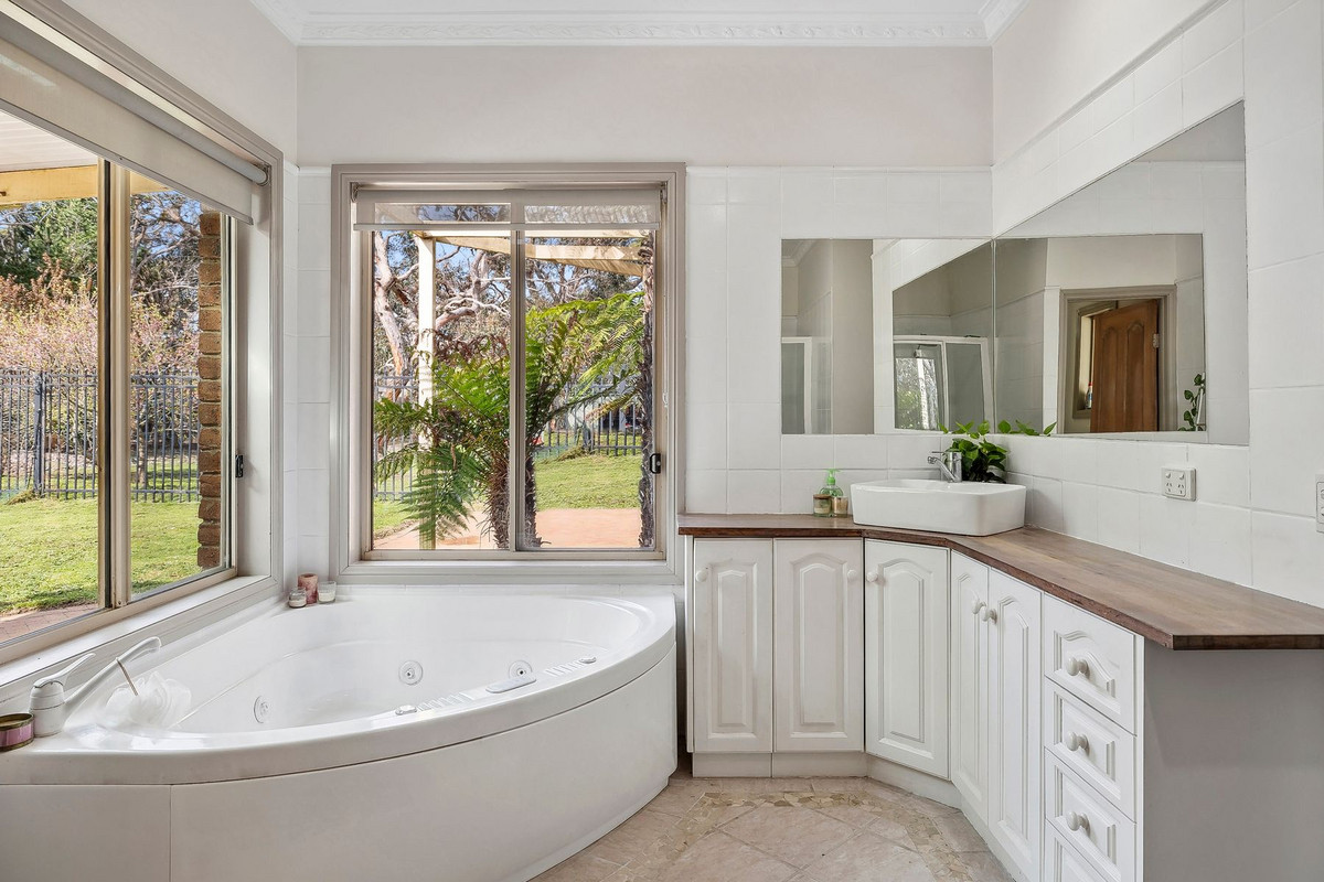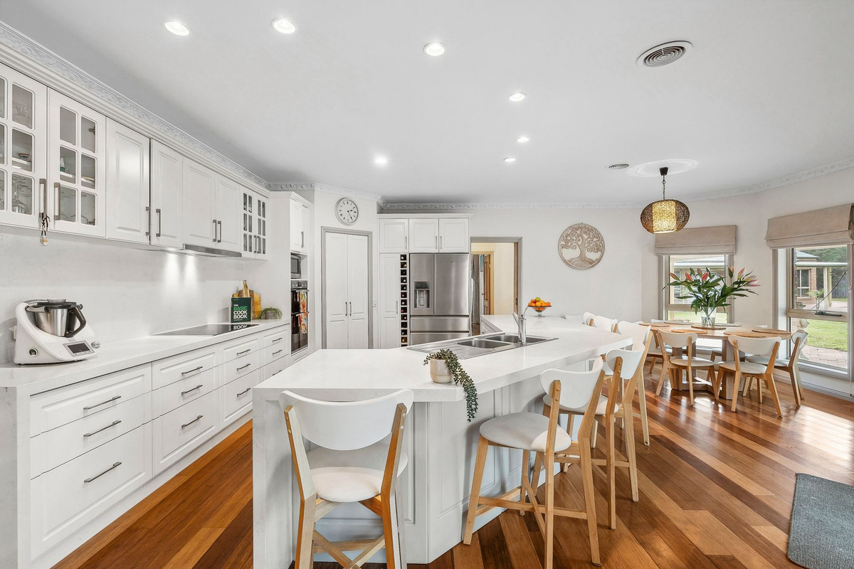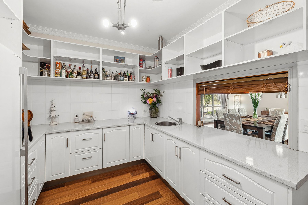 Inside, the kitchen is a chef's delight with a butler's pantry, stone benchtops, and bamboo flooring throughout the living spaces. Ducted heating, a wood-burning fireplace, and a split-system unit provide year-round comfort, while elevated ceilings enhance the home's spacious feel. The wrap-around veranda is the perfect spot to take in the stunning views of surrounding natural bushland, while the northern orientation ensures an abundance of natural light.