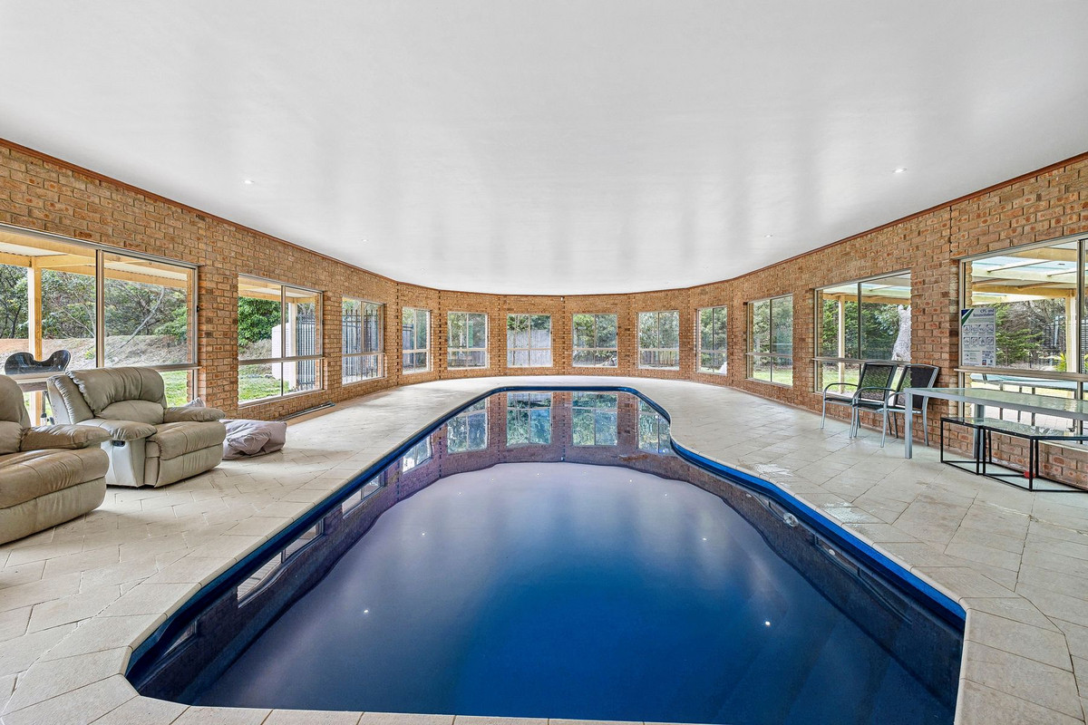 Year-round entertainment is guaranteed with the impressive 14 x 4.5-metre indoor solar pool, featuring automated salt salination for low-maintenance enjoyment. The property also includes a large 15.3m x 7.6m wide shed of 5 bays with a double size garage door opening of 4.9m and a workshop, a woodshed, garden shed, and 3 x 125,000-litre` water storage tanks, ensuring self-sufficiency.