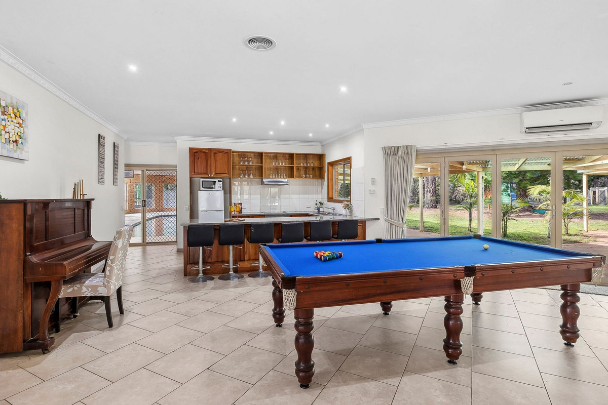 The residence features 6 spacious bedrooms, 3 bathrooms, and 2 living areas, including a billiard room/rumpus. A dedicated home office adds convenience for remote work and a gym room for those who like to keep fit. Inclusive of a connected annex with its own private entrance which offers 3 bedrooms, a bathroom, a well-equipped kitchen, dining area, and a separate living space – perfect for use as a B&B or guest accommodation, generating potential income.