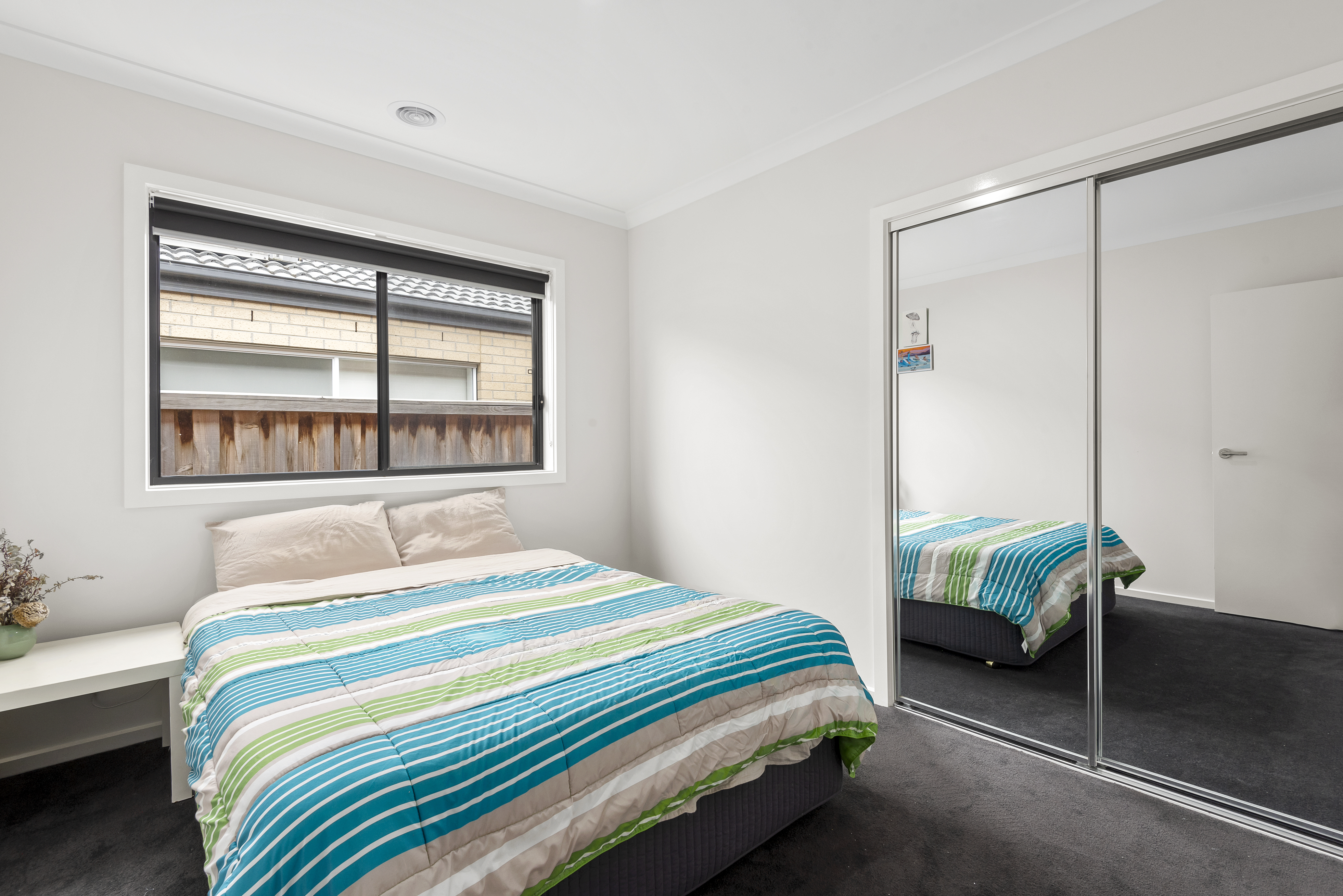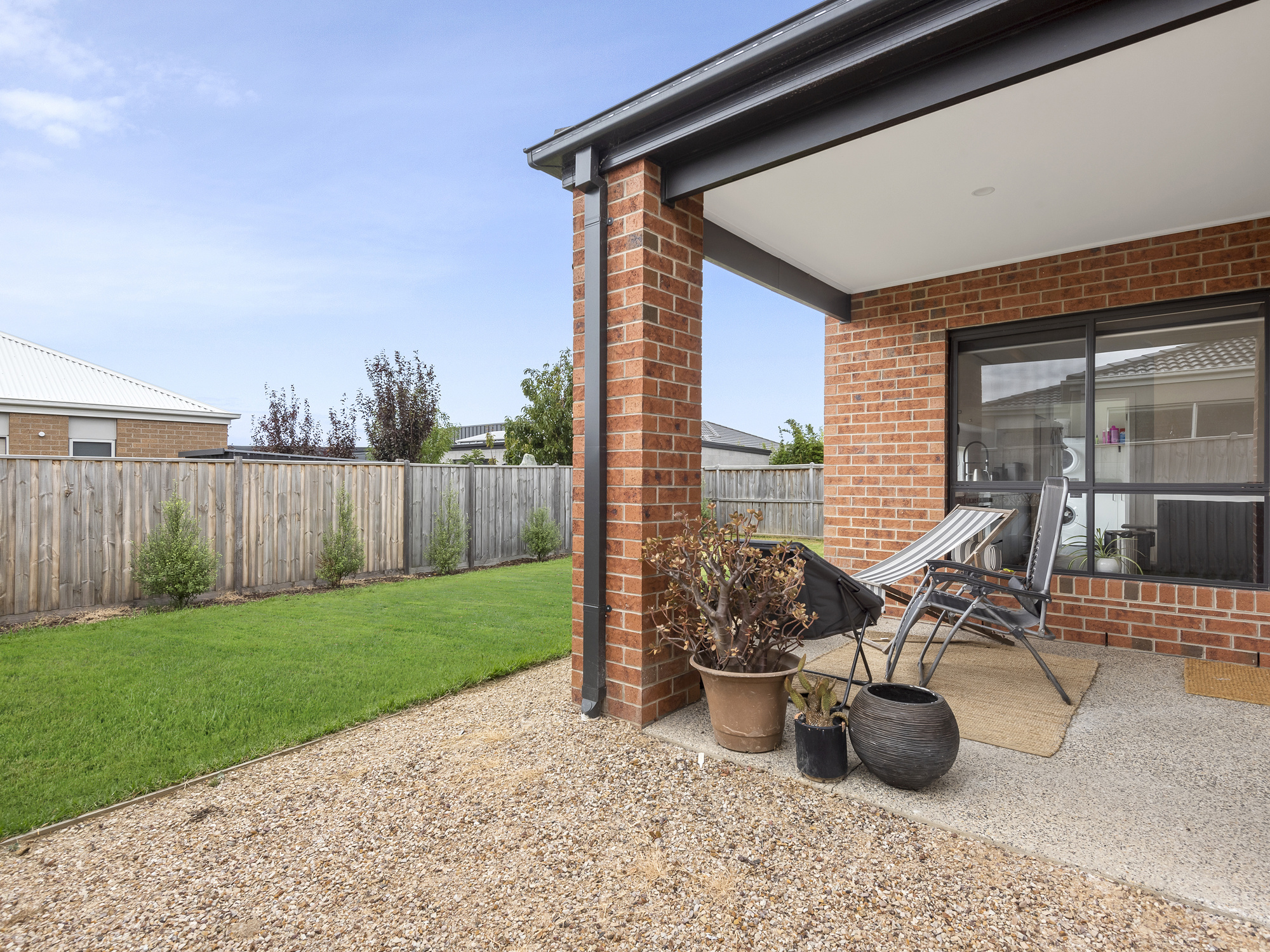 Outside, the grassed backyard enjoys a northerly aspect and features a concrete BBQ area and rear access to the double garage.