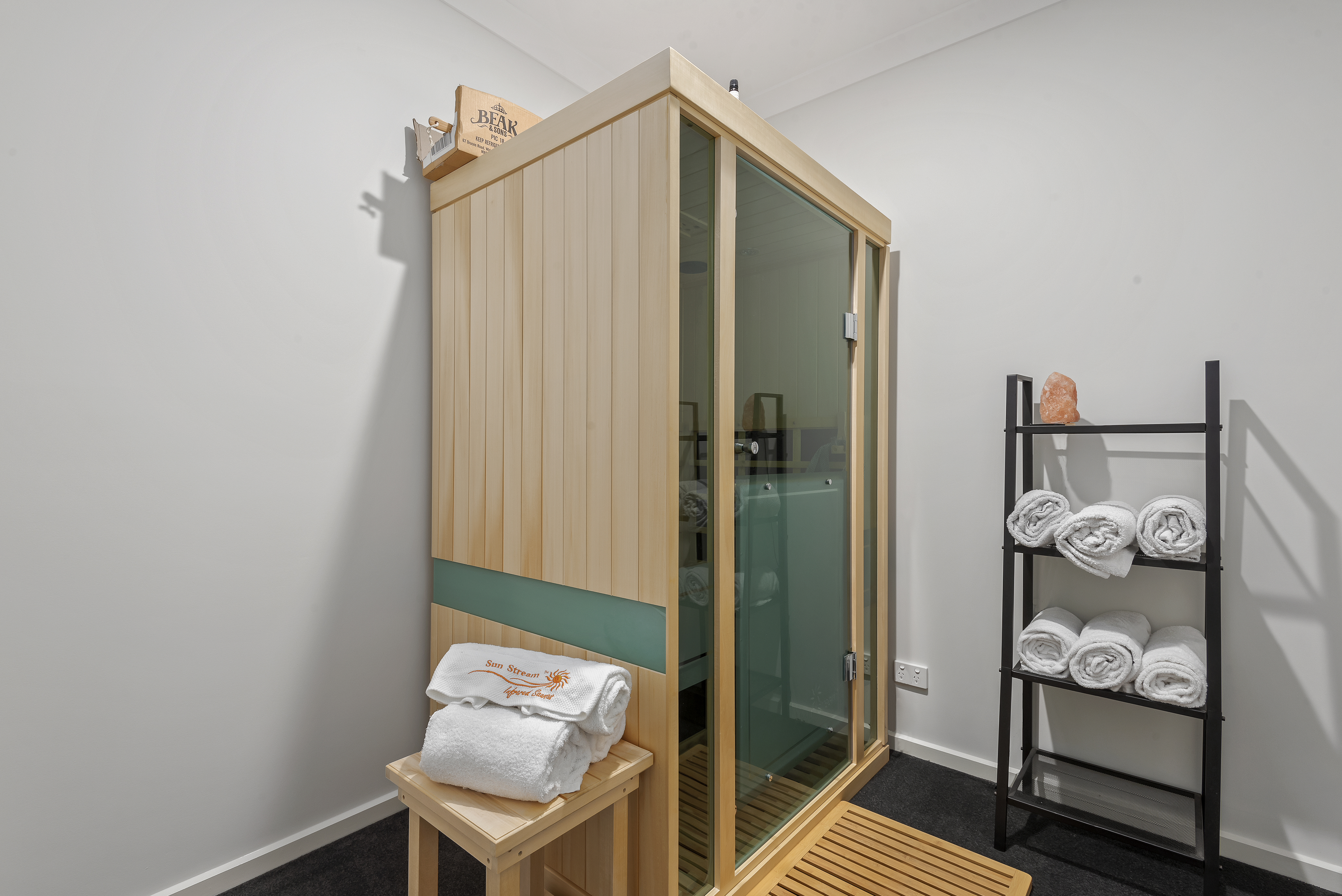 Additional features include ducted heating, split system cooling, pristine timber veneer flooring, immaculate carpet, and blockout blinds throughout.