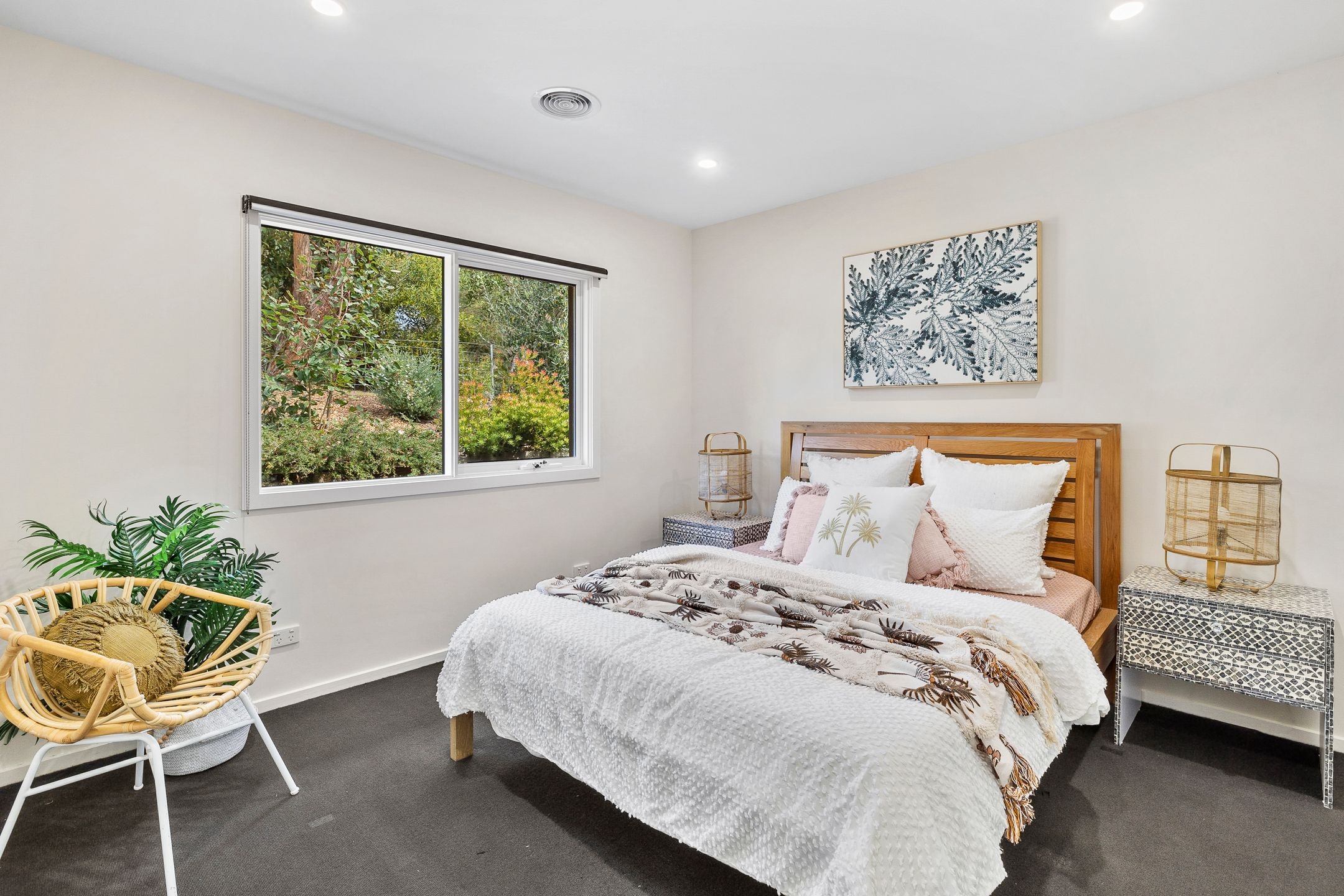 • Other highlights include stone benchtops throughout, ducted heating & cooling, peaceful garden outlooks from every room, 5kW solar panels (bye-bye power bills!), a double garage with house access, plus a handy storage room…set on a corner block with no neighbours.