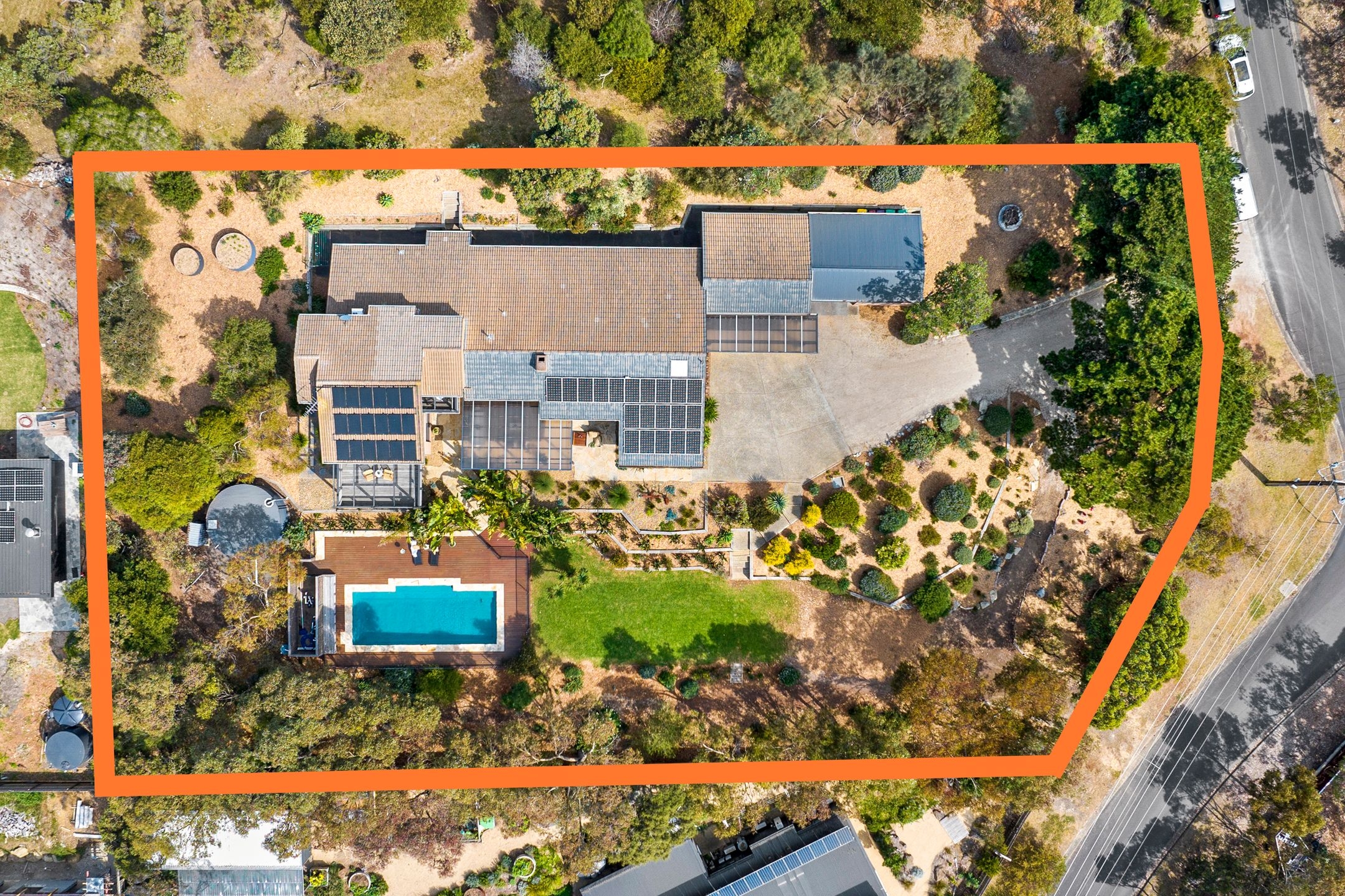 • The low-maintenance garden oasis enjoys a sun-drenched northerly aspect & wind protection, offering established native plants, a 40,000L water tank, veggie gardens & more.