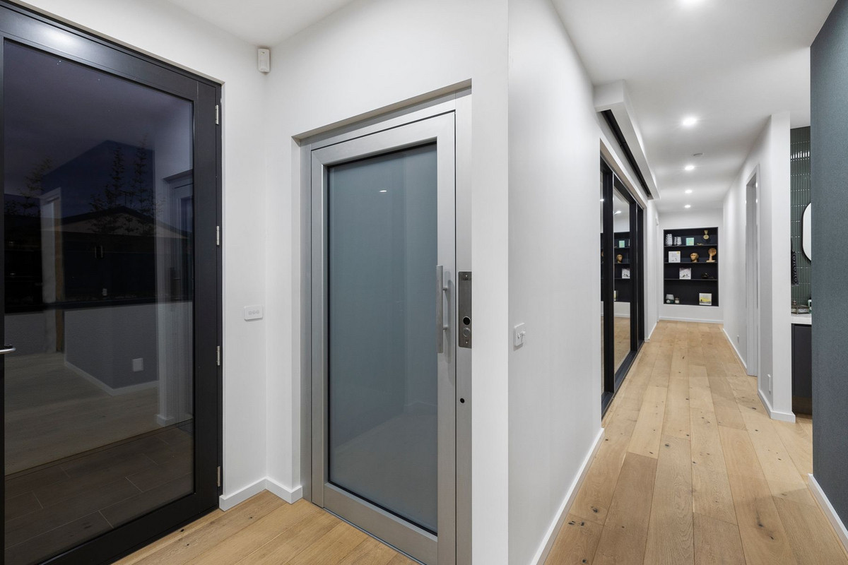 Ascend to the upper level via either the timber staircase or the internal lift, where you'll discover the elegant kitchen, dining, and living areas. This impressive space leads to a deck that wraps around, connecting to the luxurious master suite with a walk-in dressing room and a lavish en-suite with dual vanity. The upper level also includes a guest bedroom with an en-suite, a dedicated study, and a powder room. Additionally, a second master bedroom with an en-suite and three more bedrooms, all with built-in robes and one with an en-suite, are situated on the entry-level. A deluxe family bathroom and a separate powder room complete the lower-level accommodation.