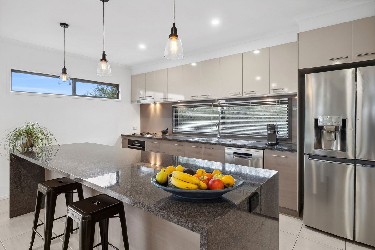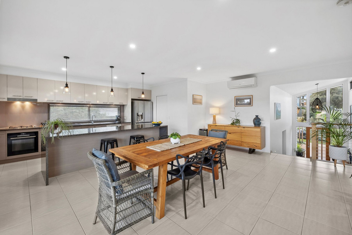 The property exudes an enticing street appeal and spans three levels, step through the front door into the welcoming foyer highlighting a vaulted ceiling and abundance of natural light, the master suite to the right of entry is sun filled with a large walk-in robe and ensuite. Ascending to the upper level reveals a beautiful open plan kitchen, dining, and living area that opens onto a large deck, providing an ideal space for entertaining whilst taking in the peaceful outlook over Deep Creek Reserve.