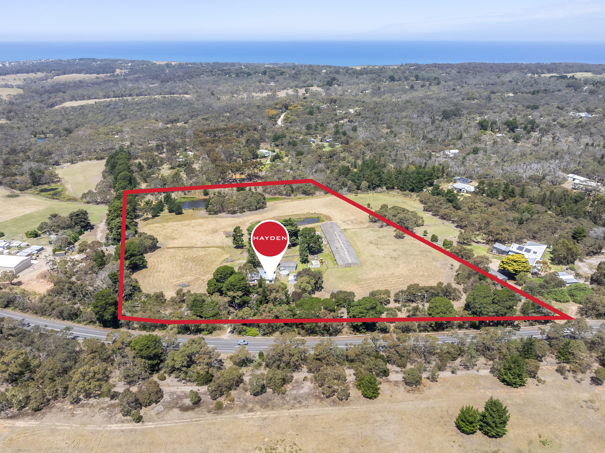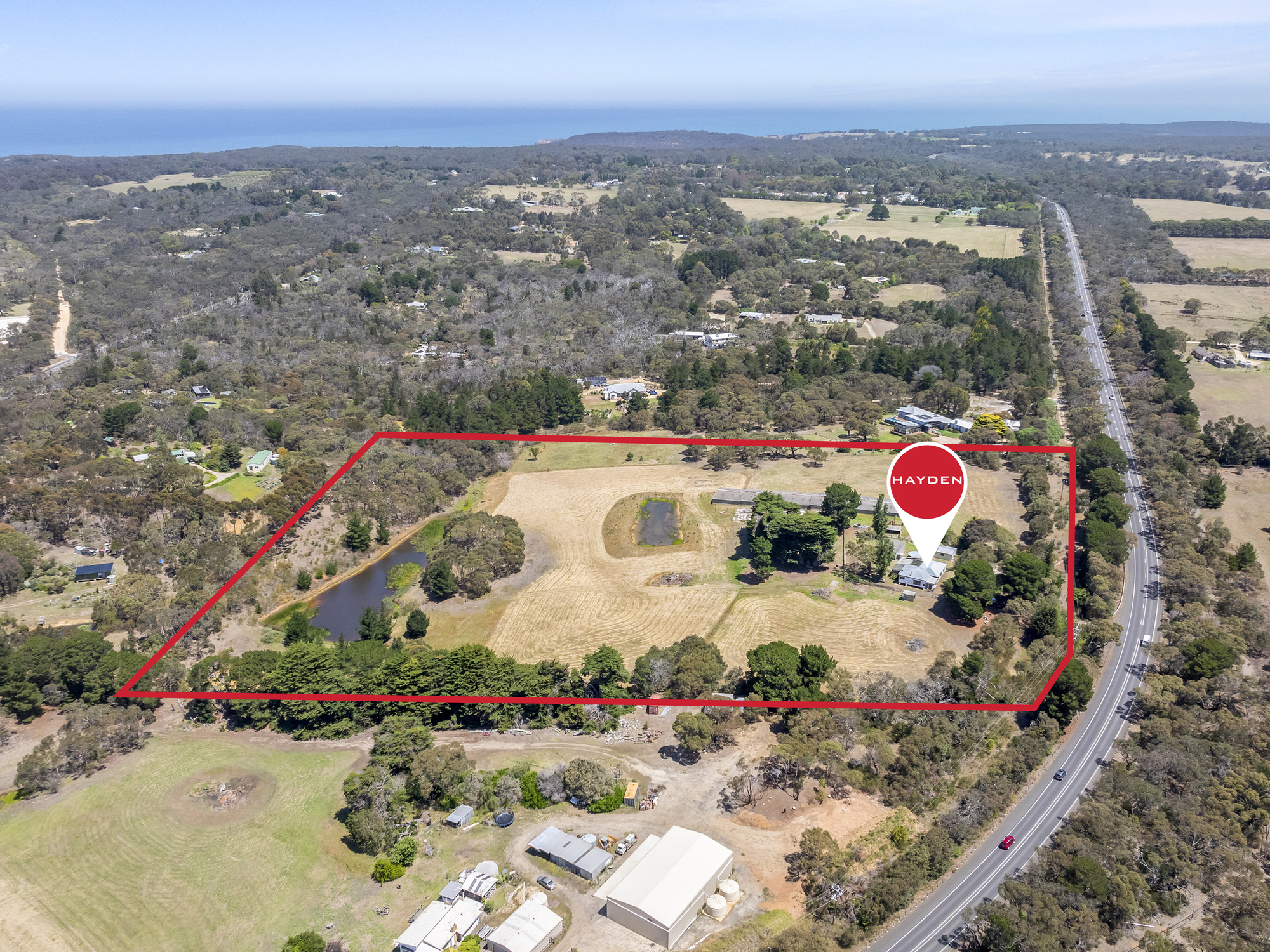 The fully fenced farmland includes three dams, one brimming with fish, a huge livestock shed, two Great Ocean Road access points, and has all the ingredients for an agricultural enterprise, or hobby farm if that is your calling! In addition to the livestock shed, there is a standalone double garage with roller door and 3-bay workshop/garden shed providing ample storage space for all of your vehicles and gear.