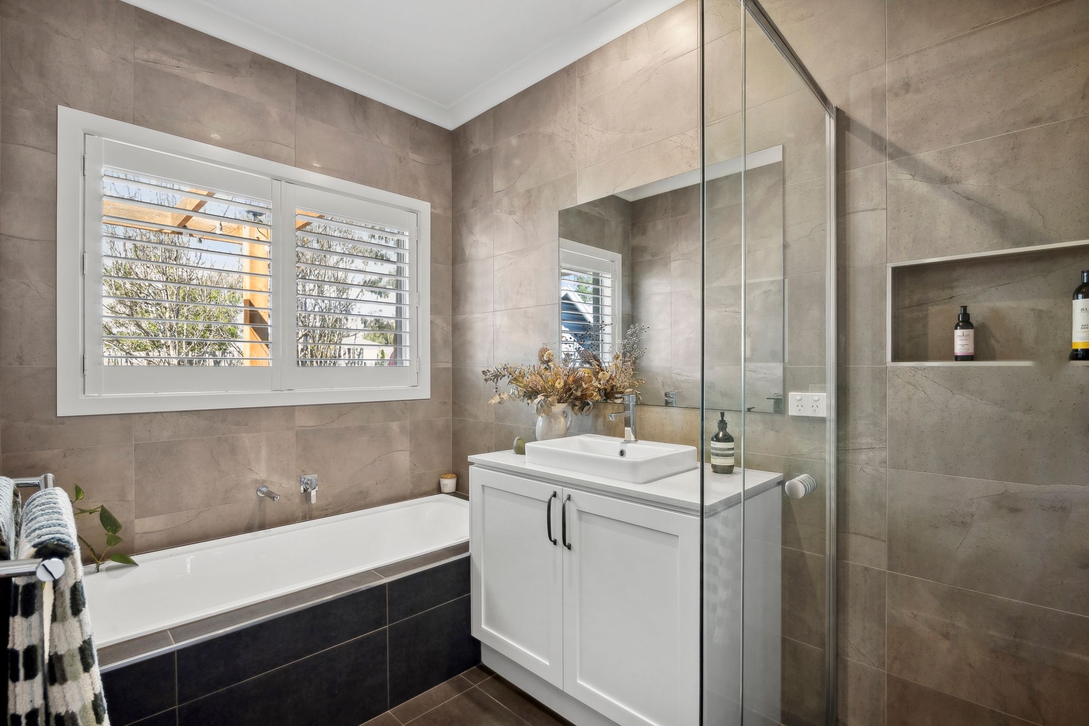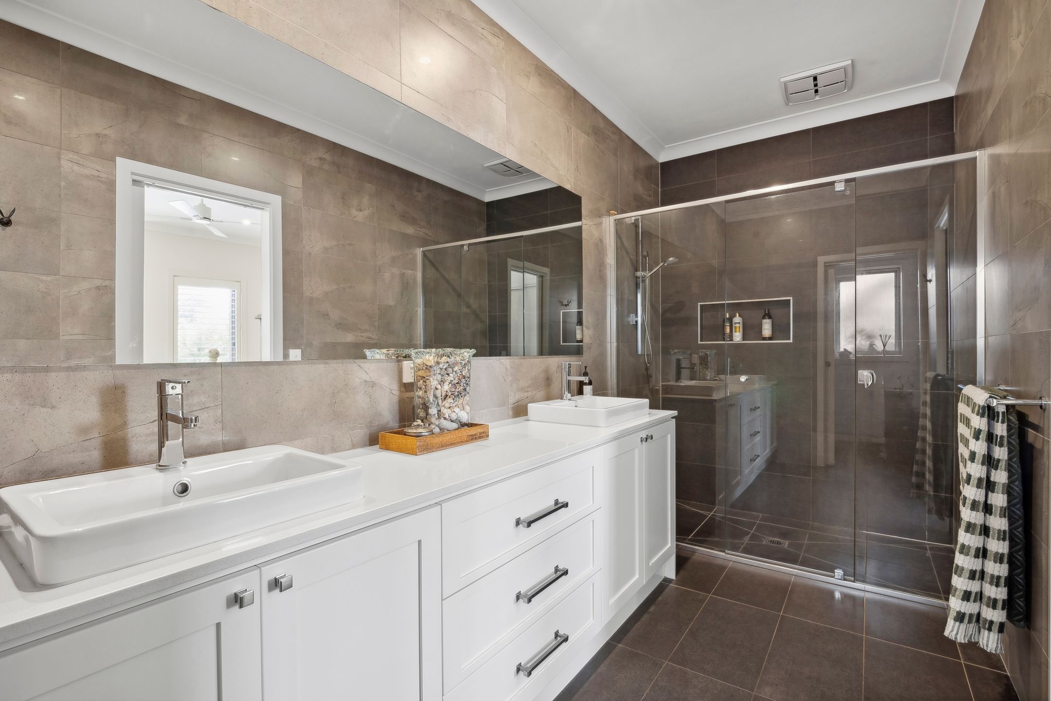 • Luxe stone benchtops, floor-to-ceiling bathroom tiles, home security, split system heating/cooling & an oversized garage with ample workshop & storage space. • Cost-saving sustainability features include a 10-Star Energy Rating, solar panel system, Tesla battery, double-glazed windows & abundant water storage.