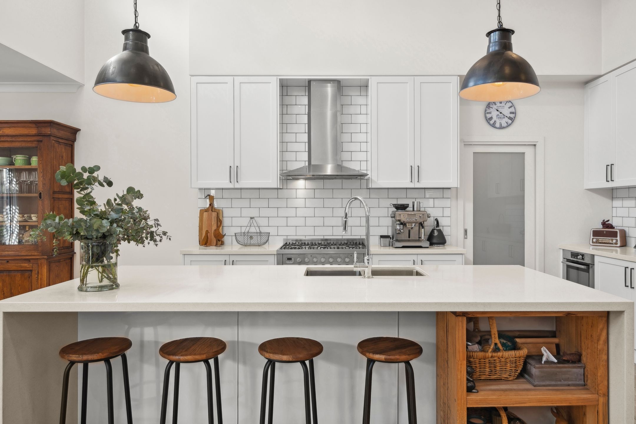 • The showstopping chef’s kitchen – truly the heart of the home – boasting a grand island bench, premium appliances, stylish stone countertops & a walk-in pantry.