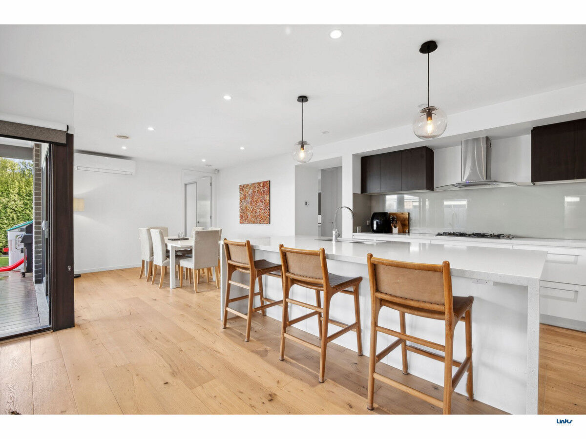 What YOU'LL LOVE: - Two master bedrooms, three bathrooms, two sun filled living spaces - Two way kitchen with Smeg 900mm gas stove and oven, pendant lighting, timber cabinetry, huge stone island bench and butler's pantry with the convenience of a frosted glass timber door for a discrete setup - The spacious open plan main kitchen dining and living area plus a second loungeroom separate from the main living - King sized master bedroom suite at the front of the house, featuring a luxurious alcove with ensuite and a large dressing room plus sheer curtains to really set a lux mood - Three bedrooms in the back wing of the home including a SECOND master with its own ensuite and built in robes - Timber stacker doors that open the main living area up to the undercover alfresco deck and sunny yard - Loads of storage options including a walk-in room in the hallway, floating cabinetry in the 2nd living area, a lock-up garden shed and double garage - Other features include the alarm system, central heating throughout, additional split-system units in the master bedroom and main living, ducted vacuum system, glass splash back, plumbing to fridge, tiled to the ceiling in both bathrooms, built in towel rails, exposed aggregate driveway and paved surrounds,