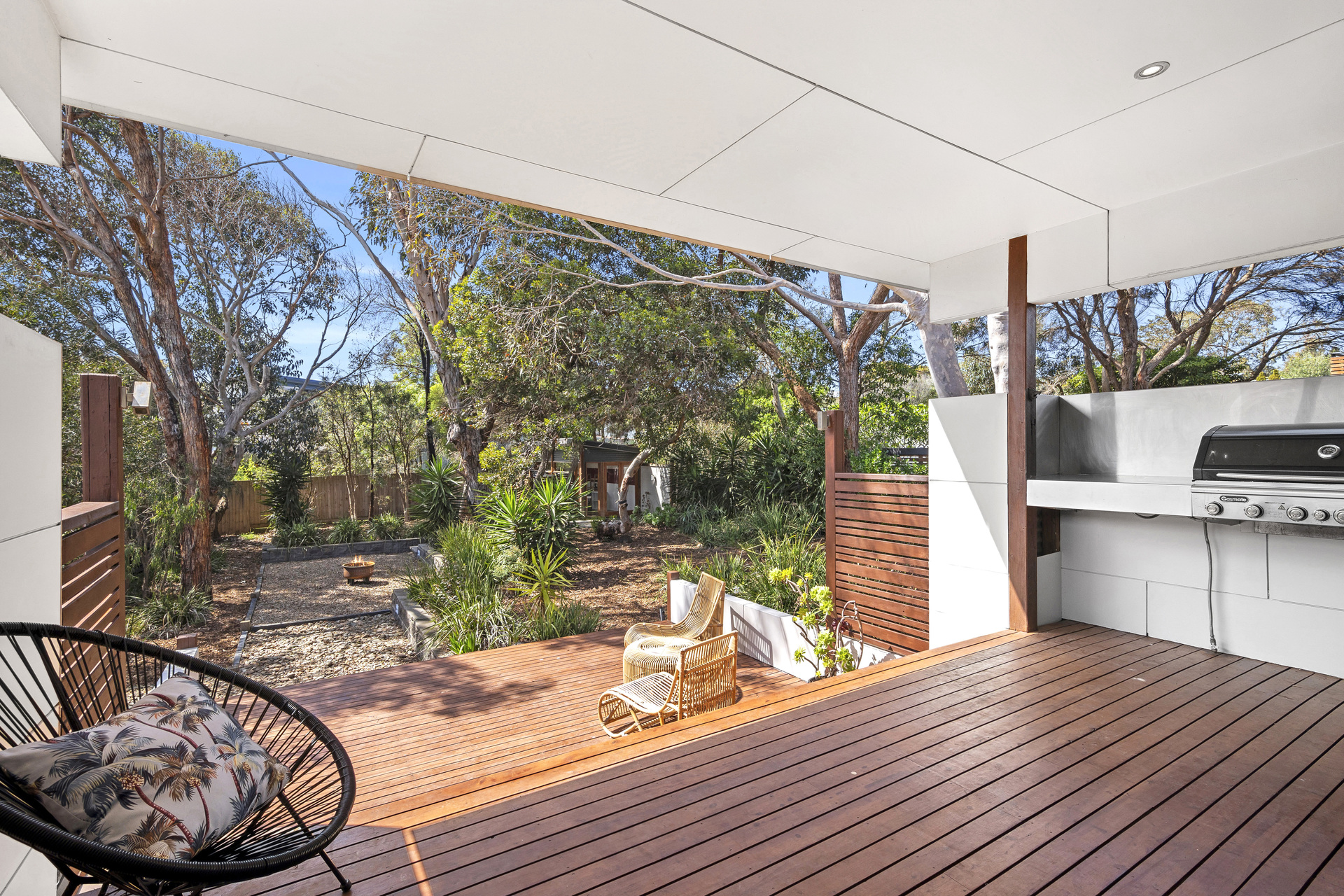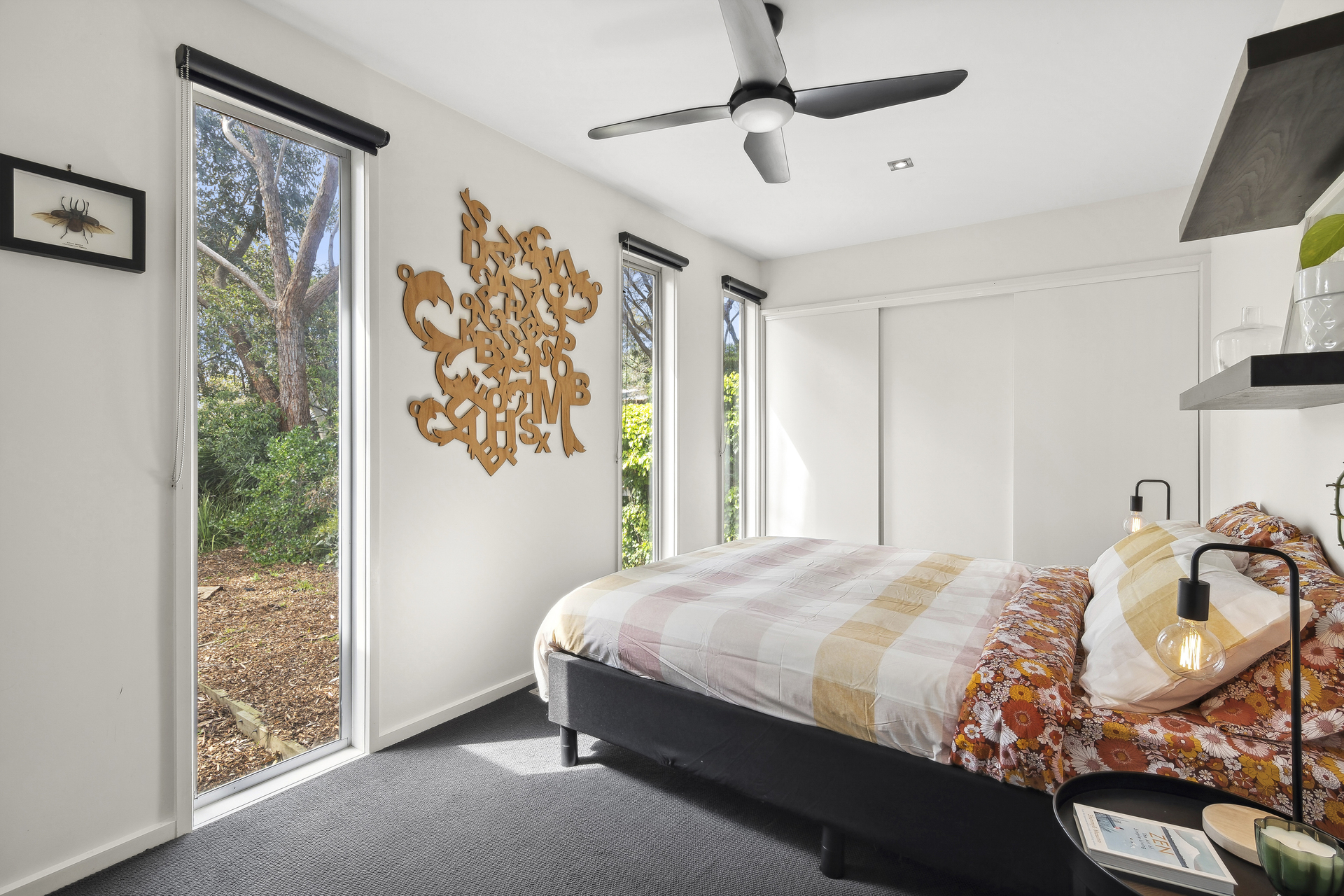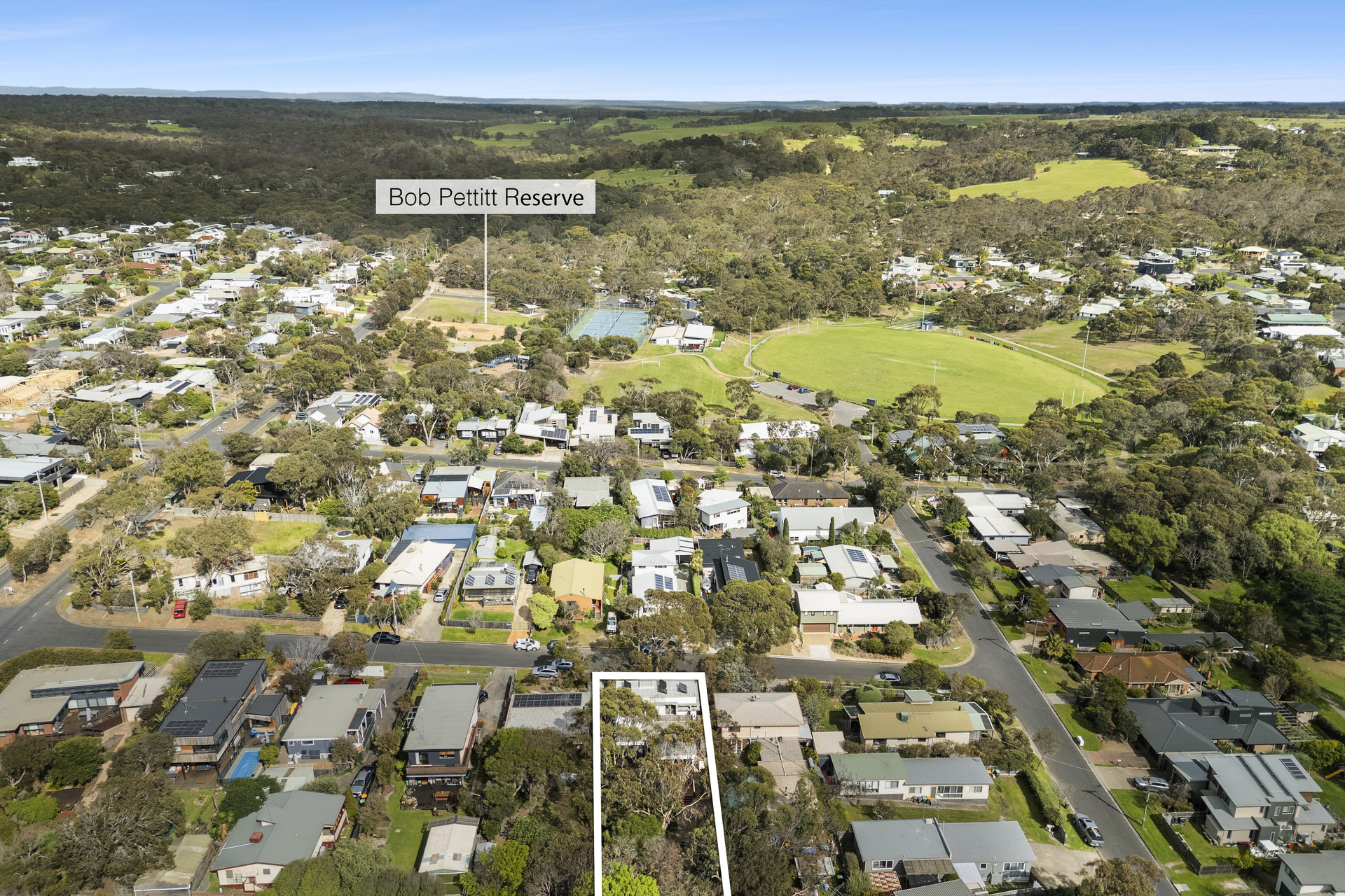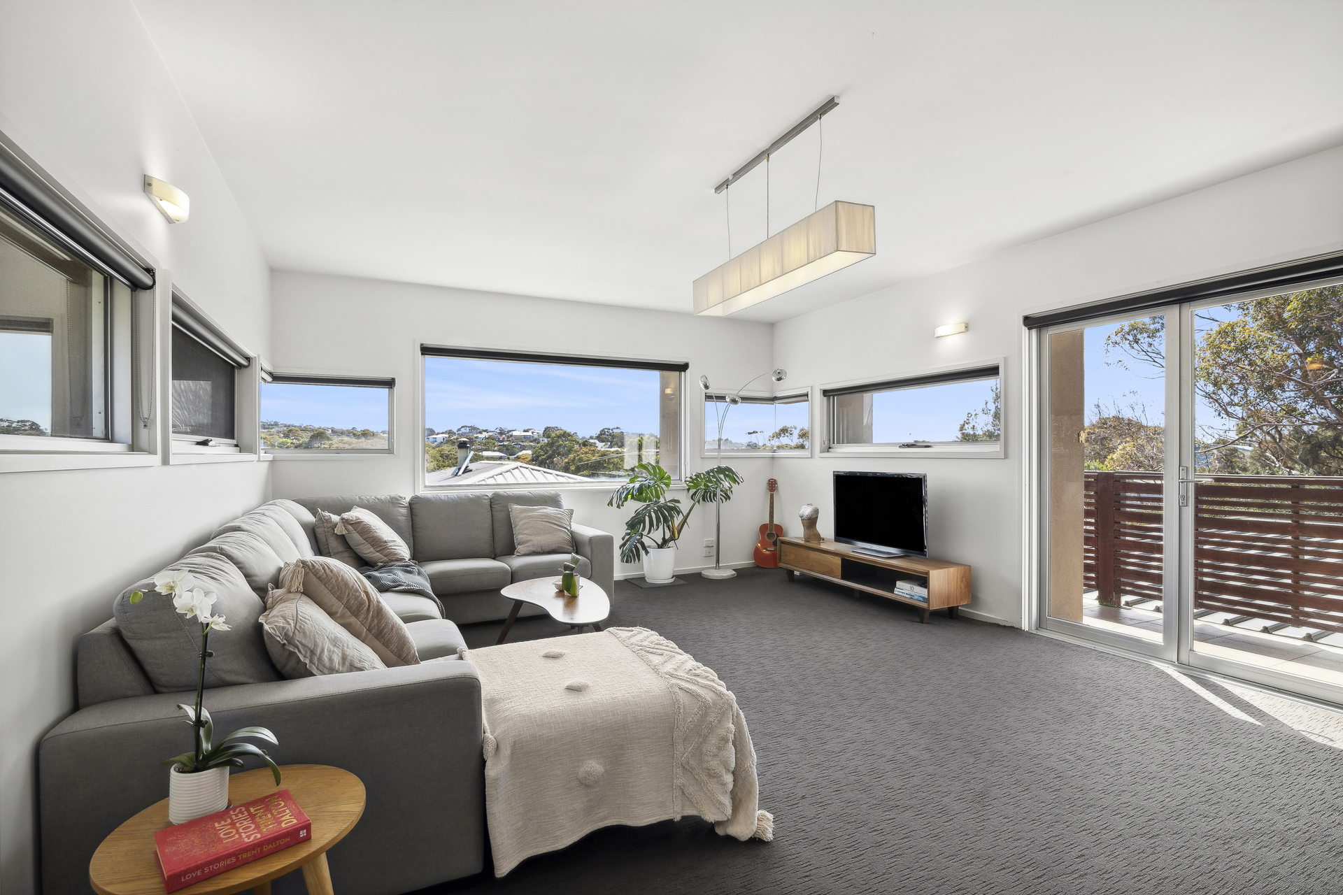 Discover this stunning 3-bedroom, two-storey architectural-designed home, nestled in a highly sought-after pocket. This prime location offers the perfect blend of architectural style and family living, providing easy access to picturesque shores and scenic walking trails. From the moment you step inside, you'll be captivated by the seamless connection between indoor and outdoor spaces, designed to embrace natural light and the tranquillity of the surrounding gardens. High ceilings and an open stairwell to the upper level serve as striking design elements, enhancing the sense of space throughout the home. Upon entry, you are welcomed by a spacious living area that features bi-fold doors opening to the front deck, beautifully blending indoor and outdoor living. This connection flows effortlessly into the well-appointed, light-filled kitchen, where the sun streams through the windows, offering picturesque views of the treed garden. The kitchen also boasts bi-fold doors leading to the outdoor alfresco area, complete with a built-in BBQ and deck-perfect for entertaining family and friends. The flowing floorplan includes two generous bedrooms and a central bathroom on this level, making it ideal for family living. Off the living zone, you'll find a designated study, perfect for working from home or pursuing creative projects. The upper level features a luxurious parents' retreat, complete with a master bedroom, walk-in robes, an ensuite, and a separate living zone. Enjoy views across Jan Juc from the picture windows, with the deck seamlessly flowing from the living space-creating a perfect spot for morning coffee or evening relaxation. The private, bush-style garden offers a peaceful retreat with its natural landscape, featuring a fire pit area that's perfect for cozy gatherings. Additionally, the garden includes a separate home studio or office-ideal for creative pursuits or additional workspace. You'll also appreciate the sustainability features, including water tanks & solar panels, which enhance the home's eco-friendly appeal. Step out onto your choice of front or rear decks, making it easy to entertain or simply enjoy the serenity of your surroundings. Positioned just 450 meters from Jan Juc Beach, local cafes, and restaurants, this home provides an ideal setting for families seeking to embrace a coastal lifestyle.