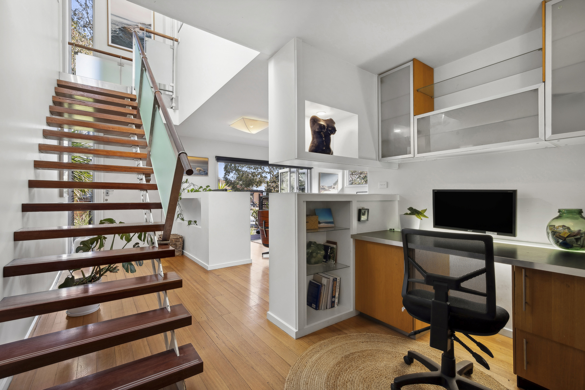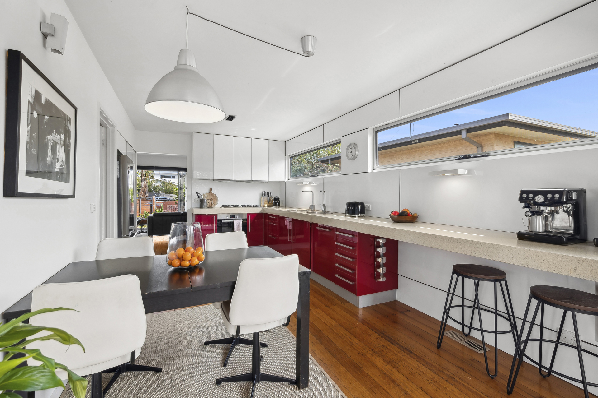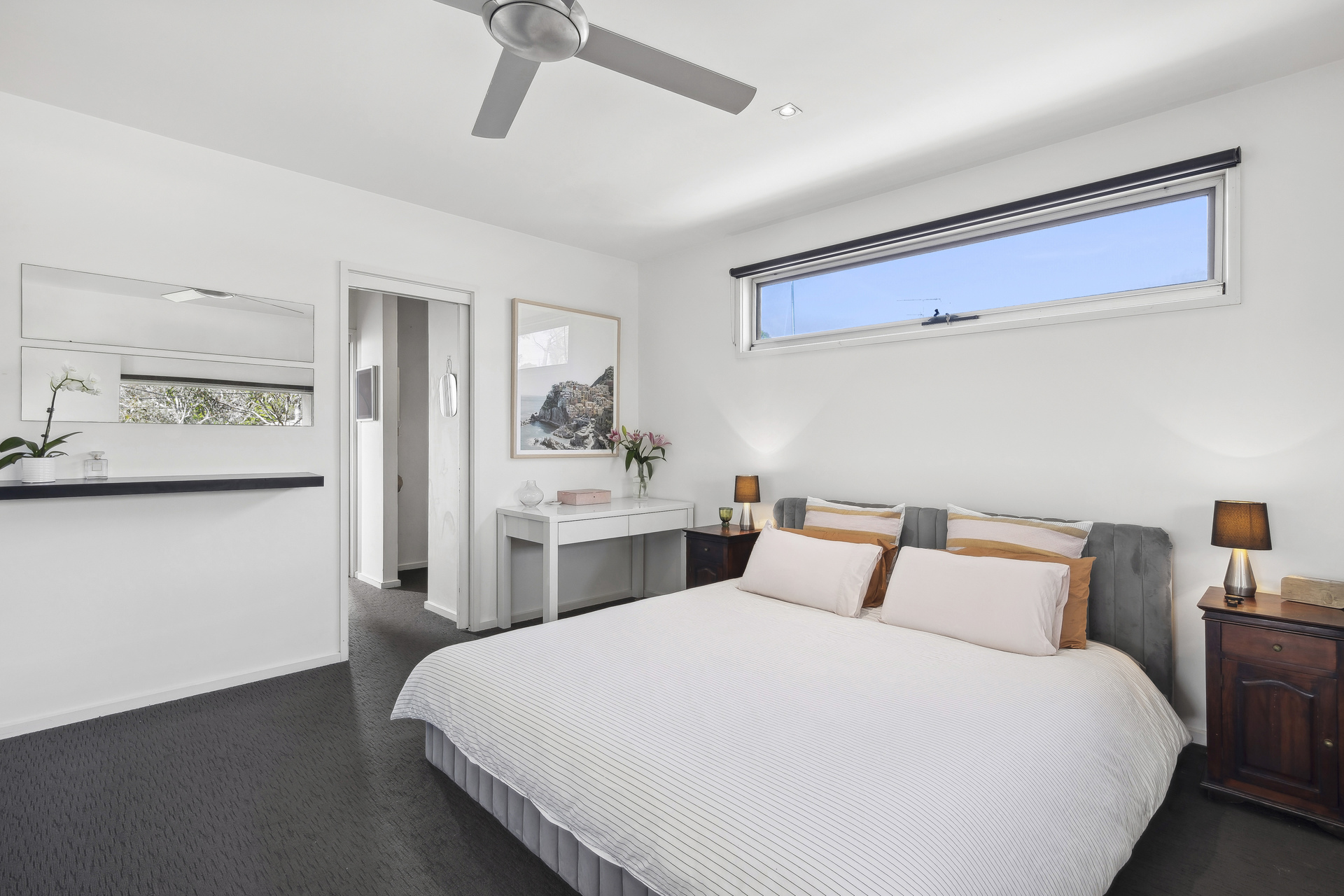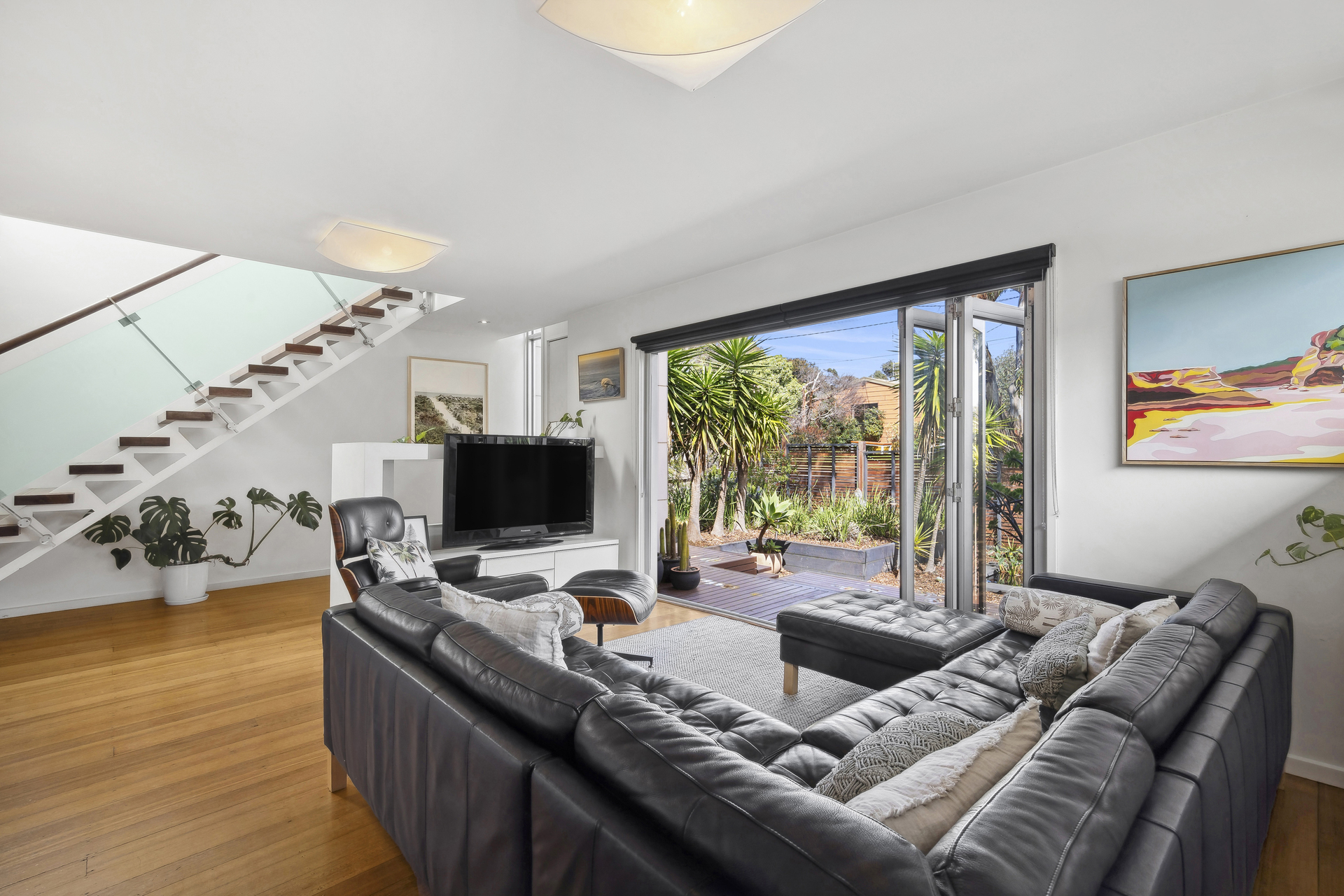Discover this stunning 3-bedroom, two-storey architectural-designed home, nestled in a highly sought-after pocket. This prime location offers the perfect blend of architectural style and family living, providing easy access to picturesque shores and scenic walking trails. From the moment you step inside, you'll be captivated by the seamless connection between indoor and outdoor spaces, designed to embrace natural light and the tranquillity of the surrounding gardens. High ceilings and an open stairwell to the upper level serve as striking design elements, enhancing the sense of space throughout the home. Upon entry, you are welcomed by a spacious living area that features bi-fold doors opening to the front deck, beautifully blending indoor and outdoor living. This connection flows effortlessly into the well-appointed, light-filled kitchen, where the sun streams through the windows, offering picturesque views of the treed garden. The kitchen also boasts bi-fold doors leading to the outdoor alfresco area, complete with a built-in BBQ and deck-perfect for entertaining family and friends. The flowing floorplan includes two generous bedrooms and a central bathroom on this level, making it ideal for family living. Off the living zone, you'll find a designated study, perfect for working from home or pursuing creative projects. The upper level features a luxurious parents' retreat, complete with a master bedroom, walk-in robes, an ensuite, and a separate living zone. Enjoy views across Jan Juc from the picture windows, with the deck seamlessly flowing from the living space-creating a perfect spot for morning coffee or evening relaxation. The private, bush-style garden offers a peaceful retreat with its natural landscape, featuring a fire pit area that's perfect for cozy gatherings. Additionally, the garden includes a separate home studio or office-ideal for creative pursuits or additional workspace. You'll also appreciate the sustainability features, including water tanks & solar panels, which enhance the home's eco-friendly appeal. Step out onto your choice of front or rear decks, making it easy to entertain or simply enjoy the serenity of your surroundings. Positioned just 450 meters from Jan Juc Beach, local cafes, and restaurants, this home provides an ideal setting for families seeking to embrace a coastal lifestyle.