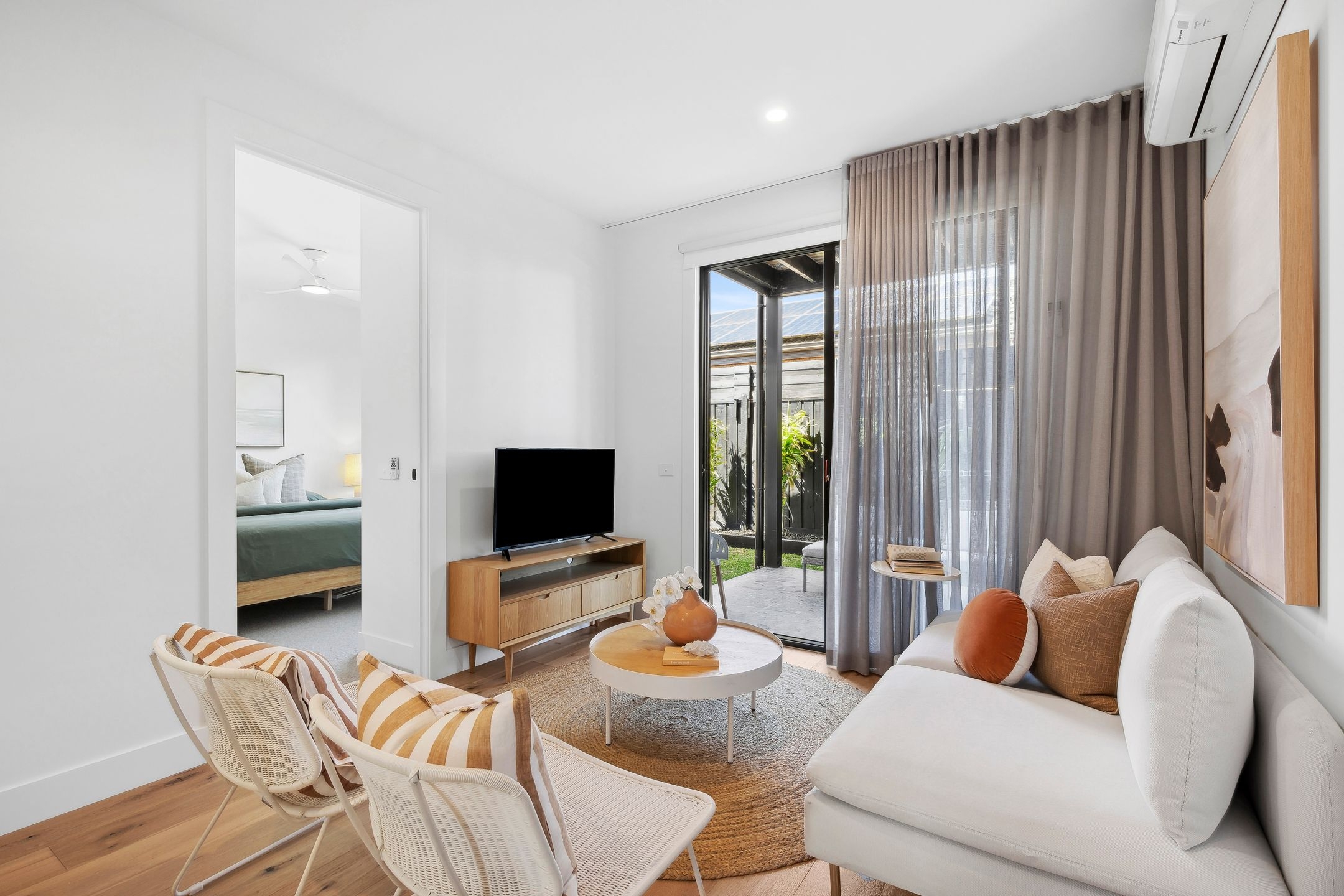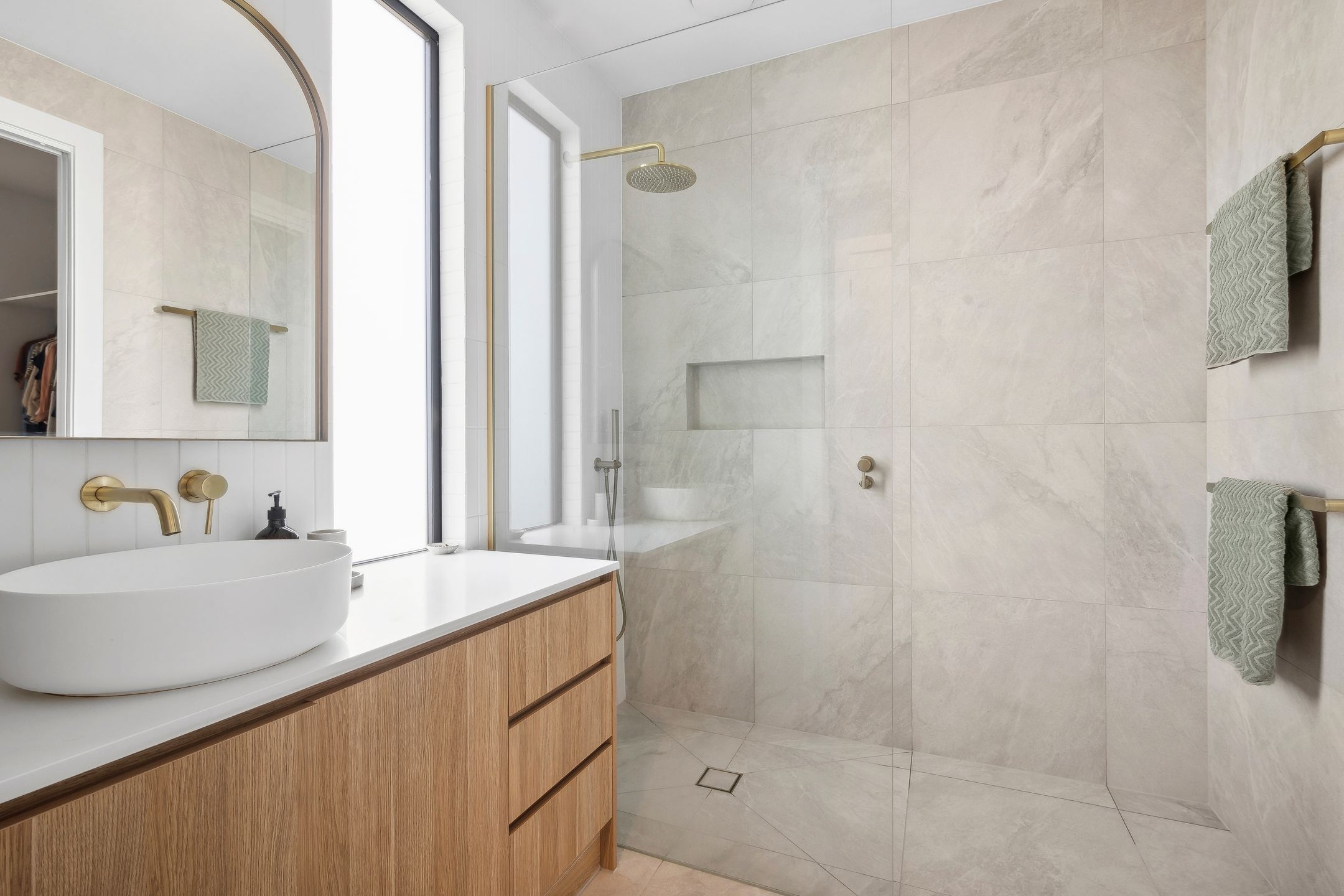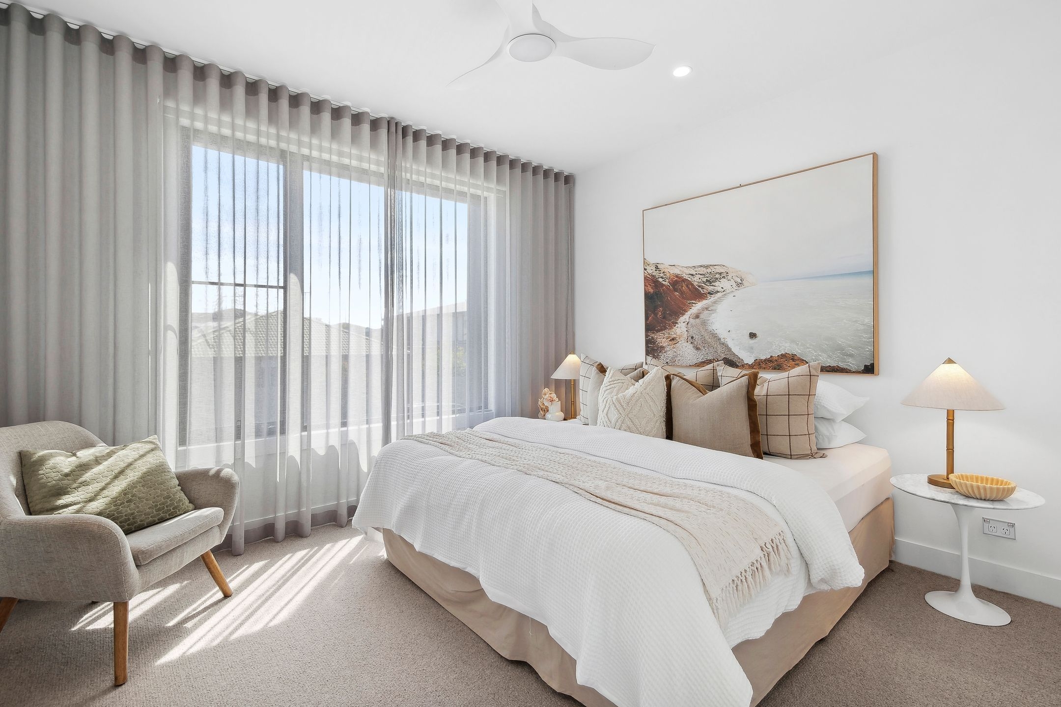 • The exquisite designer features, including Italian tiles, brushed gold tapware, stylish cabinetry, soaring ceilings, plus elegant sheer curtains & flooring.