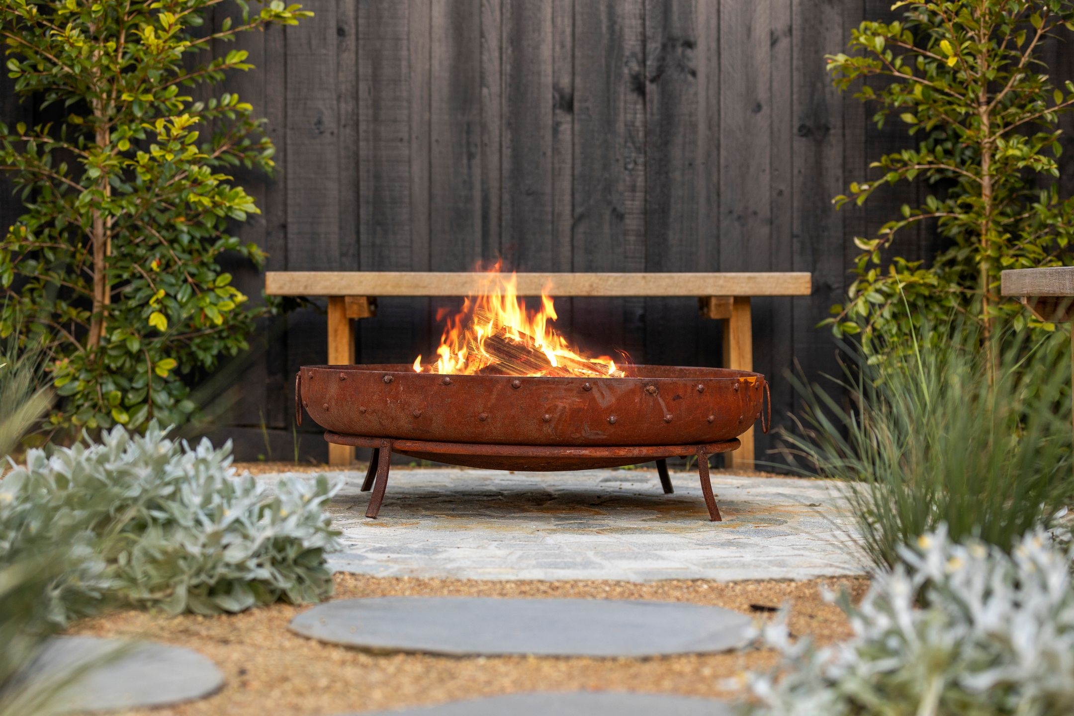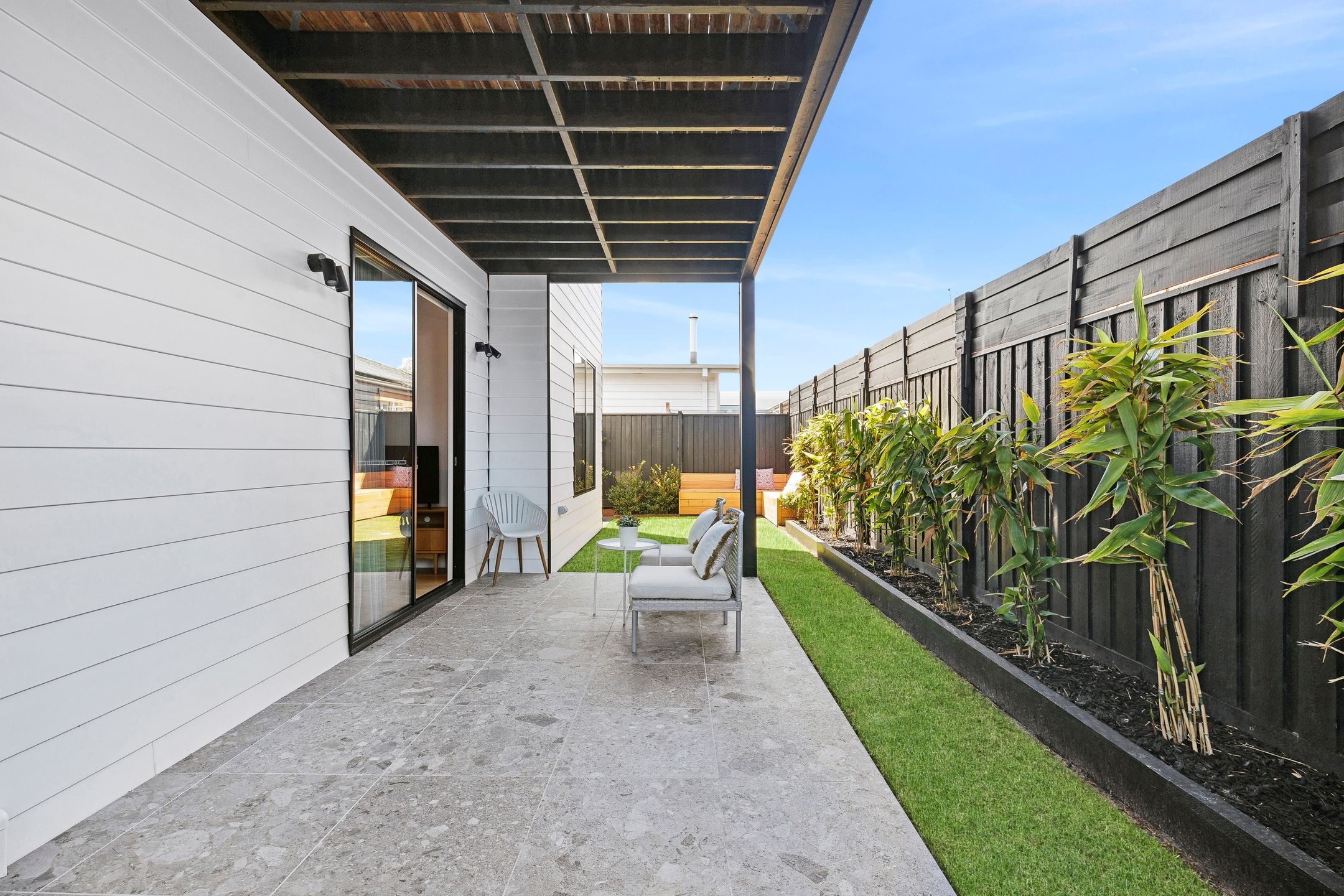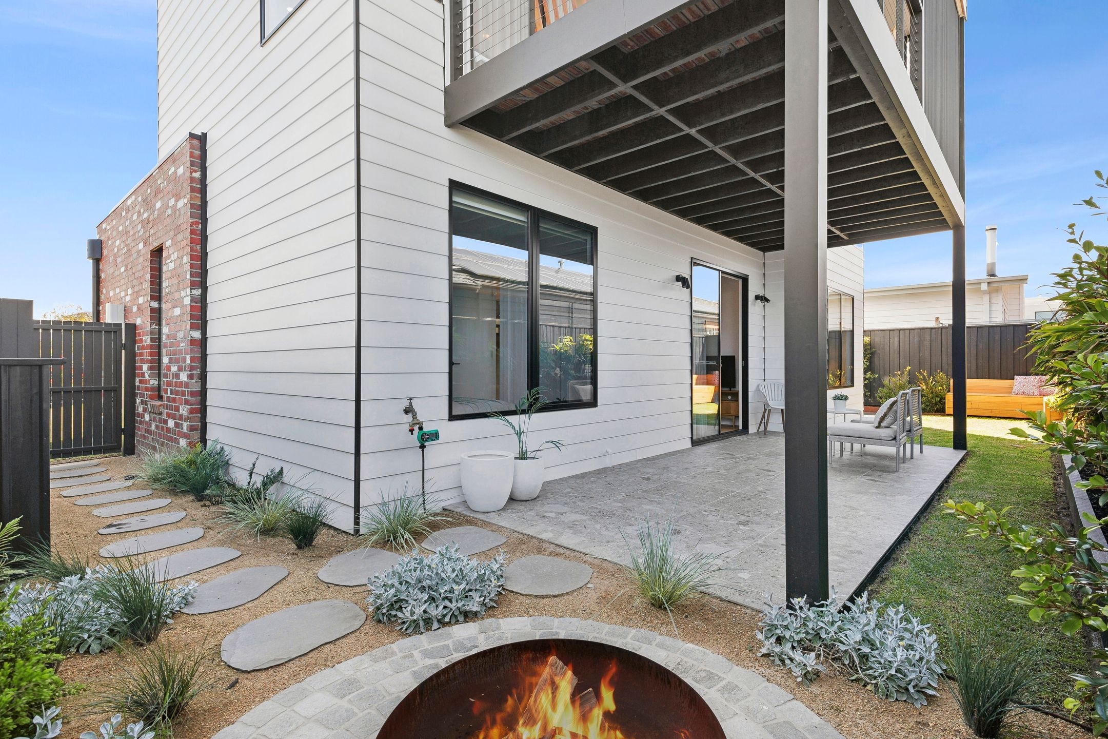 • The backyard oasis boasts in-built seating, a covered alfresco area, firepit zone, beautiful landscaping & an outdoor shower for rinsing off after the beach.