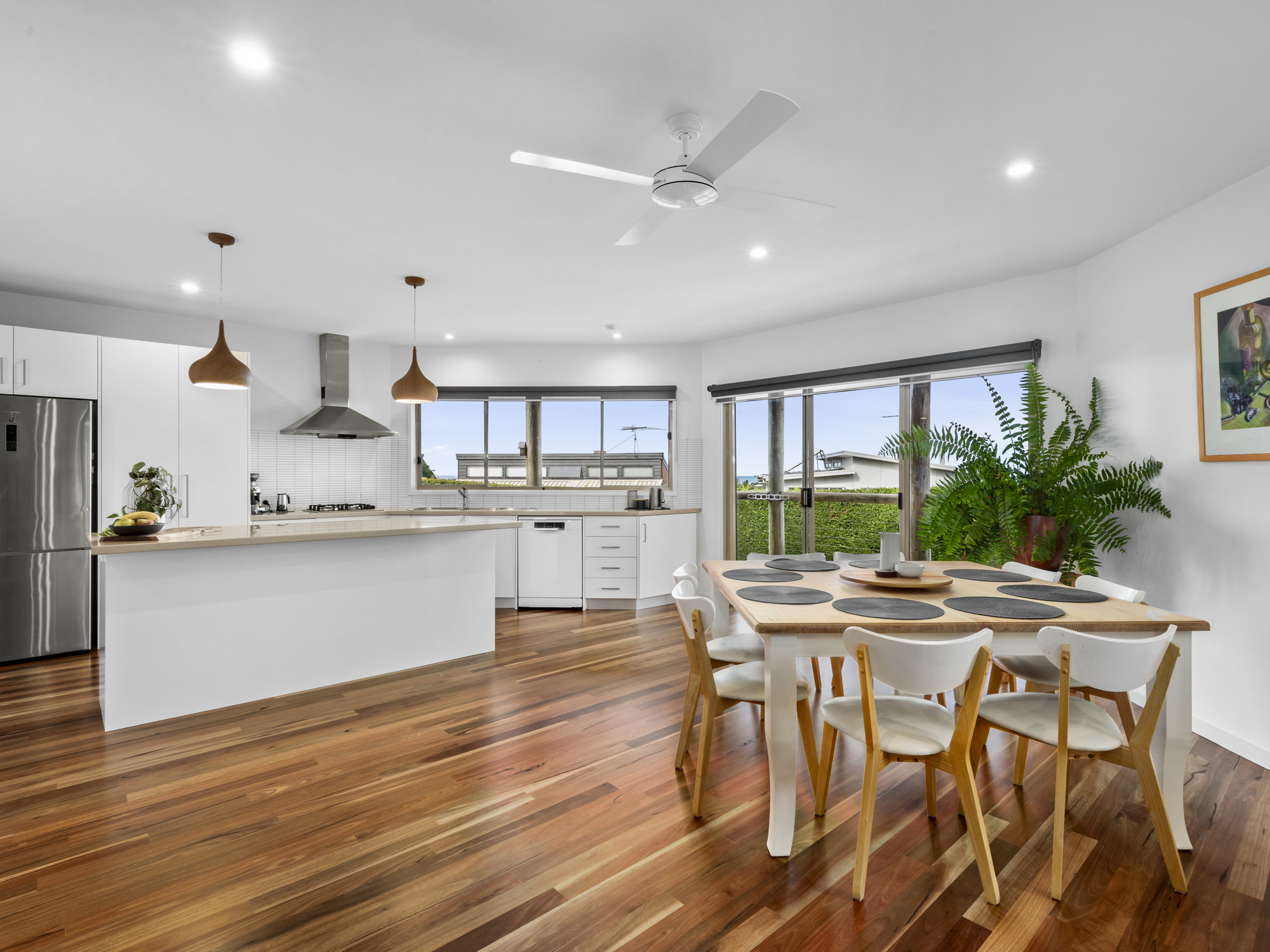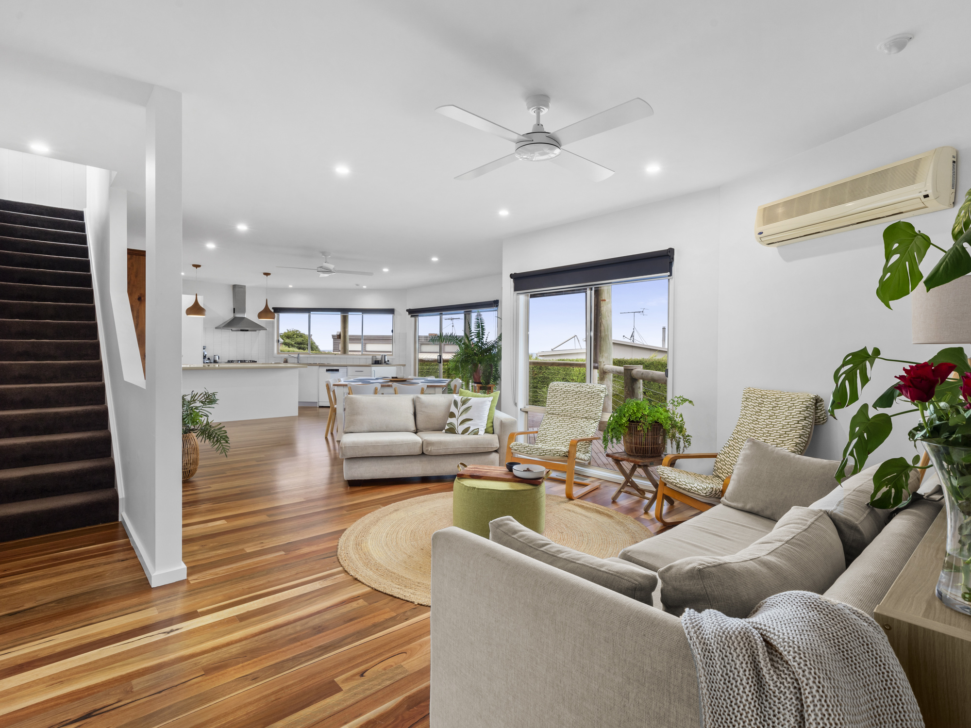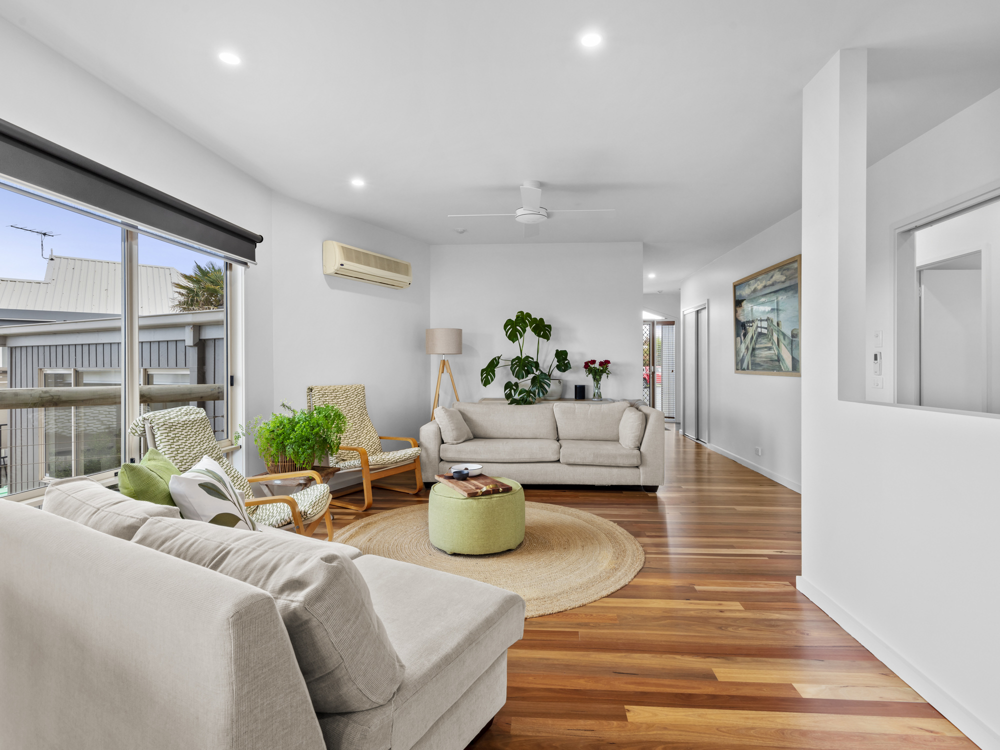 As you enter, you'll be drawn by the warmth and character of the solid spotted gum floor as it opens from the hallway into the spacious first floor living area.