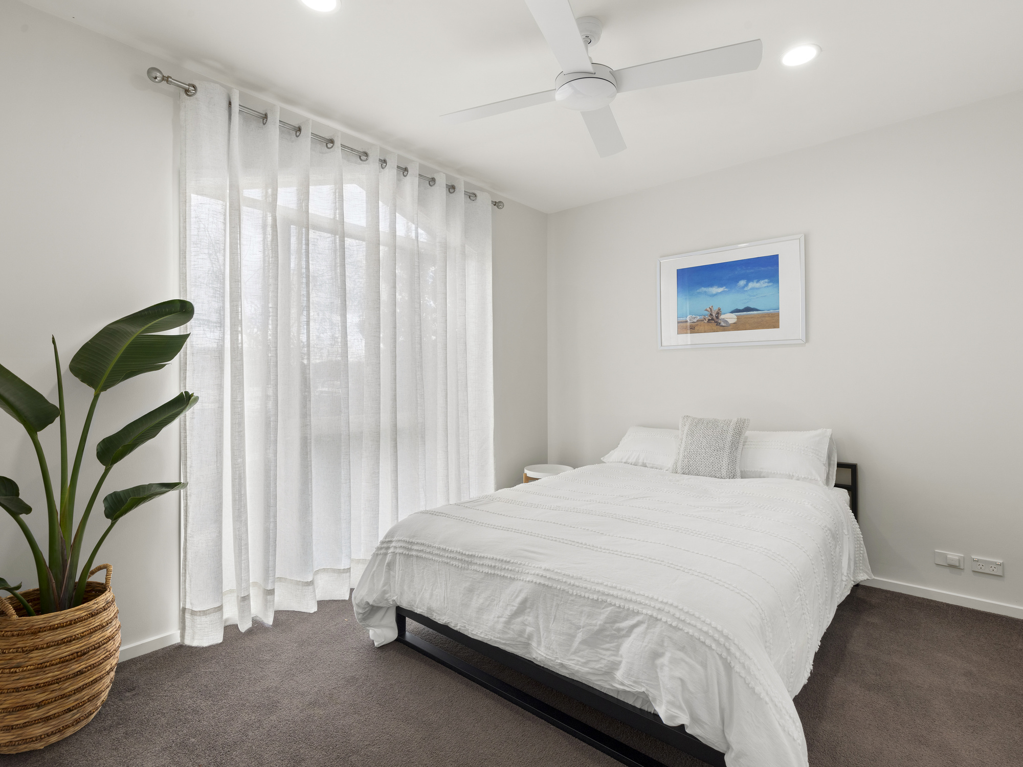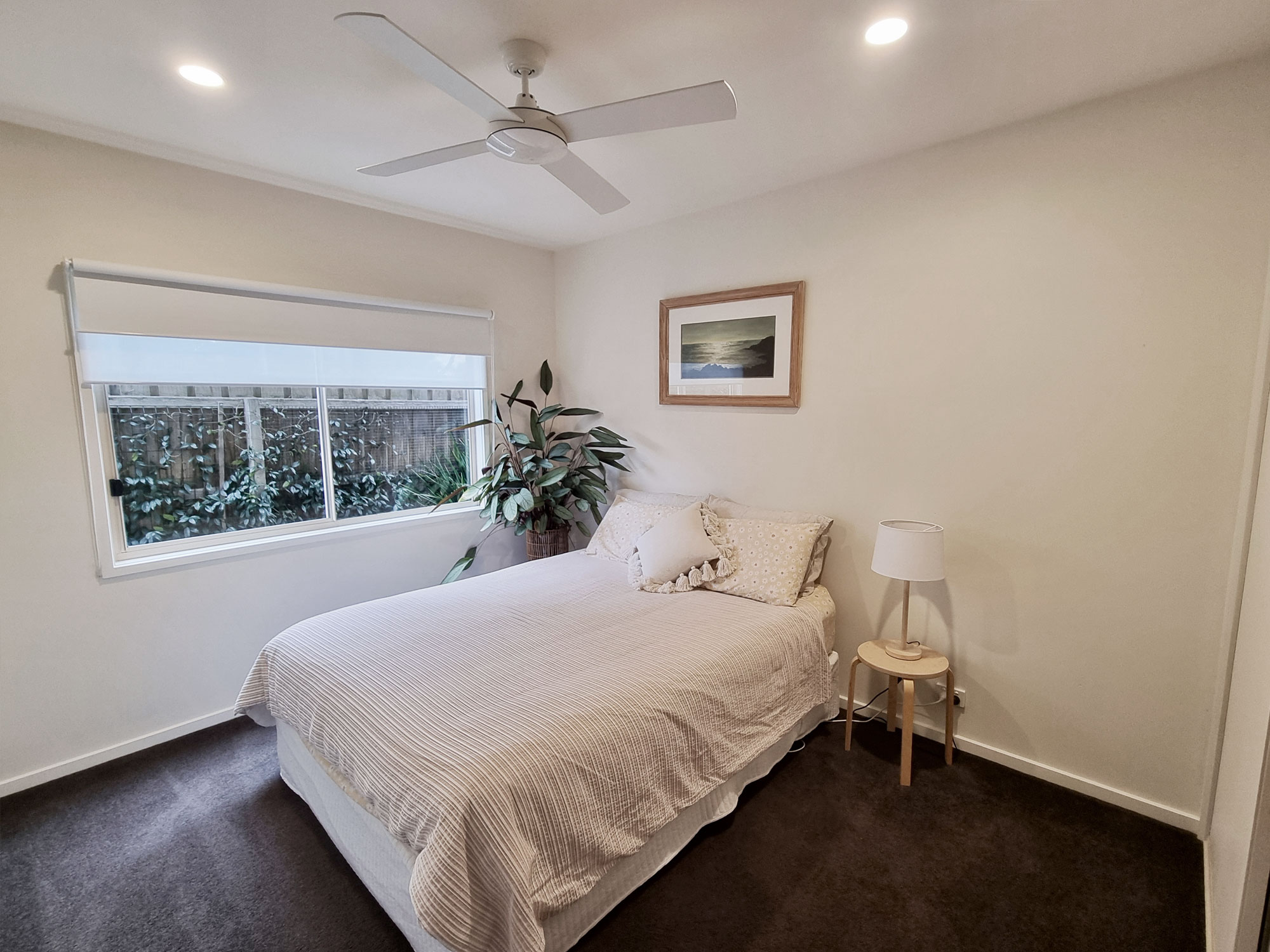 There are 4 spacious bedrooms, 3 of which are downstairs and all have built-in robes and ceiling fans. One bedroom even has ensuite access to the family bathroom, providing privacy and convenience for guests or family members.