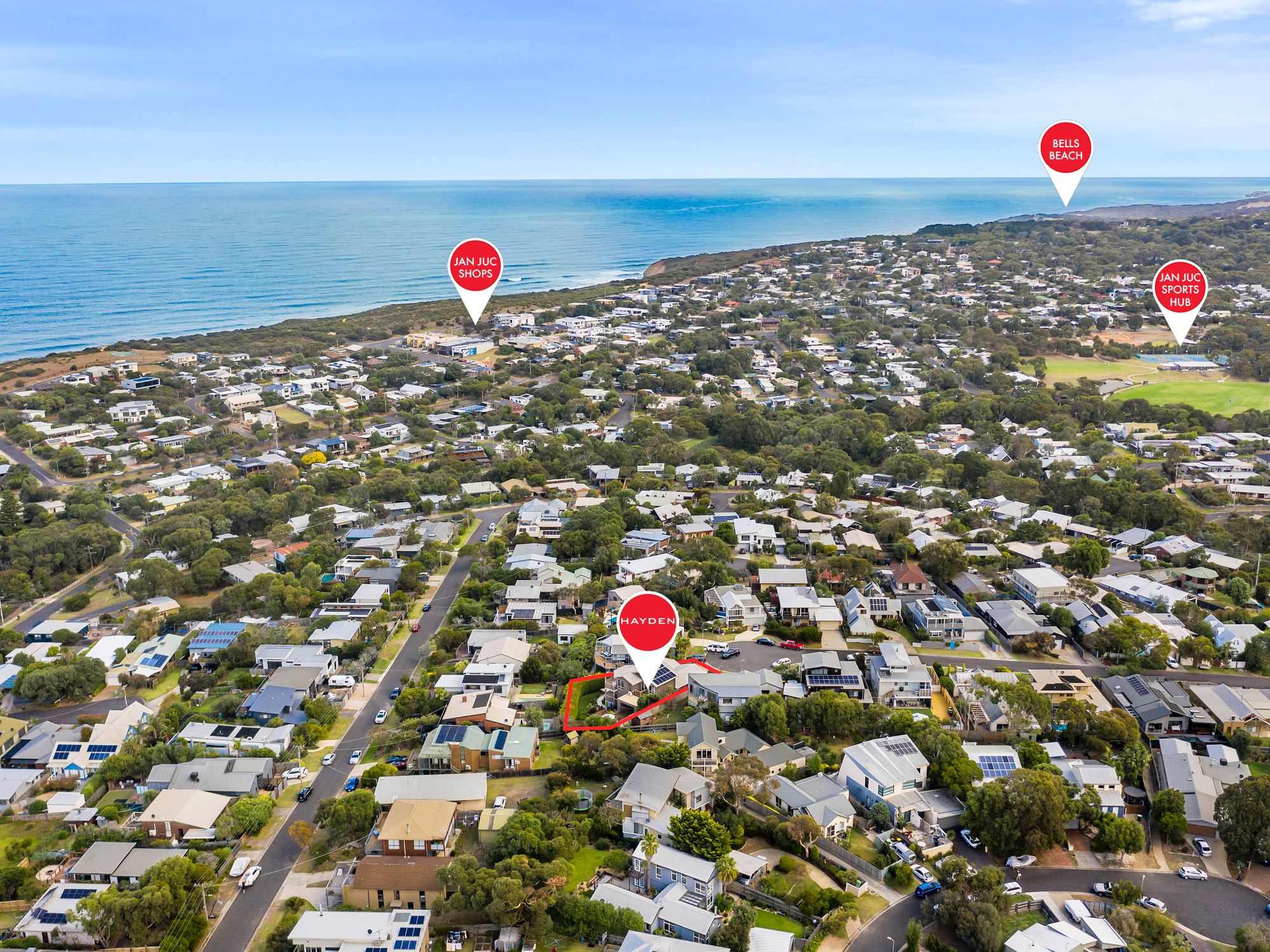 Centrally located in Jan Juc, the beach and local amenities, such as shops, cafes, Bells Beach Hotel, bus stops, tennis courts and sports oval, are all within a short stroll, utilising the network of laneways and nature reserves.