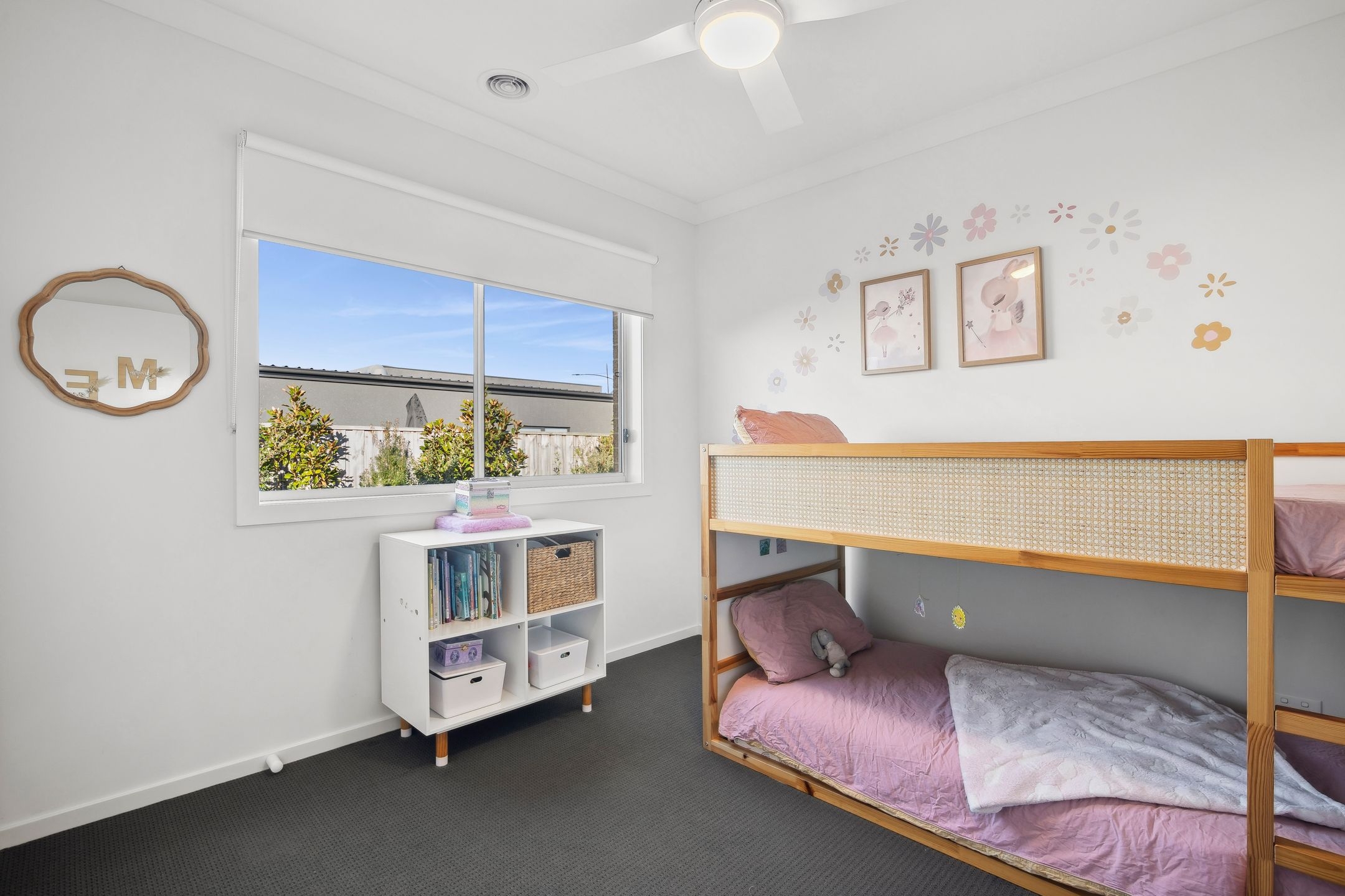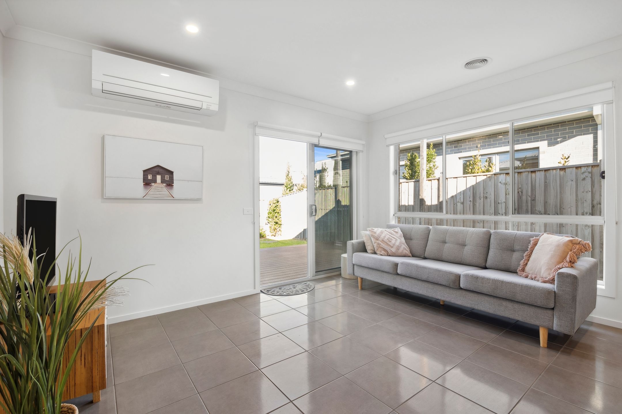 Plus: • Other quality features include stone bathroom benchtops, a convenient study nook, ample storage, ducted heating, split system cooling, ceiling fans in all bedrooms, plus a double garage with house access. • Nestled in family-friendly Quay 2, within walking distance to playgrounds, schools, The Dunes Village shops, sports fields, nature reserves, Torquay farmers market, beautiful beaches & more!