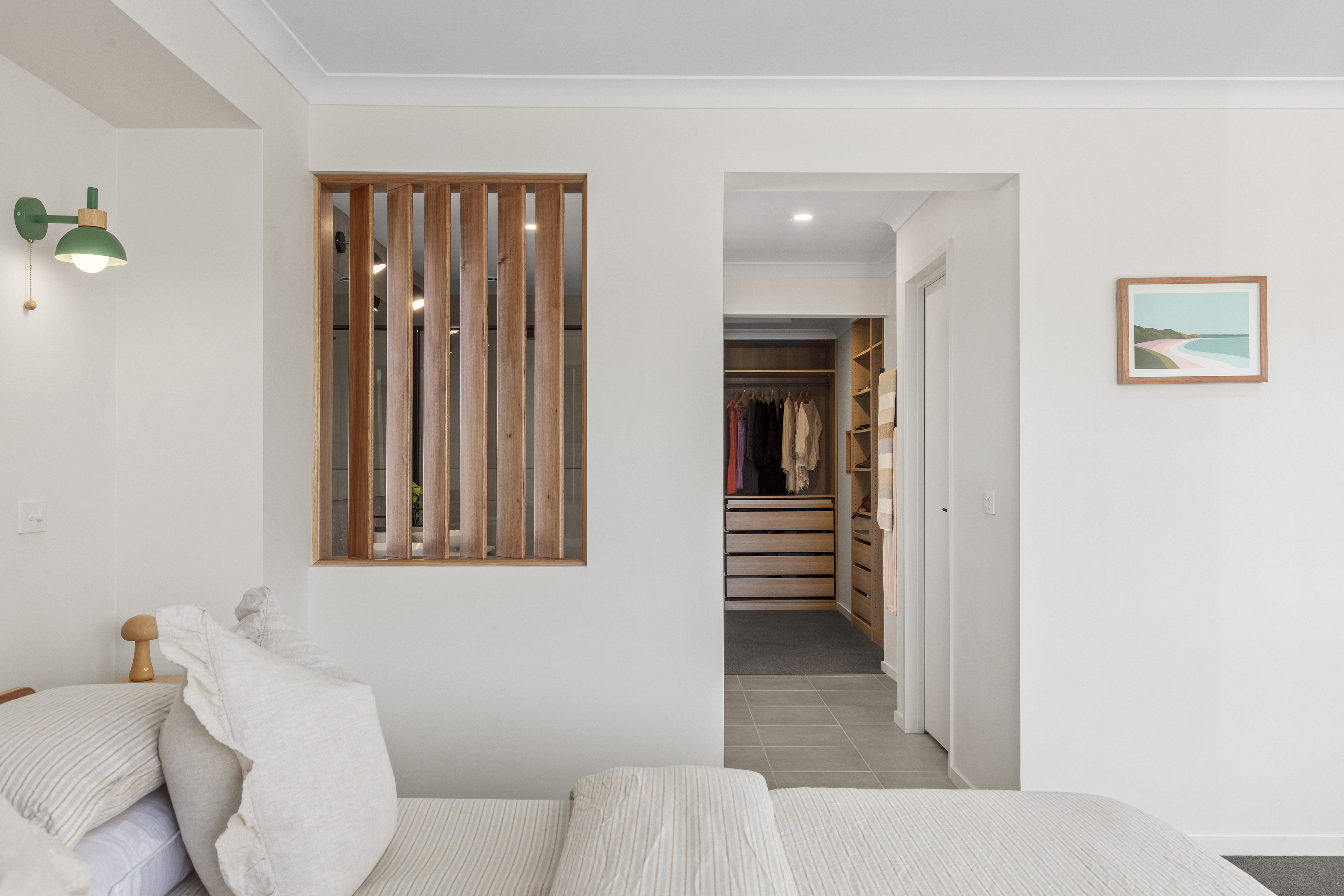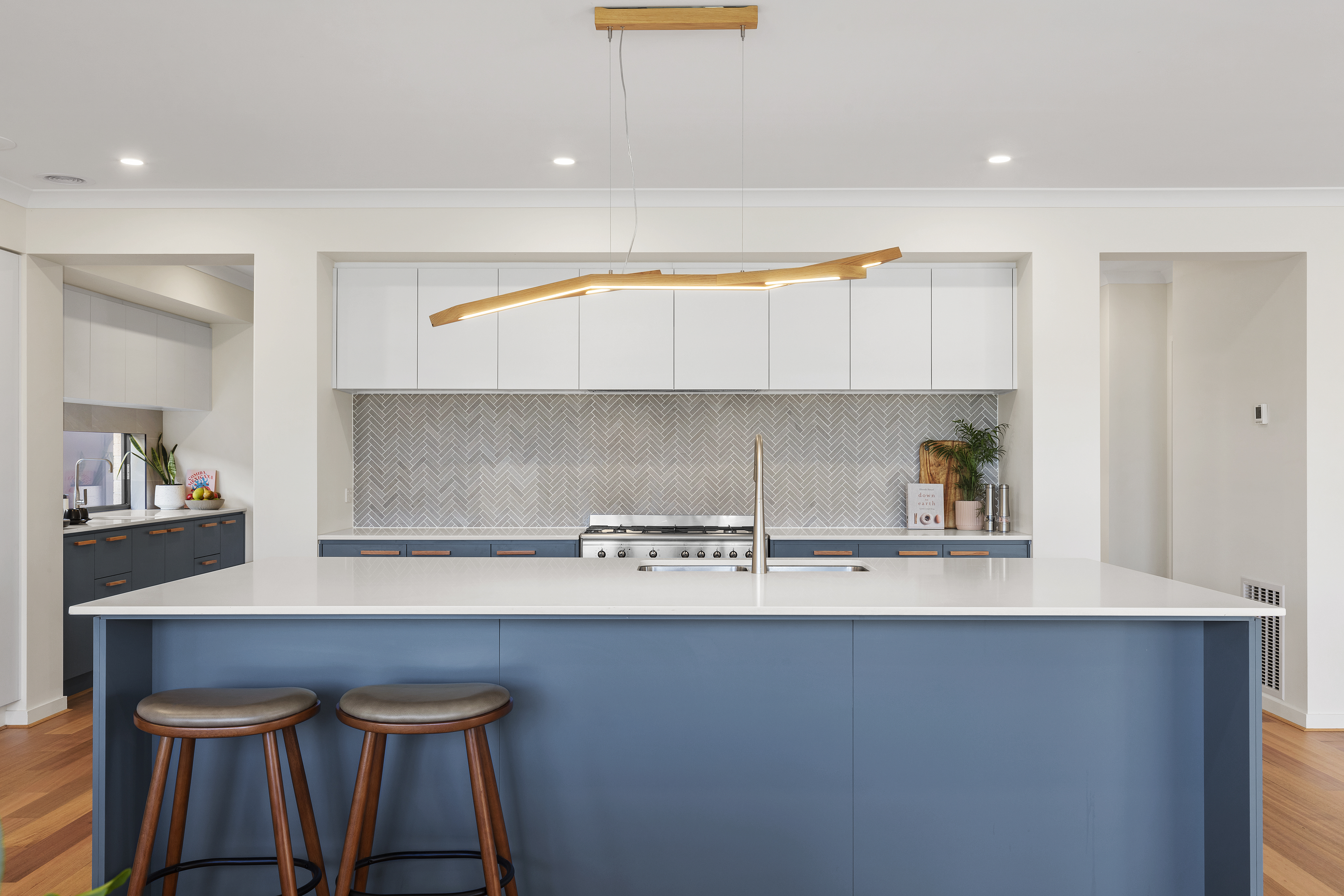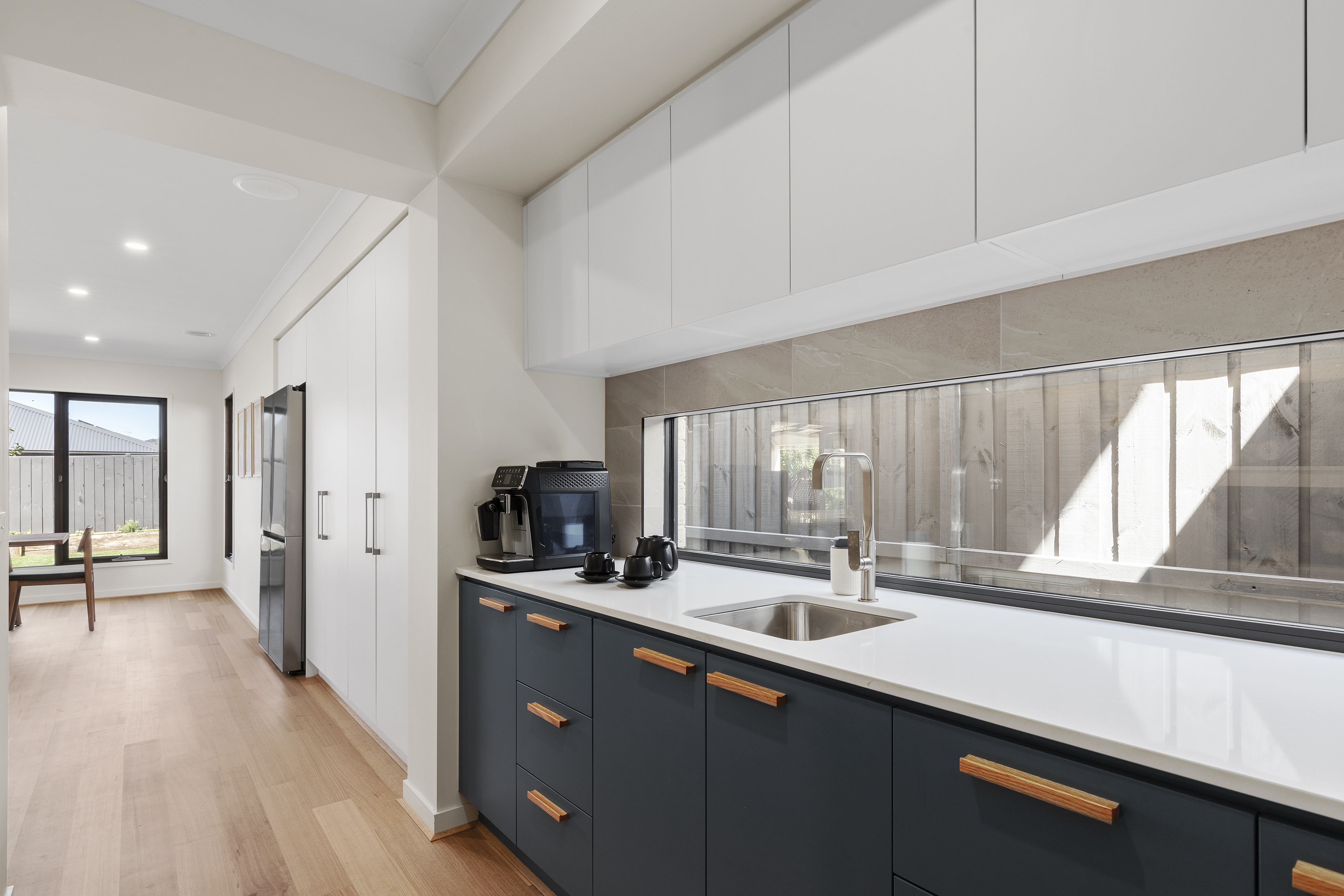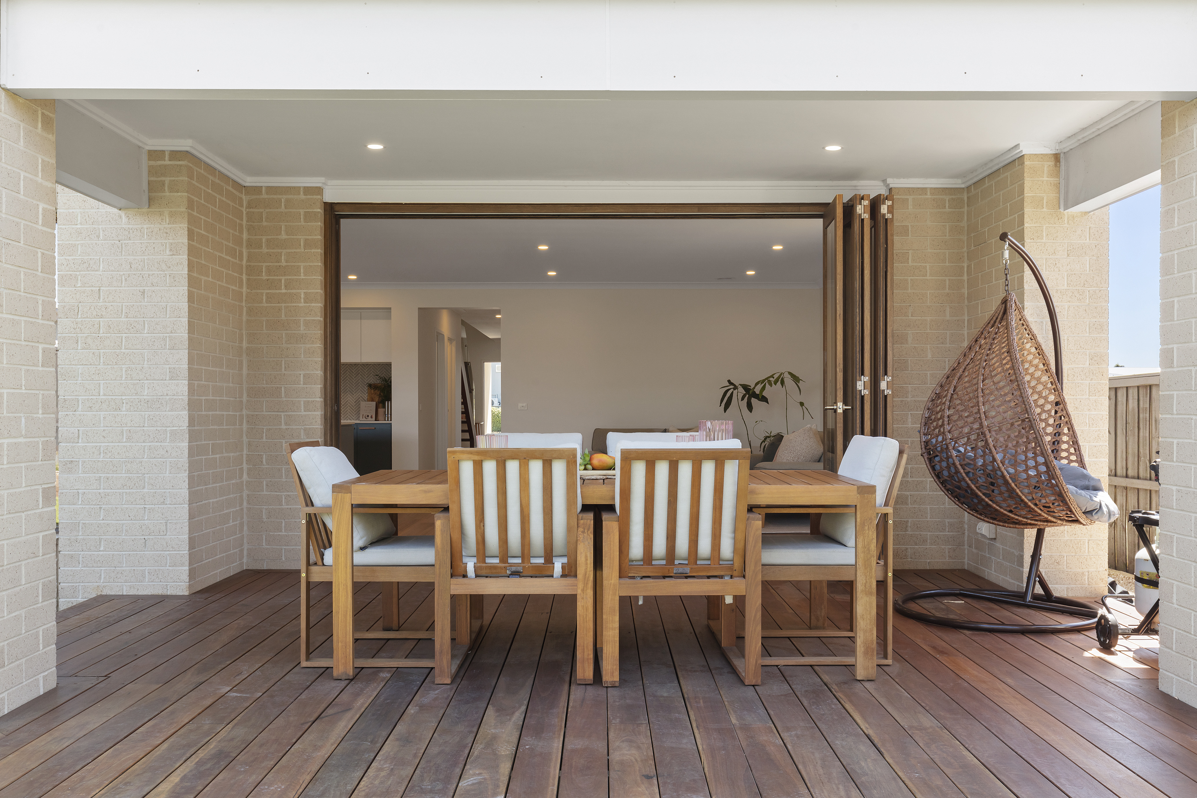 separate walk-in pantry -Timber stacker doors create an exceptional indoor-outdoor flow to entertaining area -Powder room – perfect for family and guests -Family laundry with external access, features abundance of storage -Convenient walk-in linen