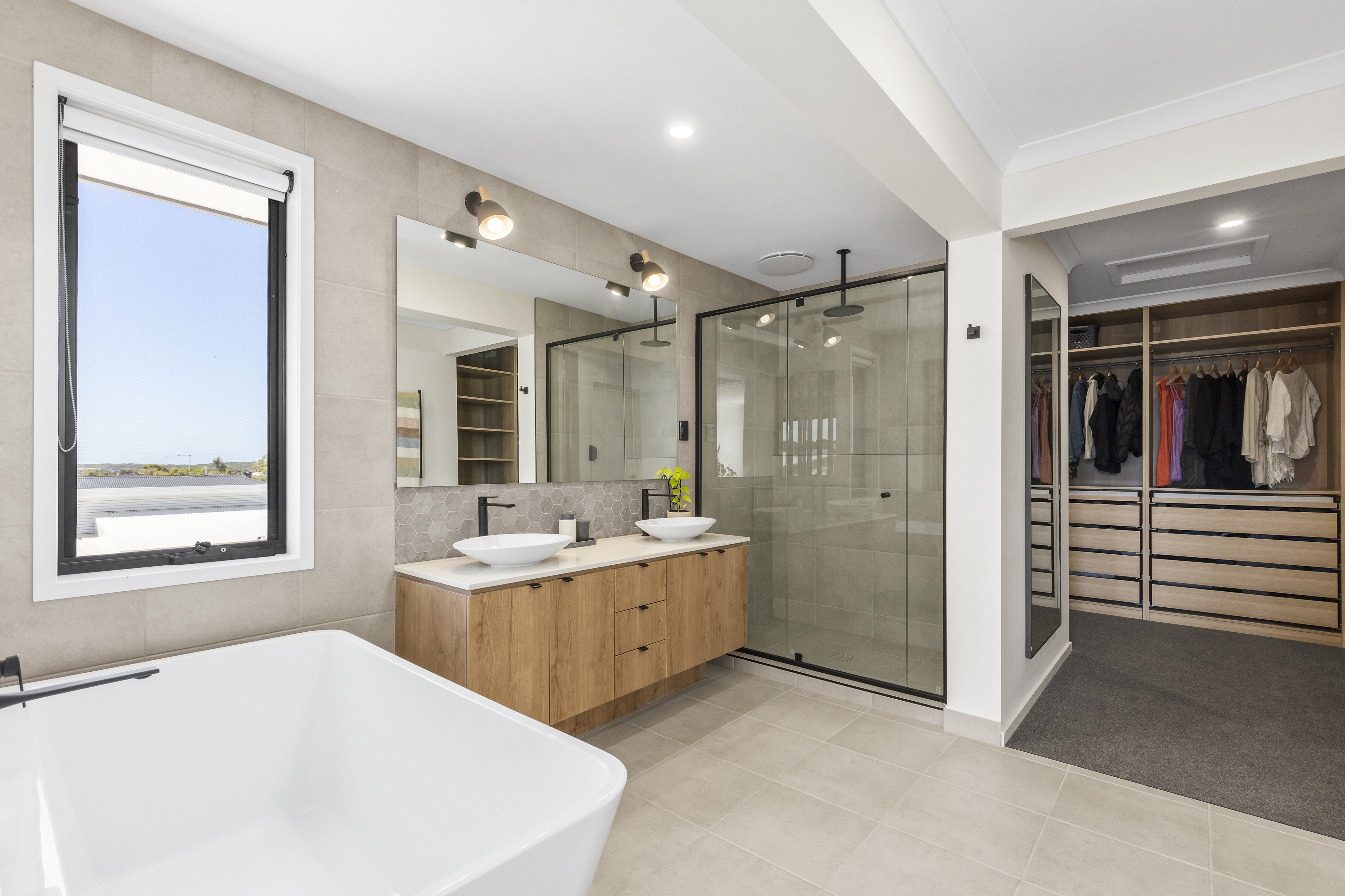 Upper level -Opulent primary suite with balcony and ocean view, the perfect place to rest and recharge -Custom dressing room features timber cabinetry and laundry chute -Ensuite – double shower, dual vanity, Phoenix matt black tapware, stone benchtop, lavish bath, separate toilet, …what’s not to love -Three further bedrooms each with walk in robes. -Family living room perfect for a parents or children’s retreat -Substantial family bathroom features dual basins, Phoenix matt black tapware, large walk-in shower, freestanding bath and walk in linen.