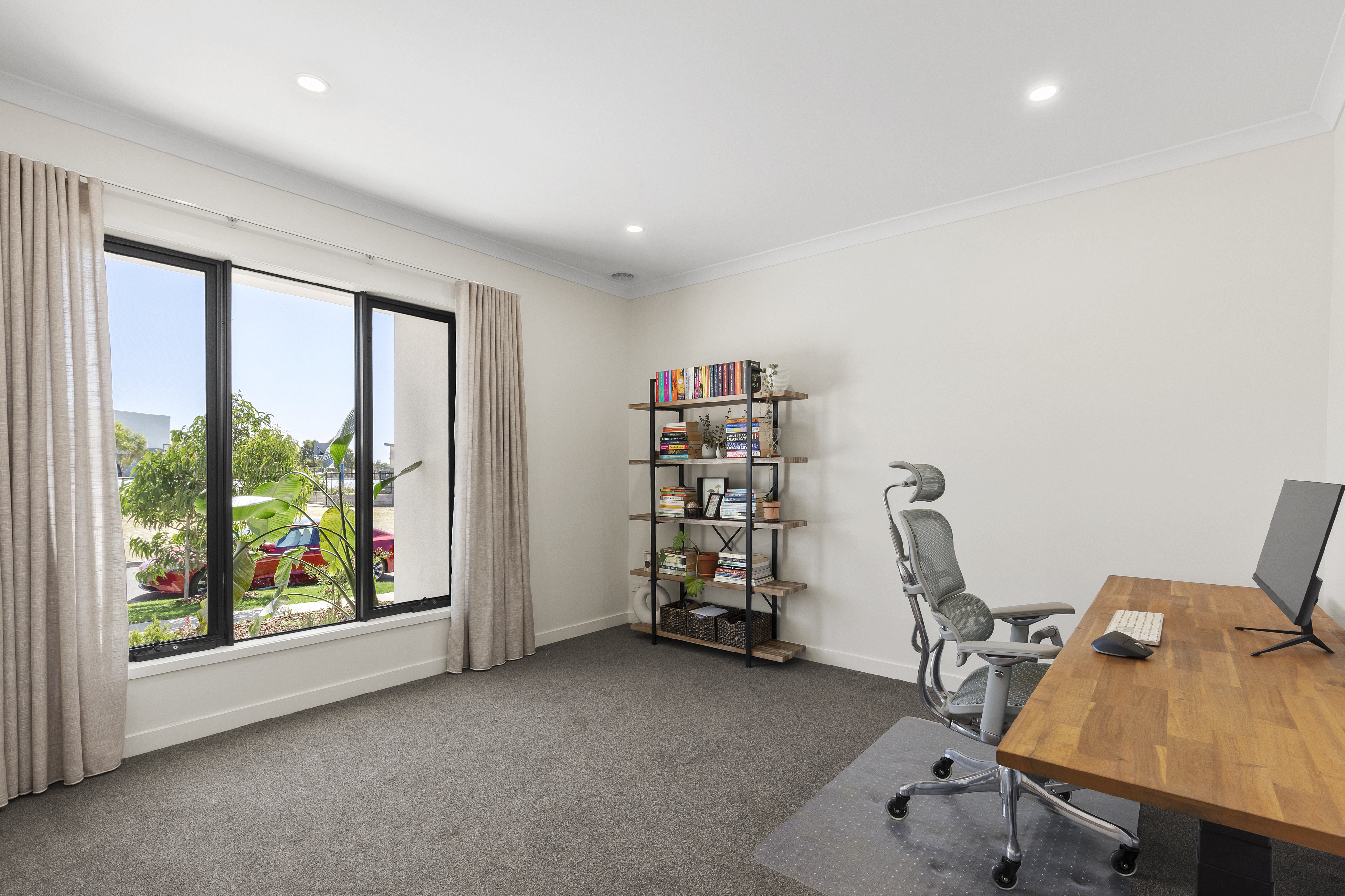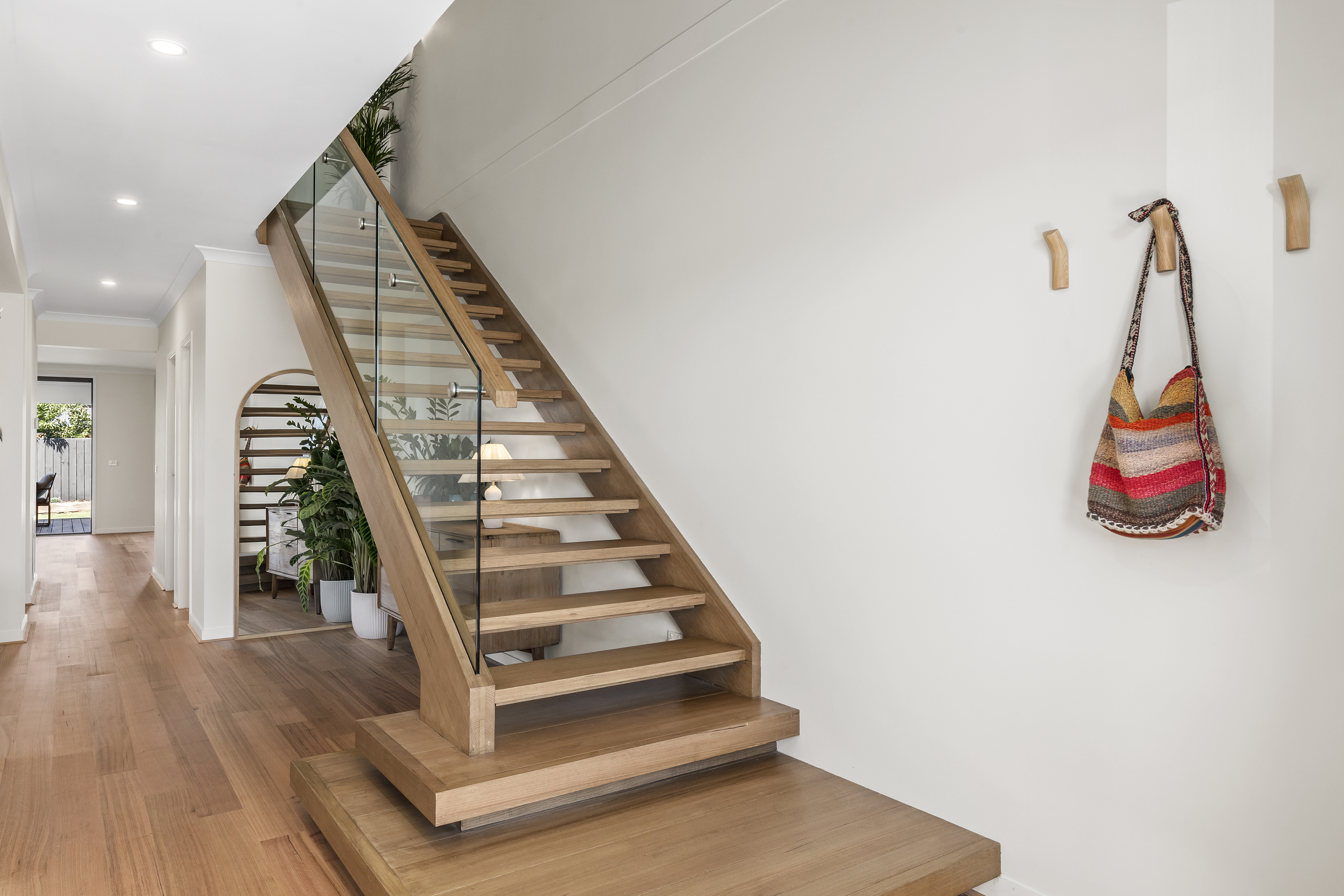 -Welcoming foyer invites you inside the home -Tasmanian oak laminate floor -Floating Victorian ash timber staircase draws you to upper level -Home office -Carpeted theatre room perfect for movie nights -Open plan kitchen, dining, living room with picturesque vistas to garden -Chief’s kitchen, equipped with feature tile splash back, Smeg appliances,