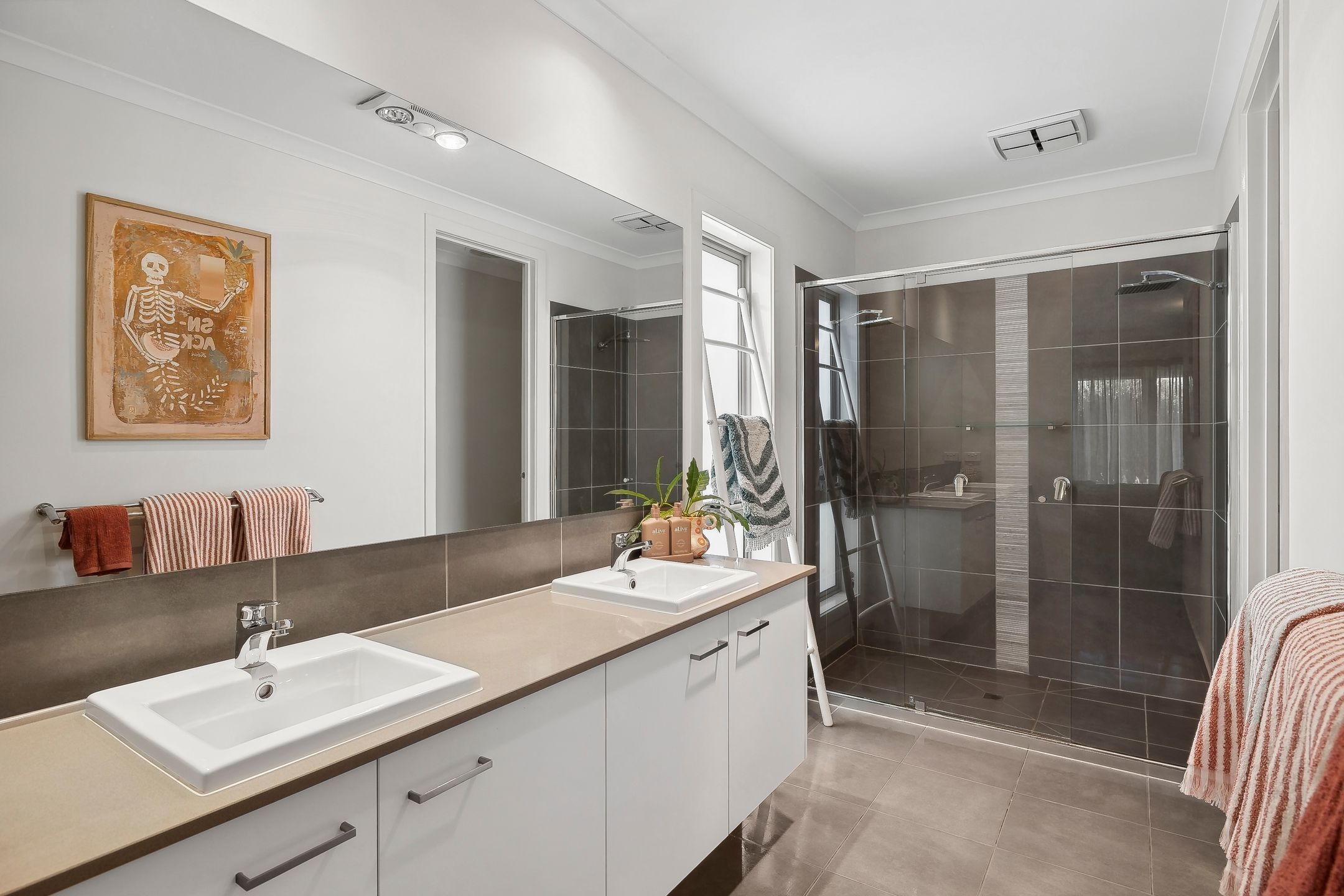 • Other standout features include a sun-drenched north-facing backyard with manicured gardens, split systems in upstairs living & bedrooms, gas central heating, tons of storage, double glazed windows & a double garage with internal entry.