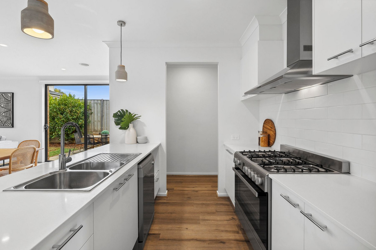 Perfect Family Home in prime location With an impressive 16m frontage this striking modern facade at 23 Bursaria Street offers a spacious open-plan design with a desirable northerly aspect. This contemporary, single-story built to first-class boutique standards, captures the essence of coastal living in a prime location. The light-filled living area serves as the heart of the home, providing seamless flow between the lounge, dining, and kitchen areas. Ideal for entertaining, this space opens onto a large, north-facing alfresco area. All bedrooms feature built-in robes, while the master boasts a walk-in robe and ensuite. A family bathroom and a well-designed laundry with excellent storage complete the single-level layout. The kitchen is equipped with stone benchtops, stainless steel appliances, new dishwasher, a 900mm cooktop and oven, and a walk-in pantry. Ducted heating and split-system cooling ensure year-round comfort. The home comprises 4 bedrooms or 3 bedrooms and second living in addition to the well thought out floor plan there is a, a double garage and landscaped gardens. Located just 100 metres from the Quay Reserve and playground, and close to the Dunes shopping village, coastal beaches, within walking distance to both primary and secondary schools, this home is ideal for family living. Make this your family home or next investment with strong rental returns in this market.