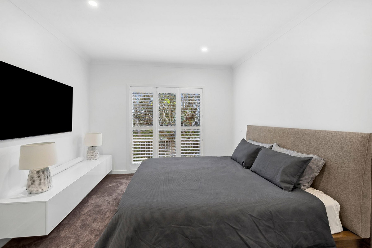 A spacious laundry provides ample storage and opens to a rear courtyard and an automatic single car garage. Additional features of this contemporary abode include elevated ceilings, ducted heating, air conditioning, engineered timber flooring, plantation shutters, new carpets, ample storage, and potential for additional vehicle parking or trailer access.