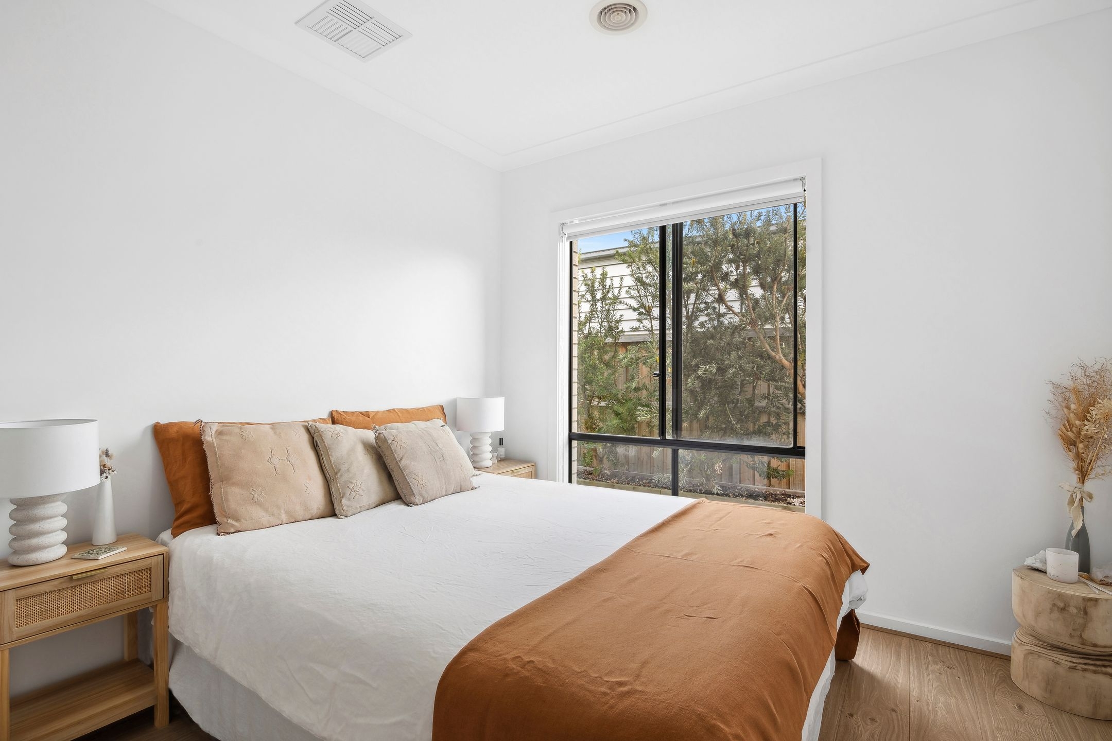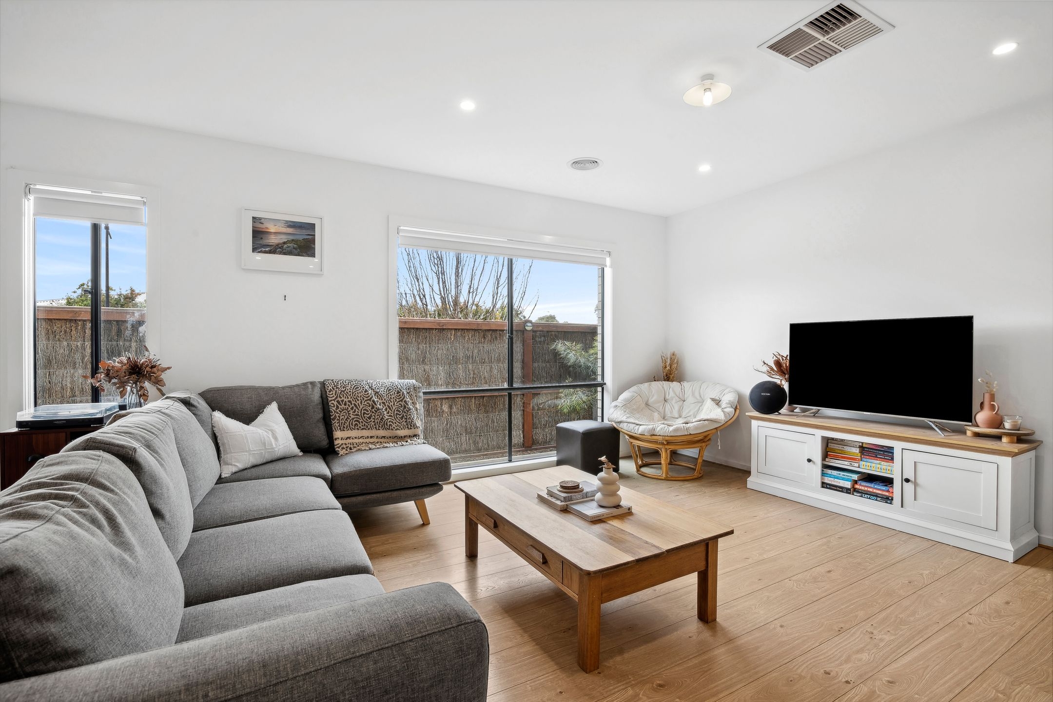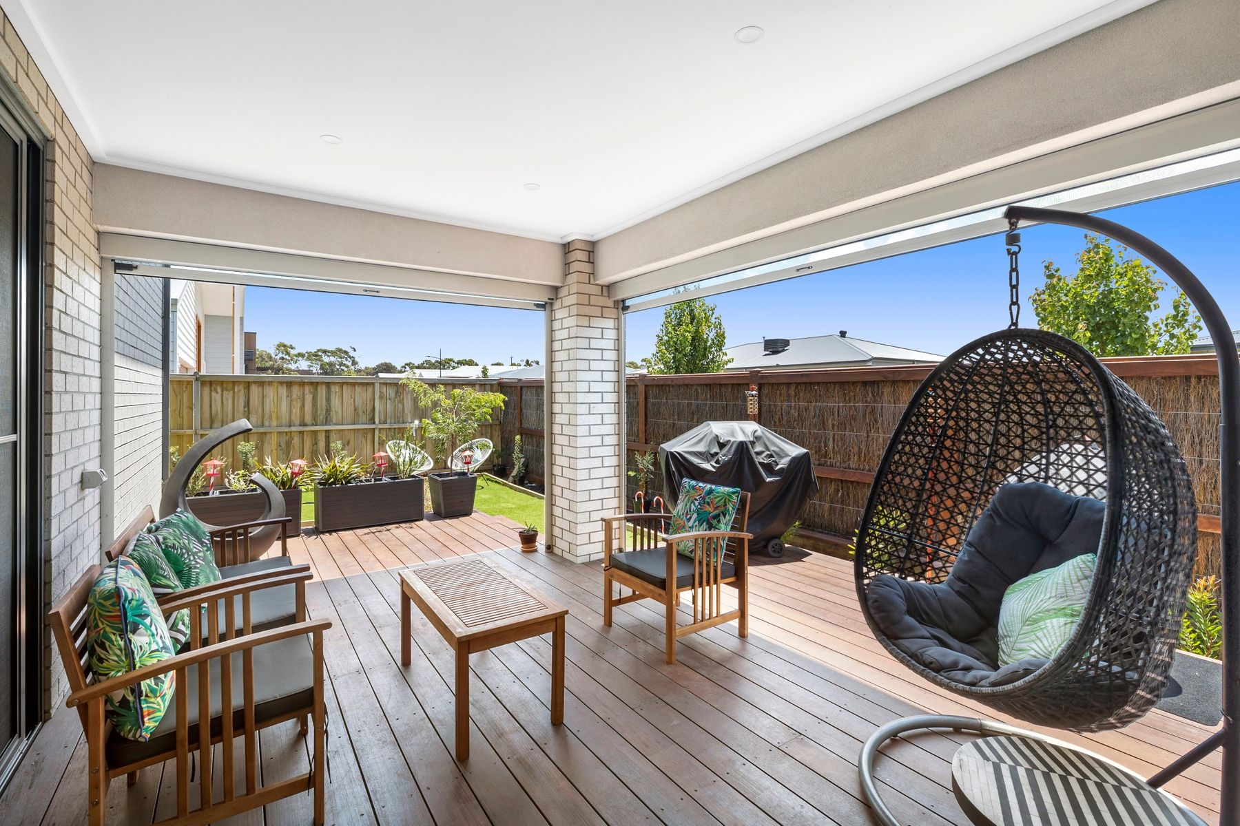 • The fully fenced & secure backyard is perfect for kids & pets, boasting an idyllic sun-drenched northerly aspect, low-maintenance gardens & an alfresco with pull-down blinds for all-season entertaining.