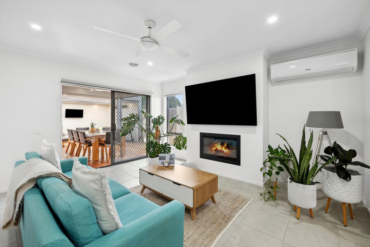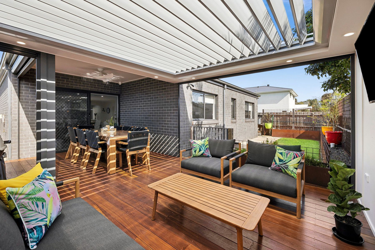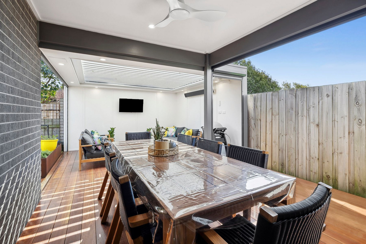 The spacious open-plan kitchen, dining, and living area seamlessly opens to a Spotted Gum decked alfresco featuring a louvred roof and blinds which can be opened or closed providing an extension of living and perfect for entertaining through all seasons.