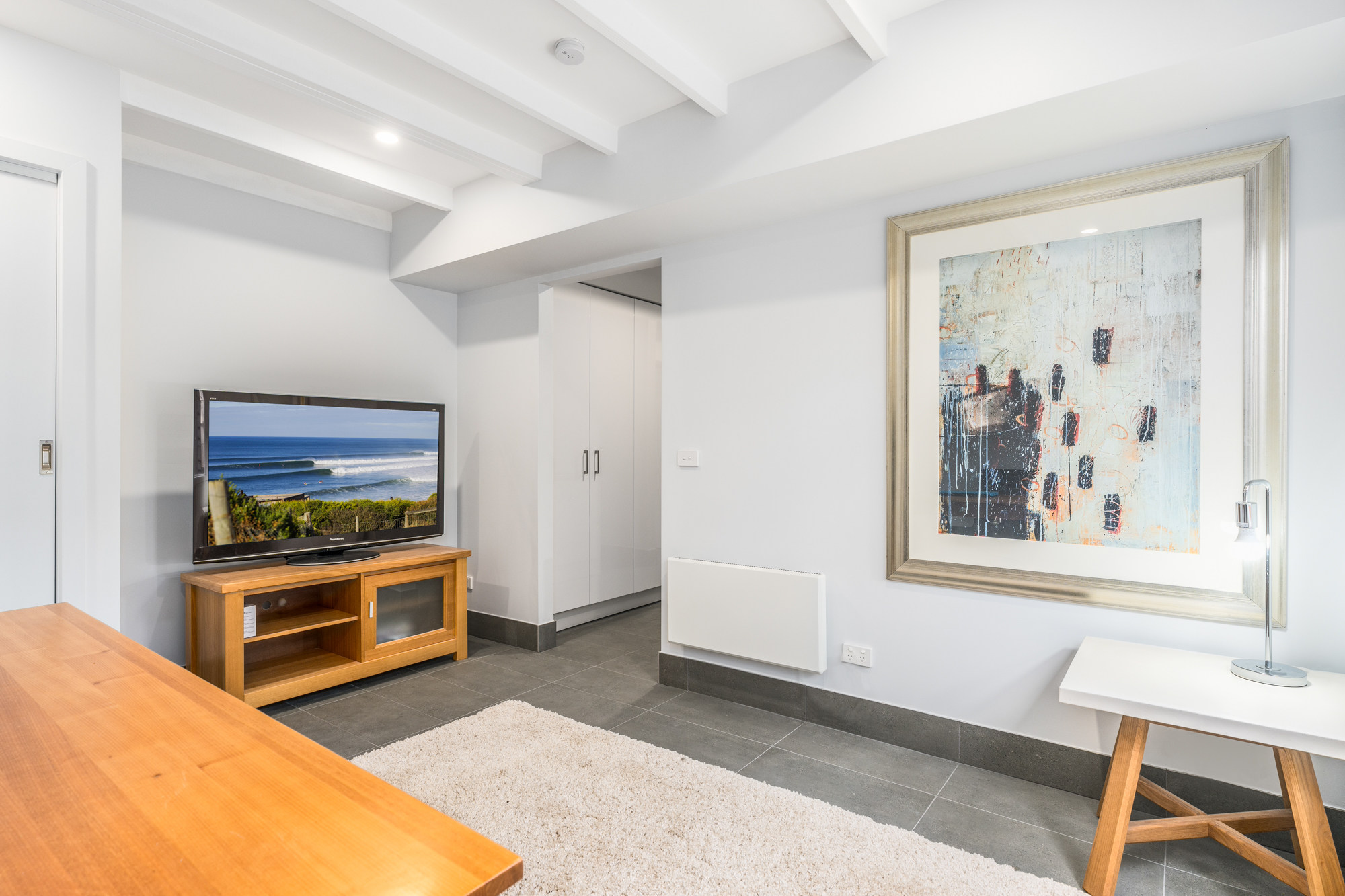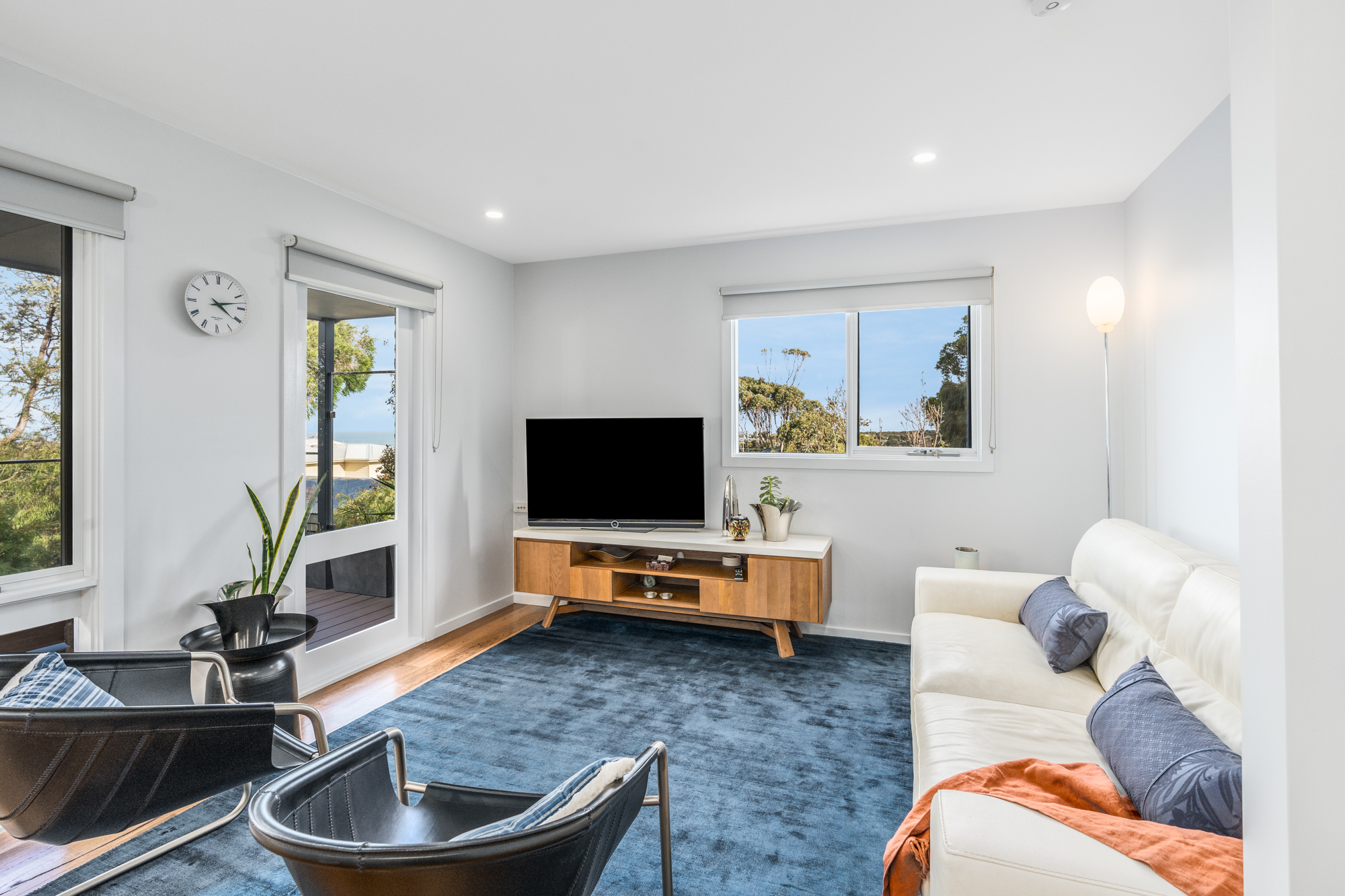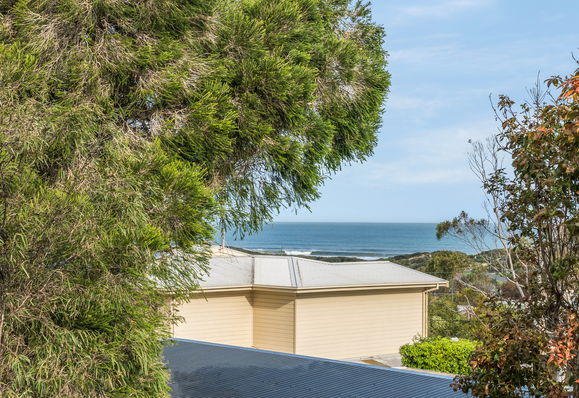 The newly renovated kitchen and living area boast stunning views stretching from Jan Juc to the ocean, creating a perfect backdrop for both entertaining and relaxation. Enjoy your surroundings from the balcony or embrace the easy living that this home offers with its four generous bedrooms, an office or studio, three bathrooms, and two living zones—ideal for flexible family living.