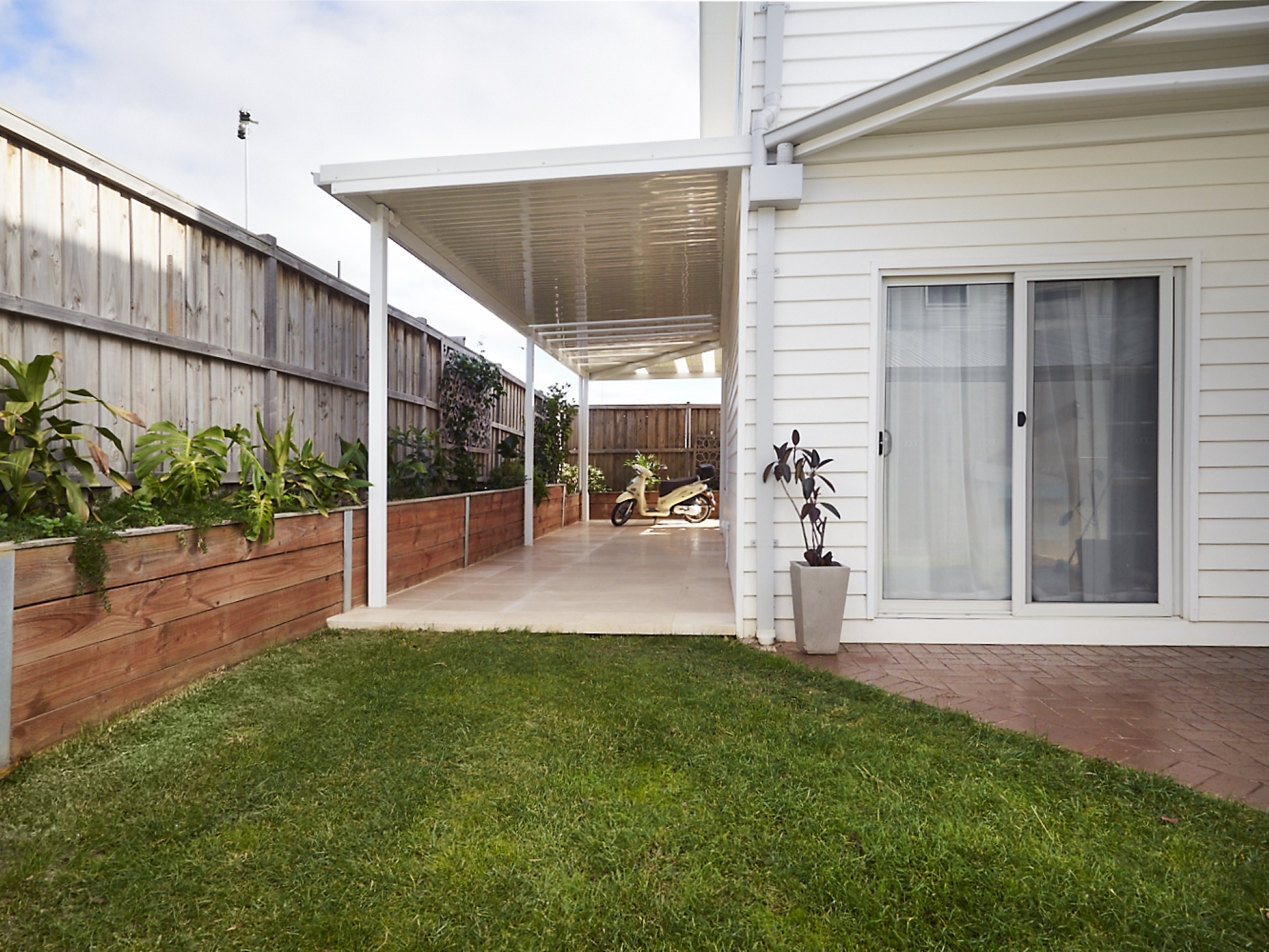 • The private backyard features a covered alfresco & lush lawn, with beautifully landscaped front & rear gardens enhanced by a variety of mature fruit trees.