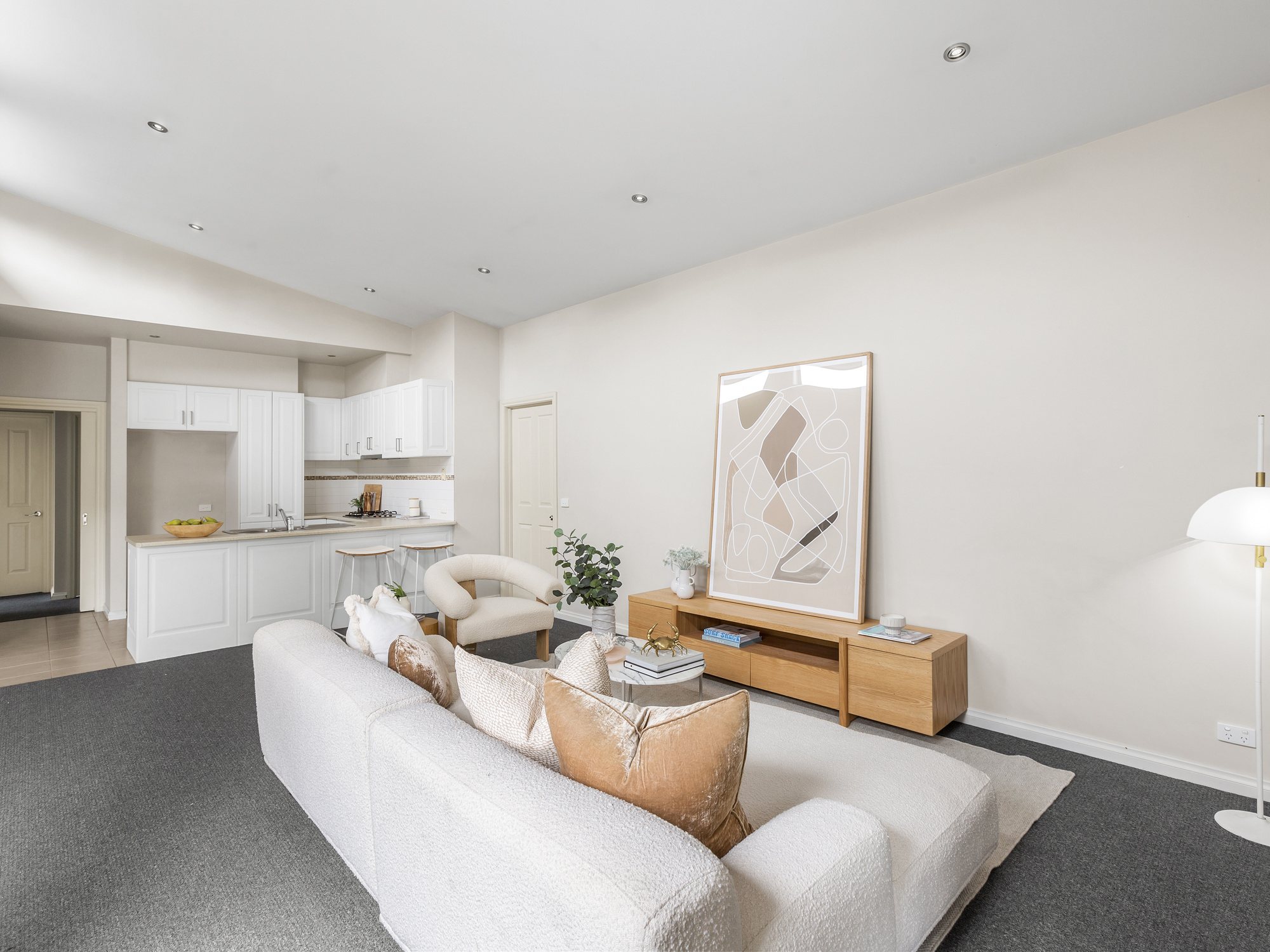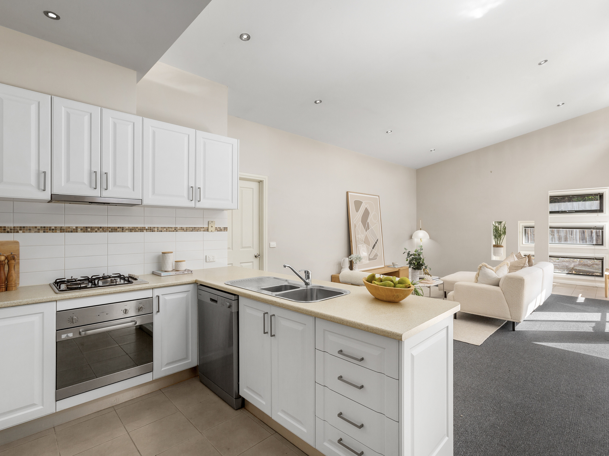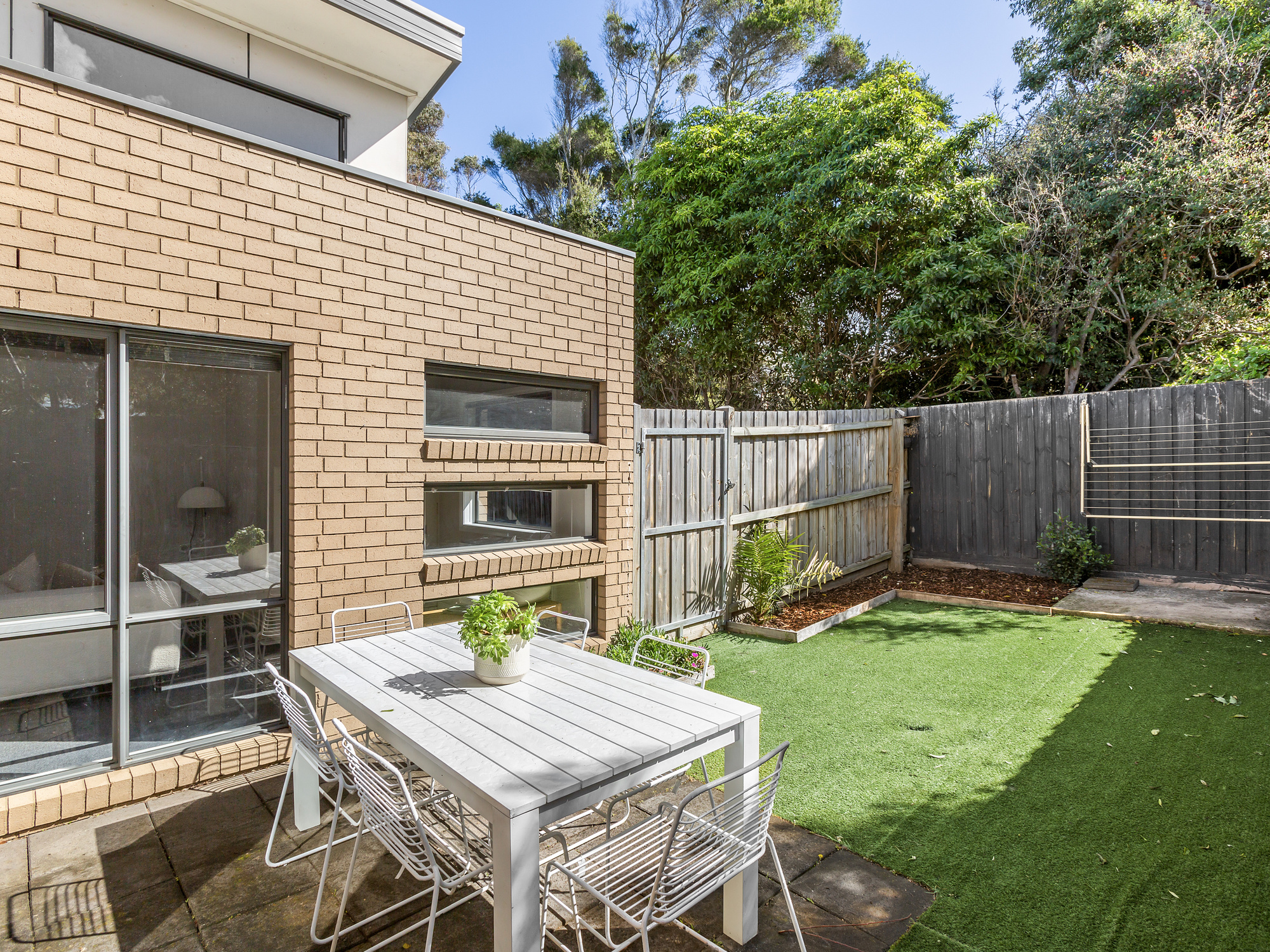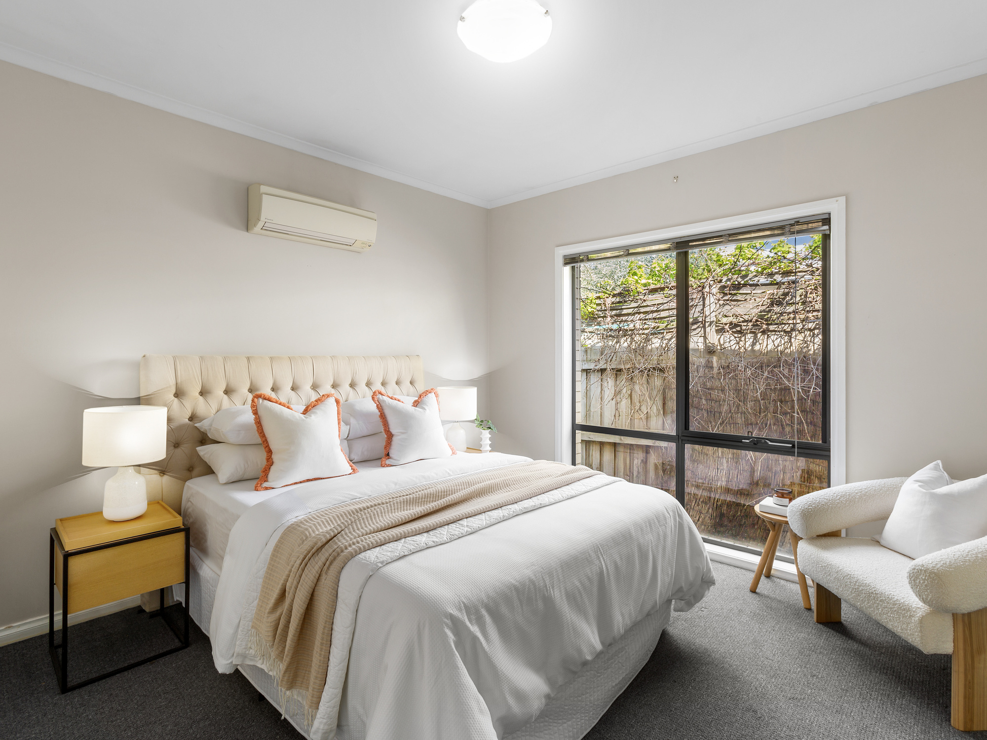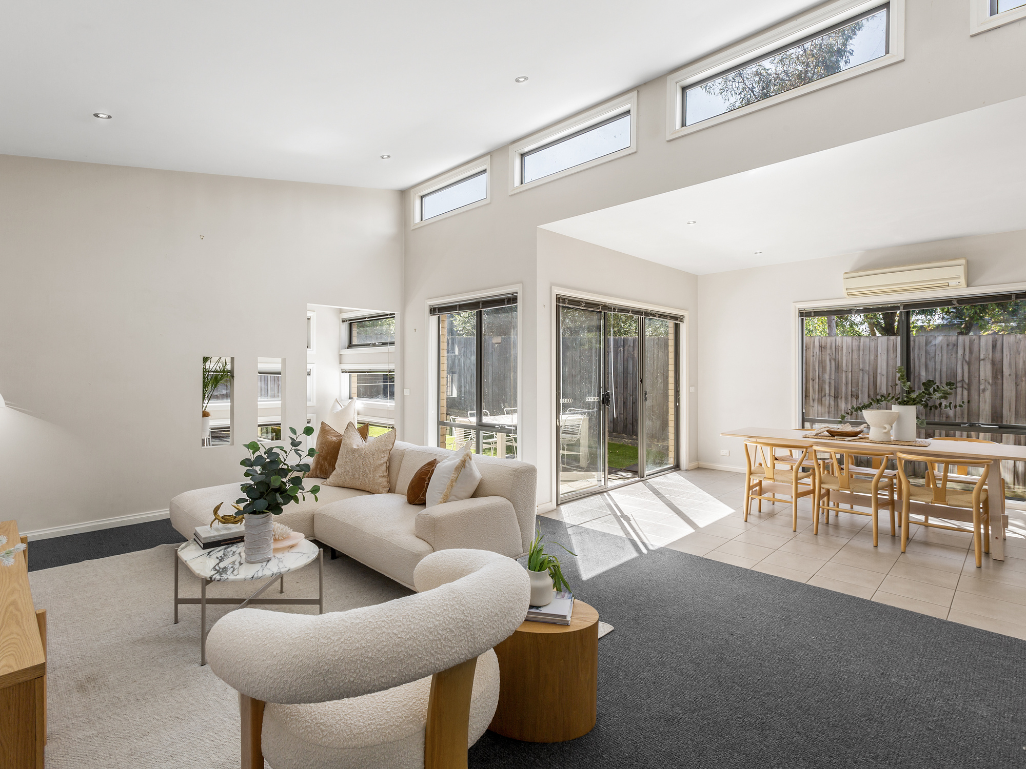 Carpeted living and bedrooms • Low maintenance sunny courtyard