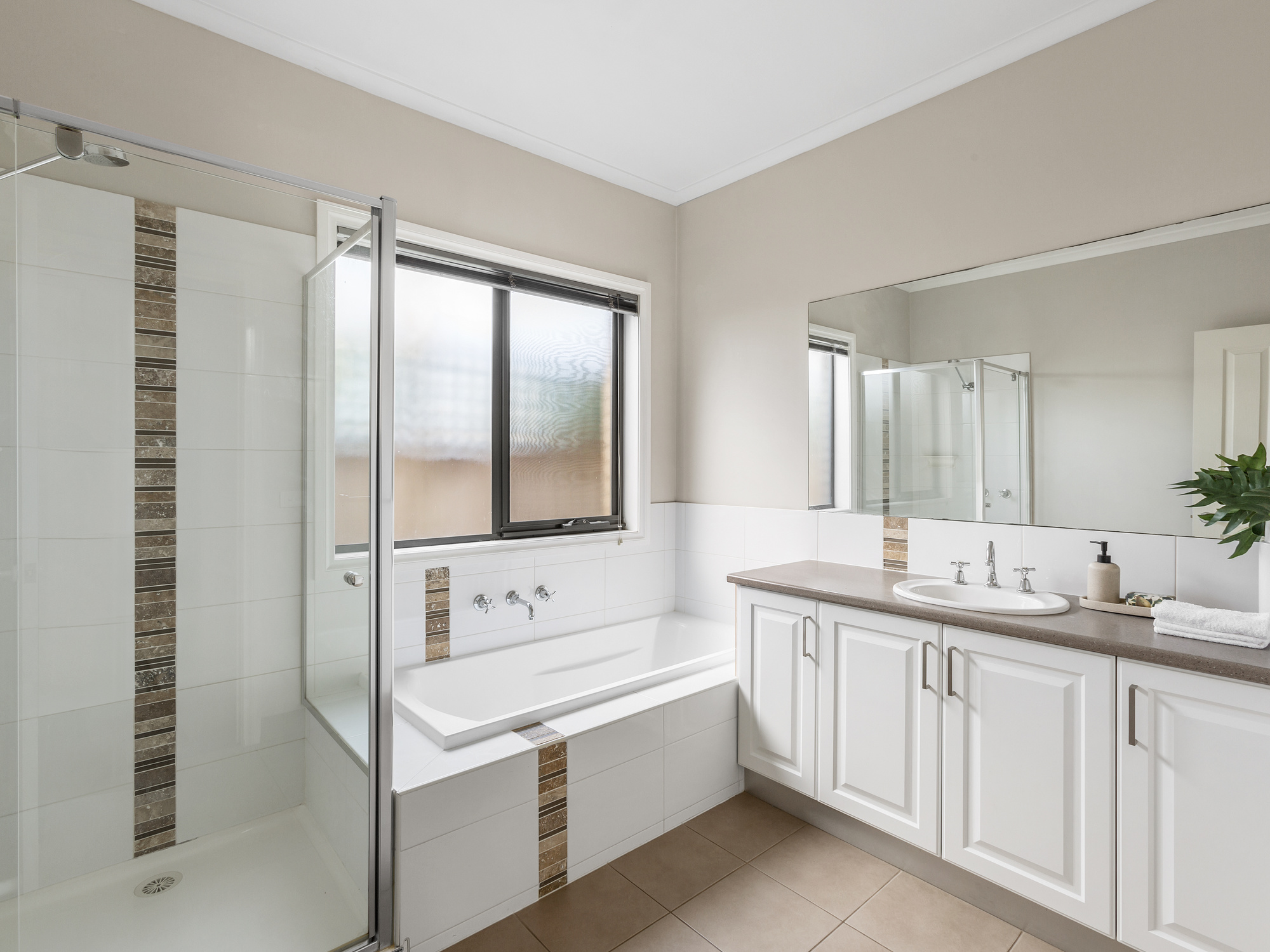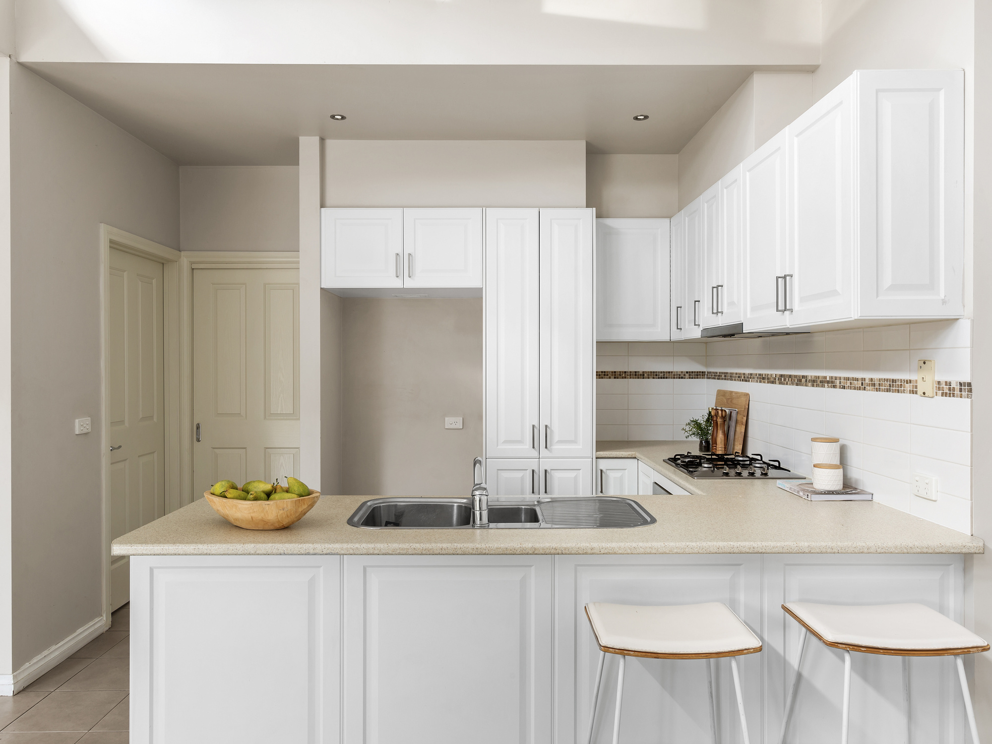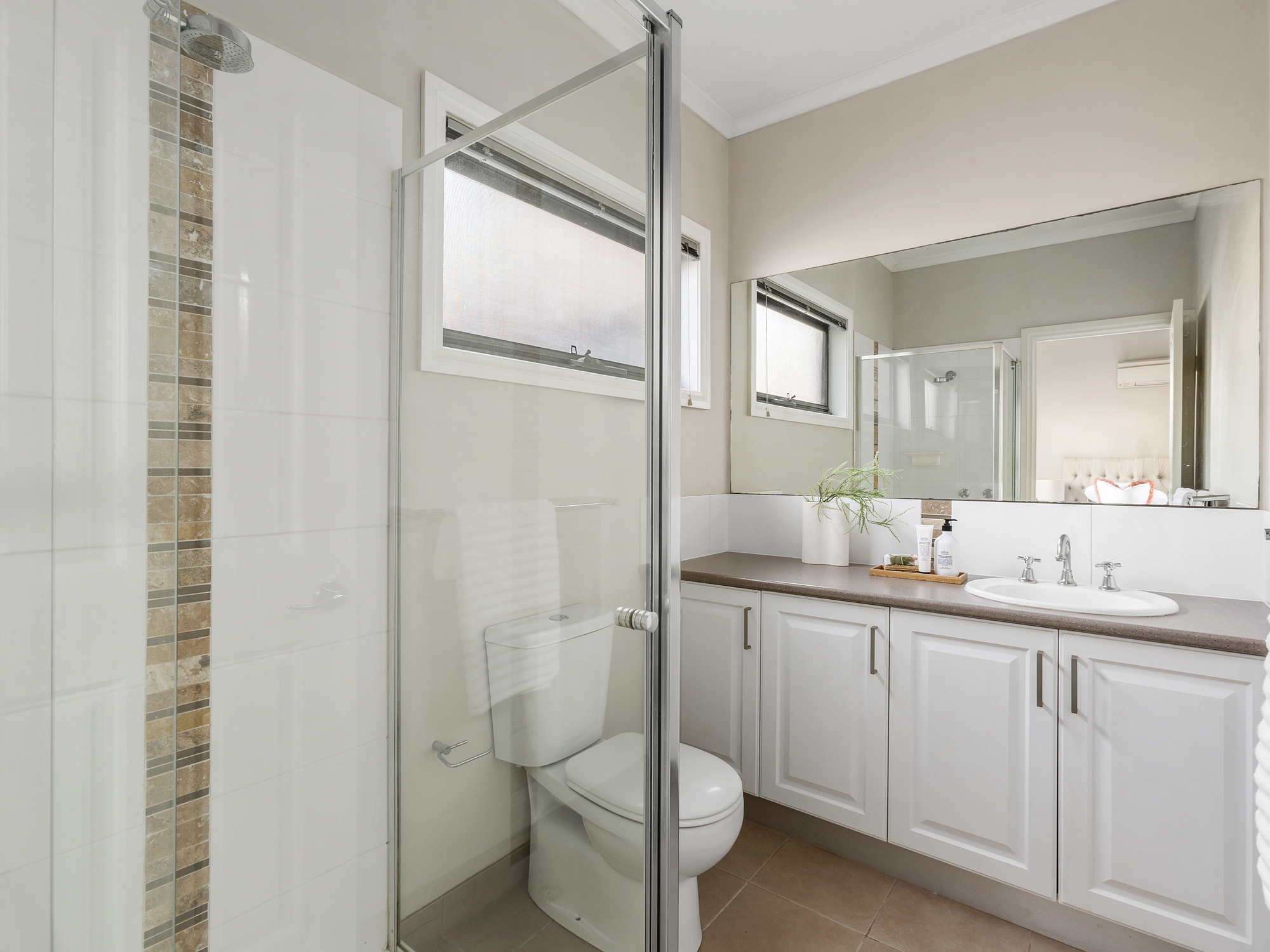 • Open plan living, dining and kitchen • Kitchen with breakfast bar and gas hotplates • Two bedrooms with built-in robes, master with ensuite • Central bathroom and separate toilet • Single garage with internal access • Split systems in living and bedrooms • Tiles in kitchen, dining & bathrooms •