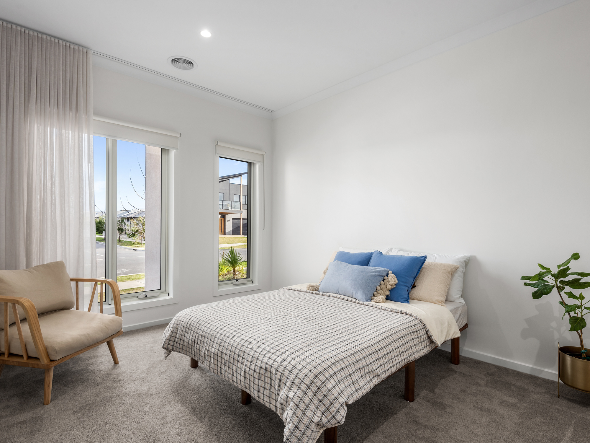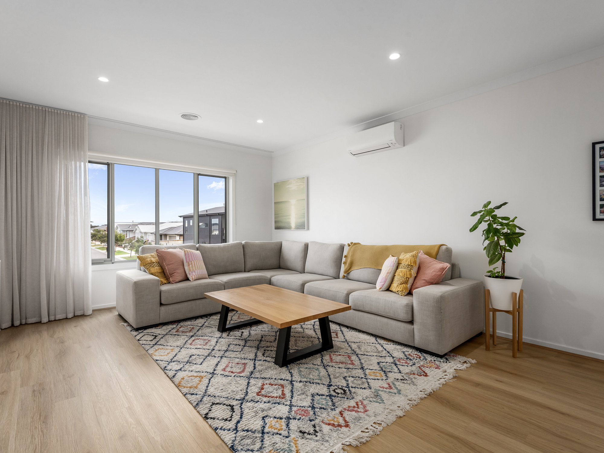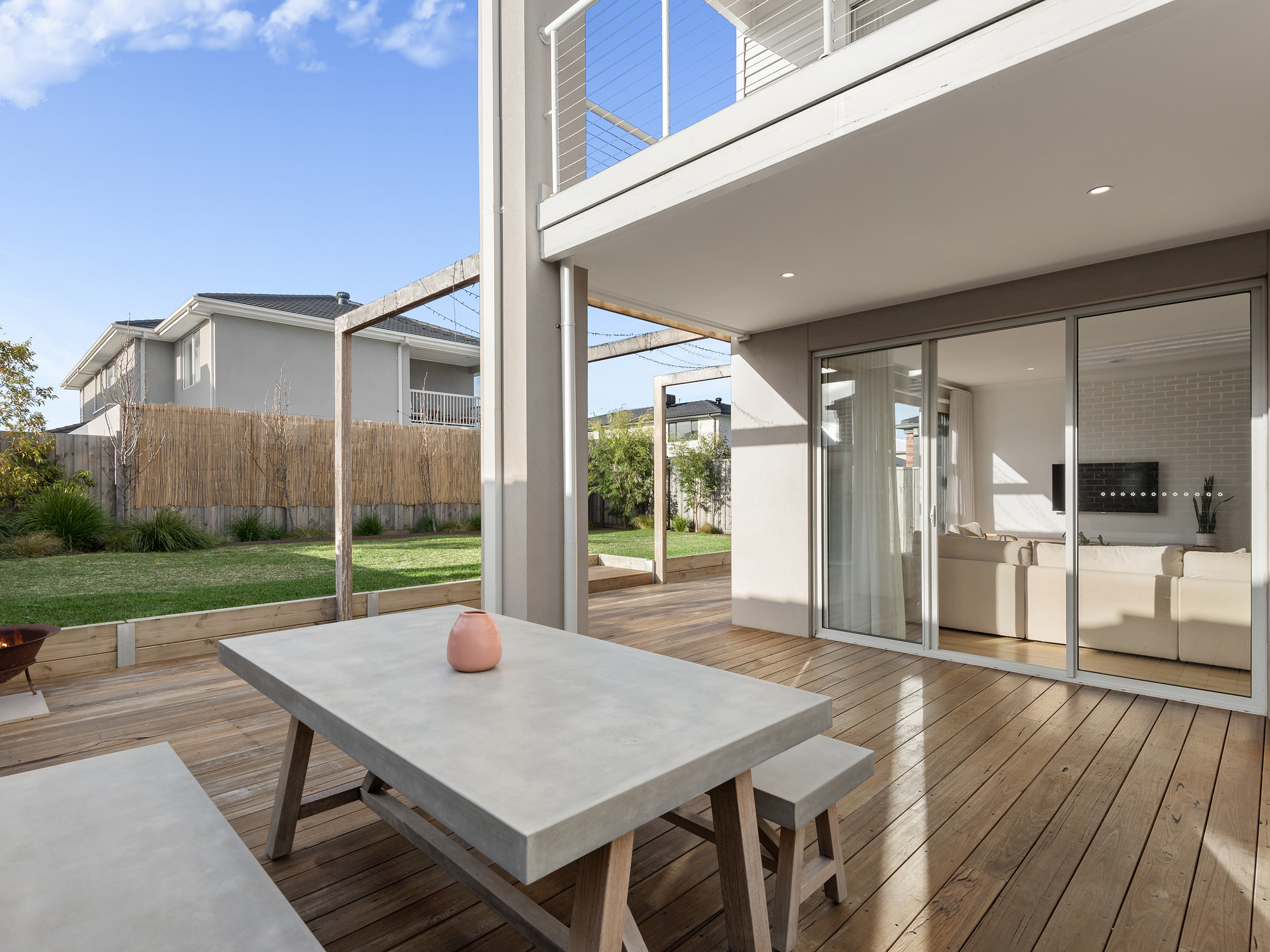 Constructed with an eye for detail and a flair for flowing design to perfectly complement family living, this home creates space for everyone but with a lovely sense of connection throughout. A large multipurpose area with grand double doors at the front of the home works well as a bedroom or rumpus room. The remainder of the ground floor is focused on living and entertaining with a sprawling kitchen, dining and living hub looking out to the outdoor deck and garden beyond. Warm engineered oak floors, coastal hues and an abundance of natural light bounces off every surface.