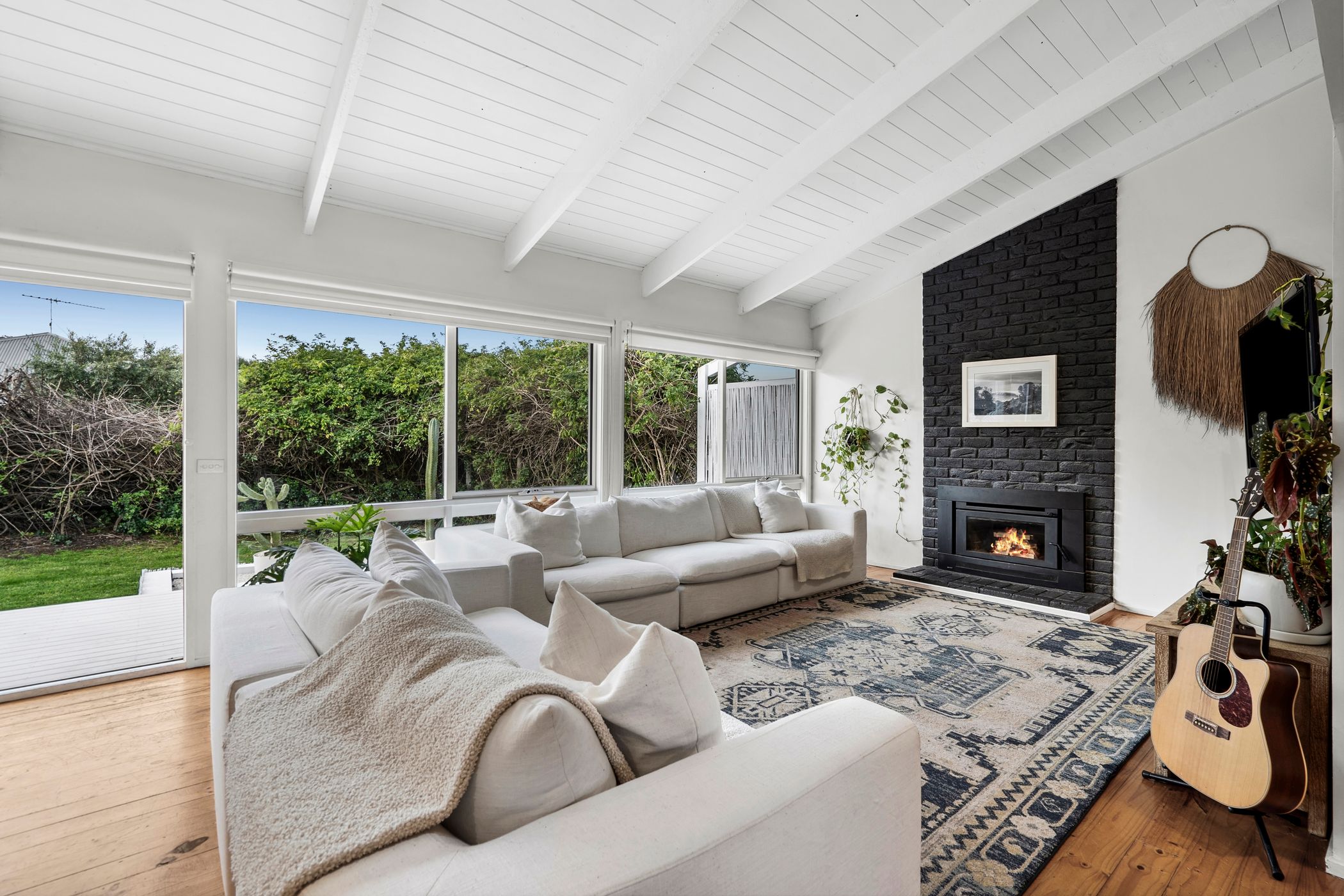 Solid timber floors, raked ceilings, sensational rear-facing windows and a thoughtful material palette foster an organic warmth right throughout the three-bedroom layout, offering a laid-back lifestyle for both holiday-makers, permanent residents or investors.