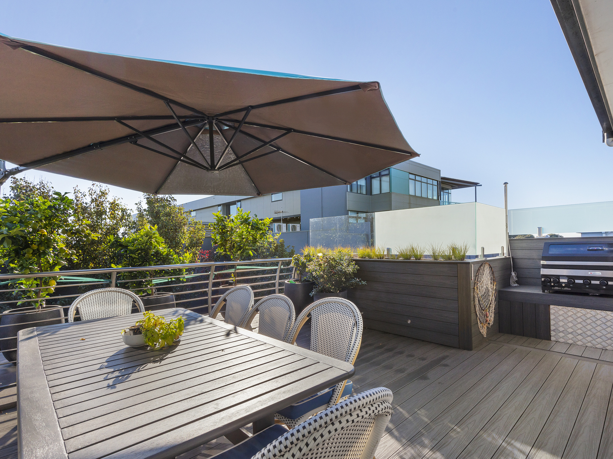 Contemporary Townhouse With Elevator This cleverly designed and modern townhouse, complete with an elevator, is a true gem in Torquay. With its sleek and metropolitan style, this property offers a unique and sophisticated living experience.