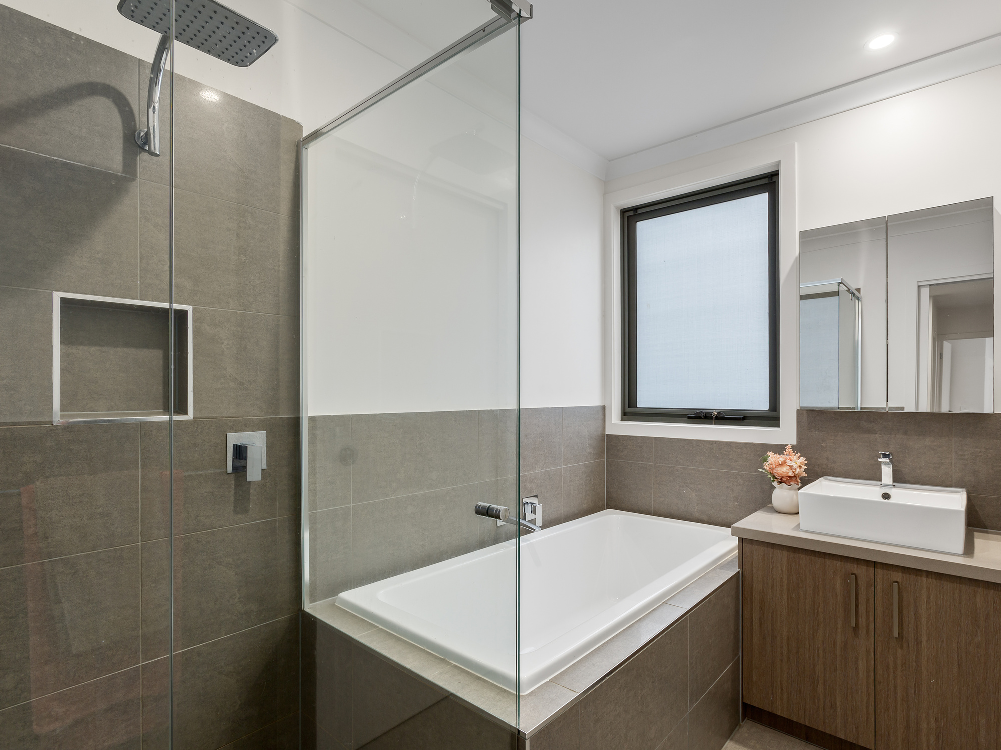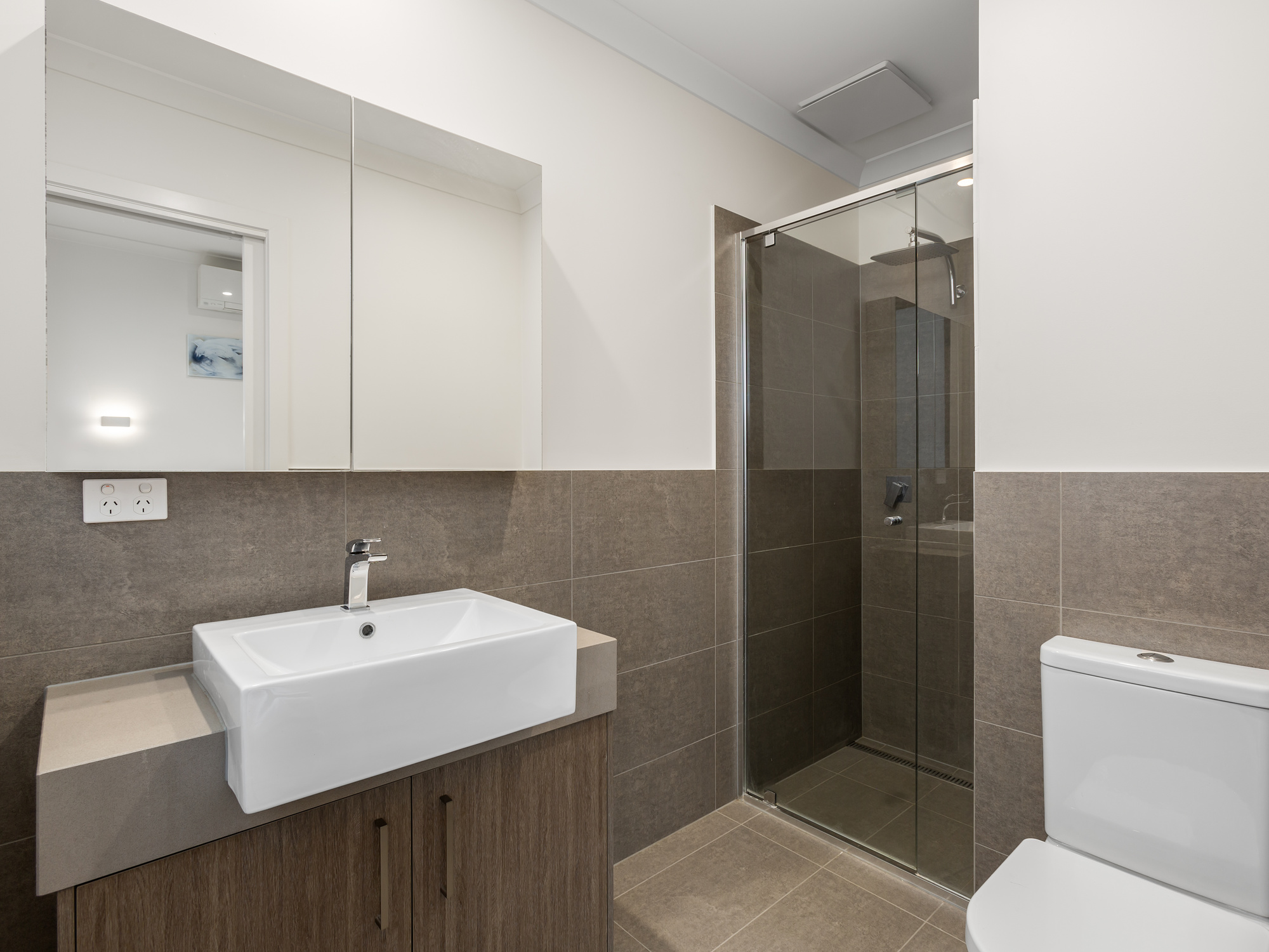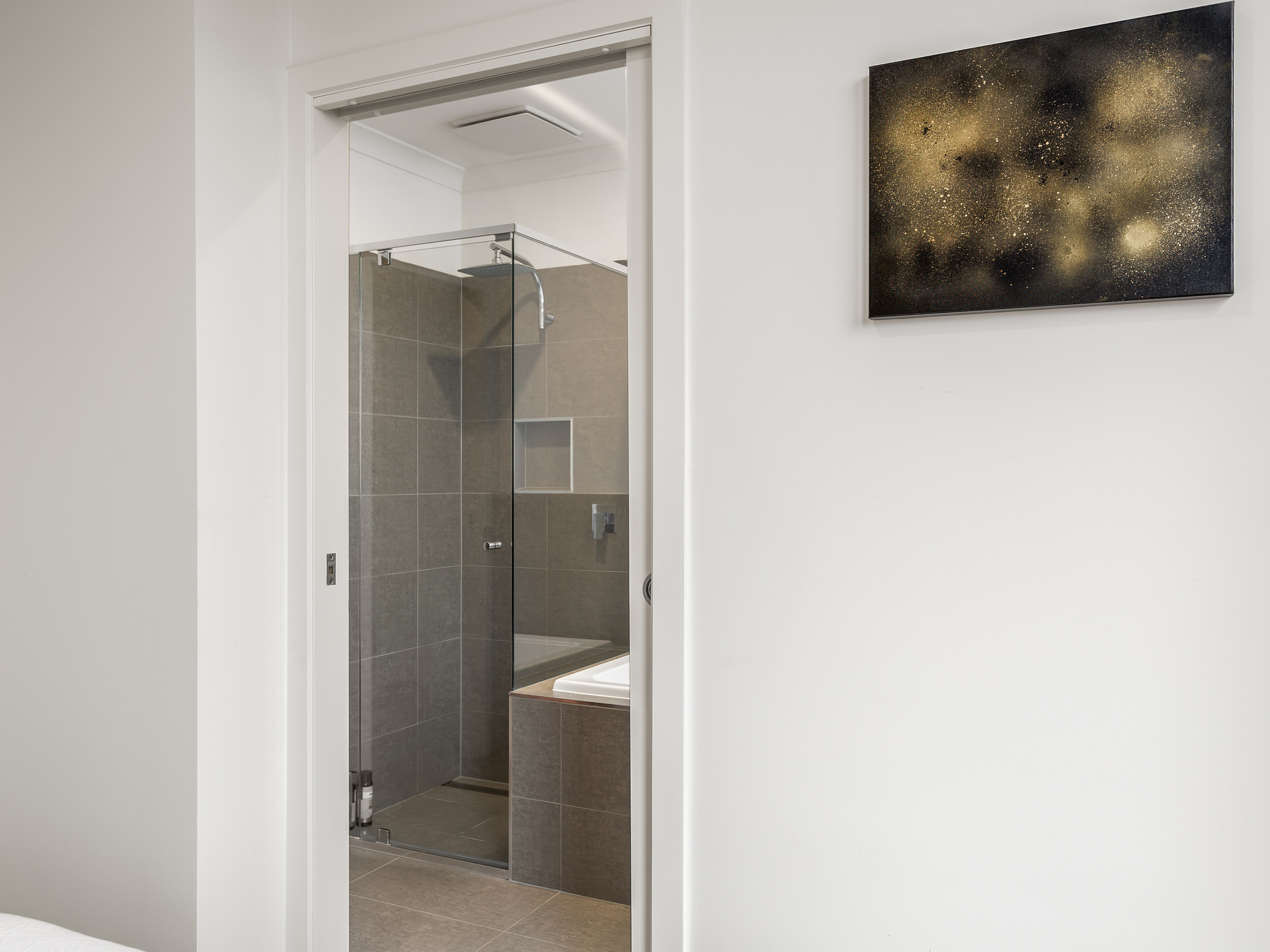 The top floor offers three generously sized bedrooms, each with built-in robes, split system air conditioning for personalised comfort, and additional wall lighting. The master suite showcases awe-inspiring golf course views and a private ensuite, while the two remaining bedrooms share a family-sized bathroom, complete with a separate bath and shower for added convenience.