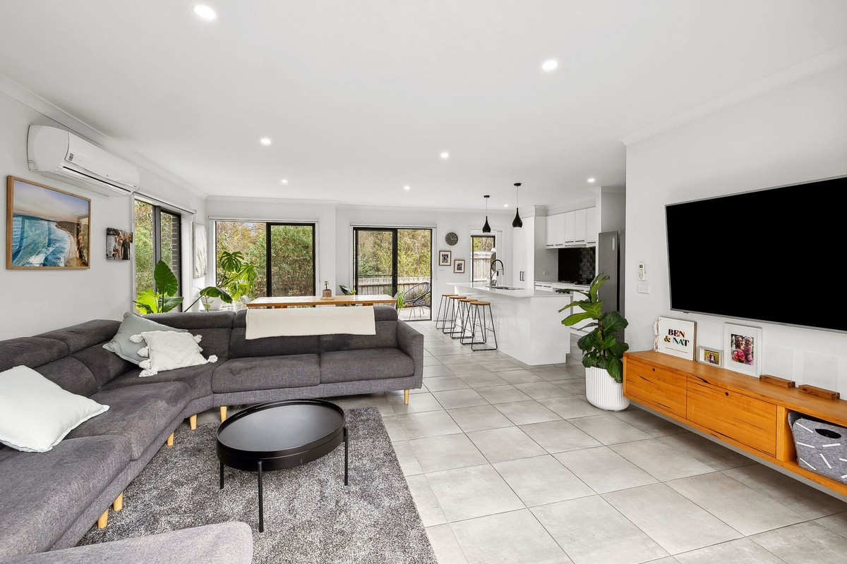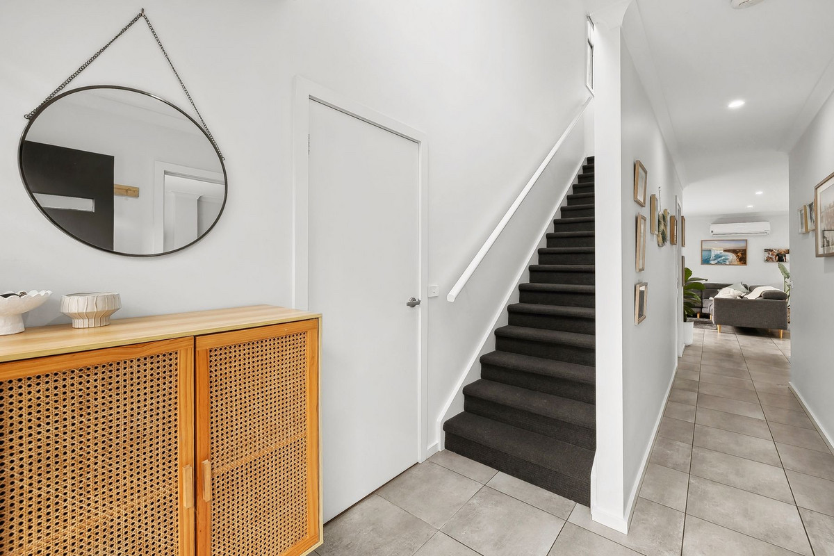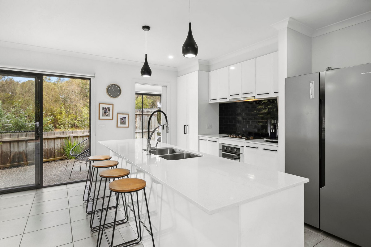 Spanning two levels, the ground floor welcomes you with an impressive entrance foyer leading to a spacious, open-plan kitchen, dining, and living area flooded with natural light boasting a serene outlook to neighbouring Deep Creek reserve.