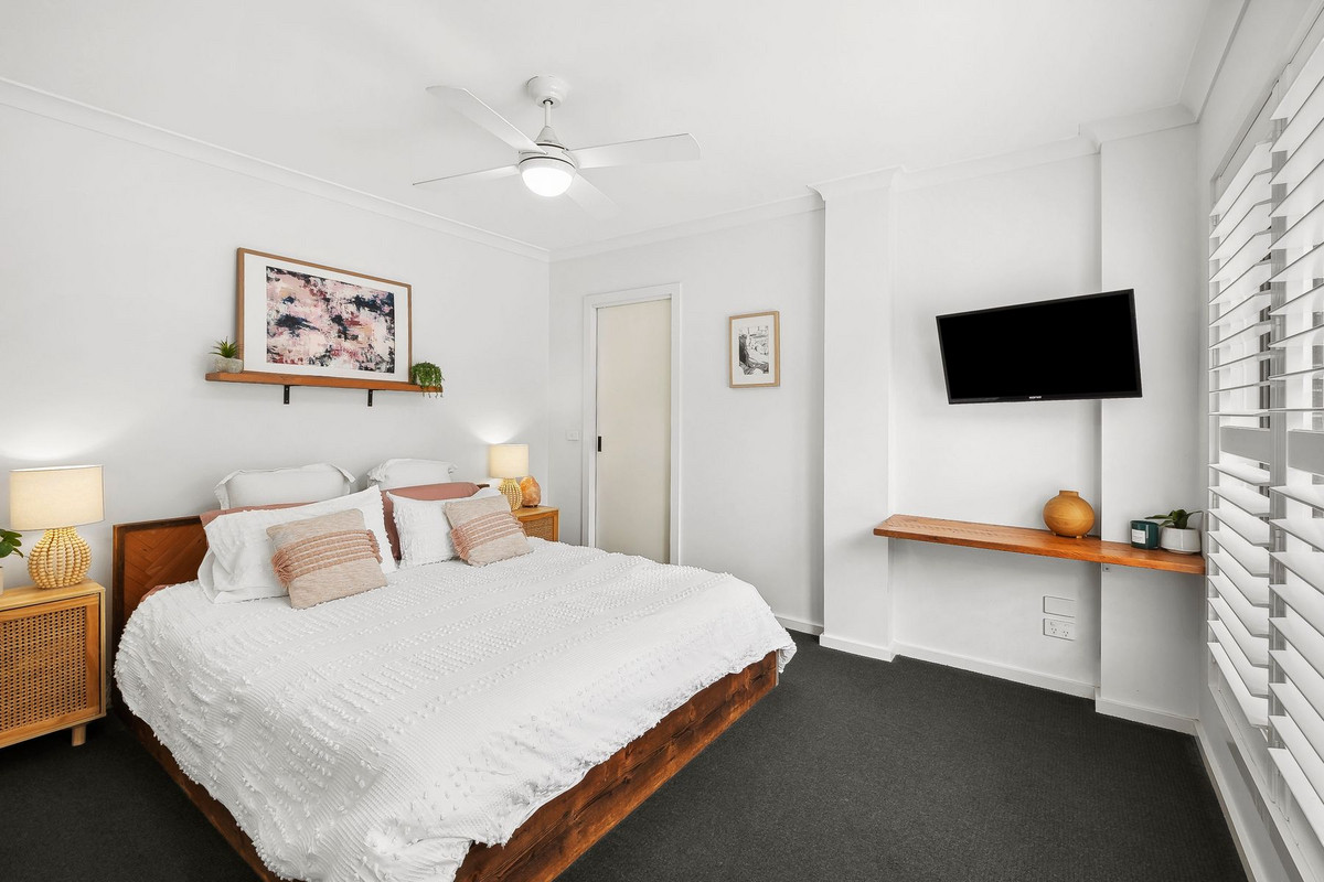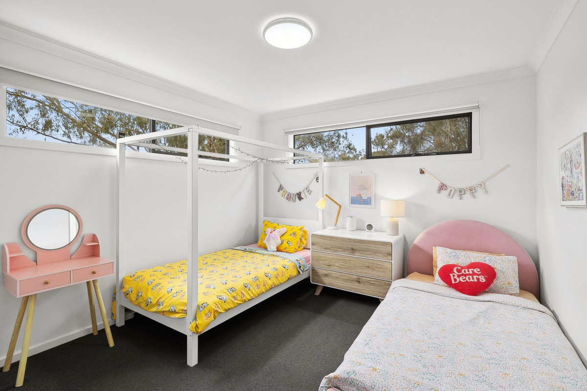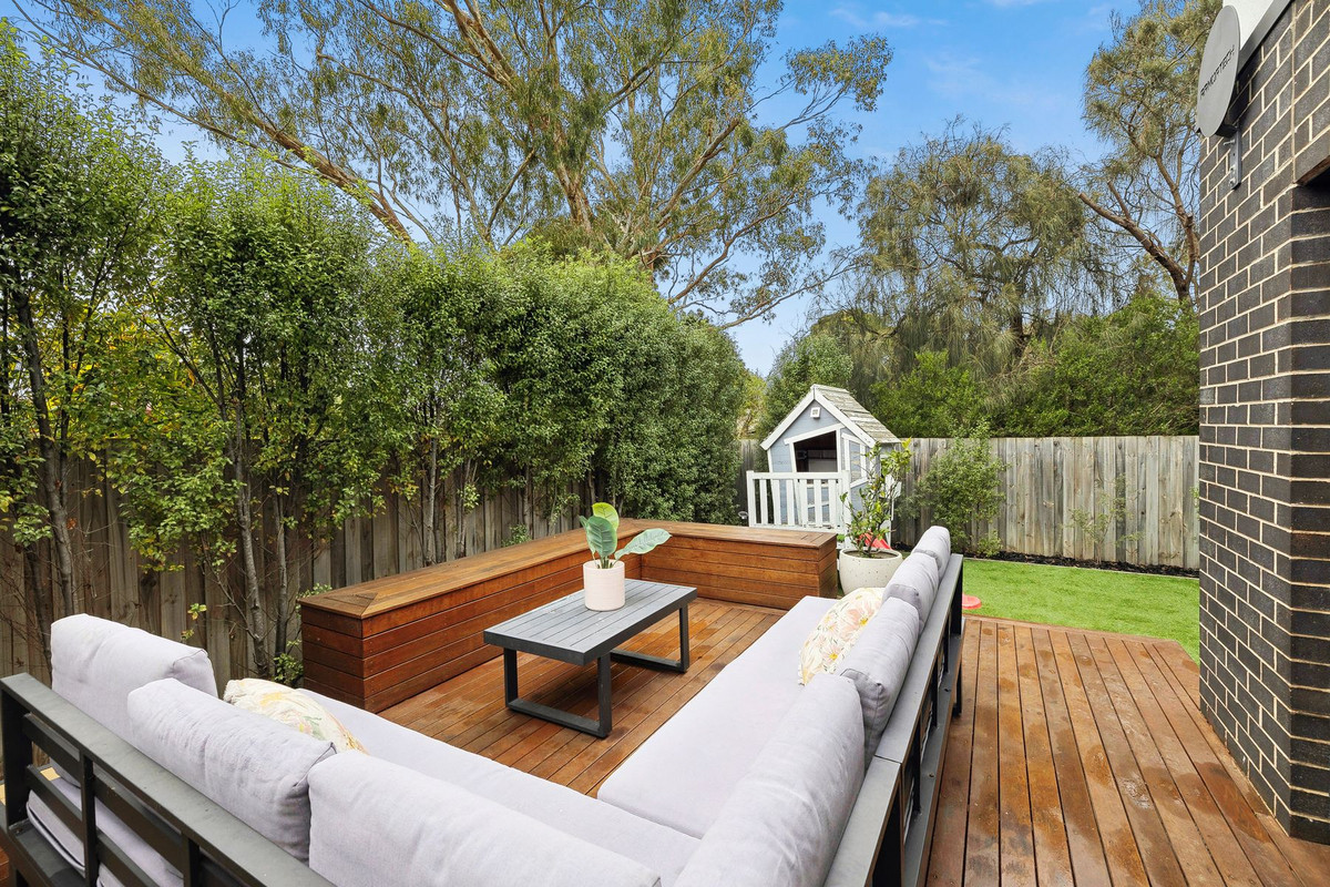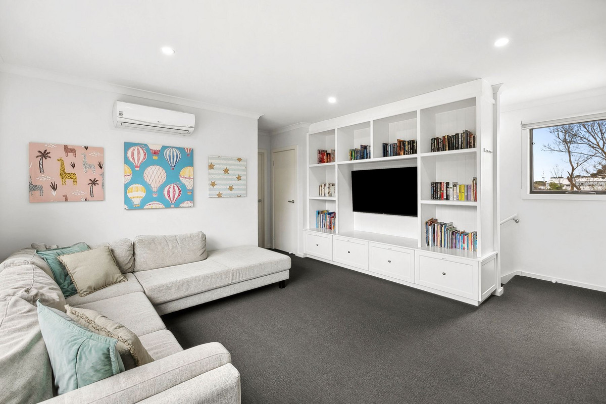 The master bedroom with walk in robe and en-suite occupies ground level along with a separate laundry and powder room. Upstairs, two additional bedrooms with built-in robes, a generously sized second living area with built in cabinetry, a main bathroom and separate powder room provide ample space for family and guests.