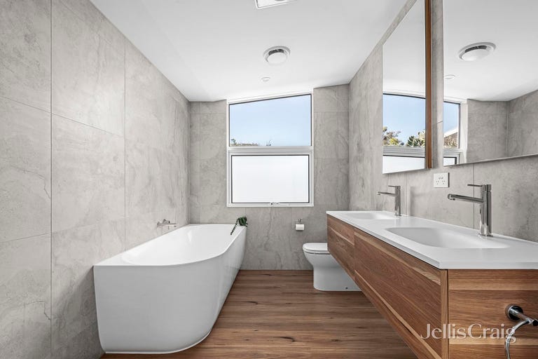 For the new residents, a sumptuous main bedroom awaits complete with private balcony, huge walk-in robe, and access to a two-way bathroom with freestanding back-to-wall tub, complemented by two additional robed bedrooms downstairs alongside an equally impeccable family bathroom.